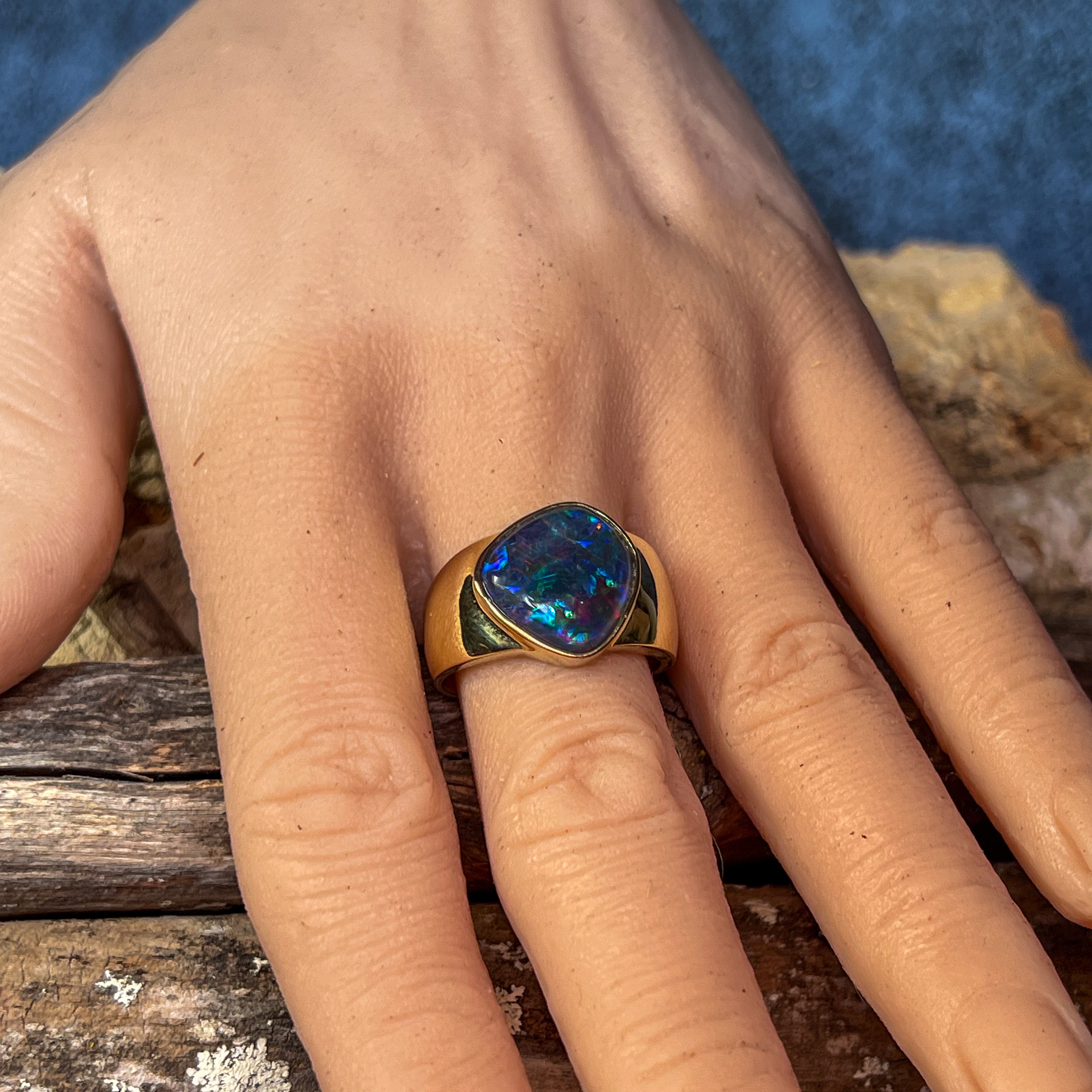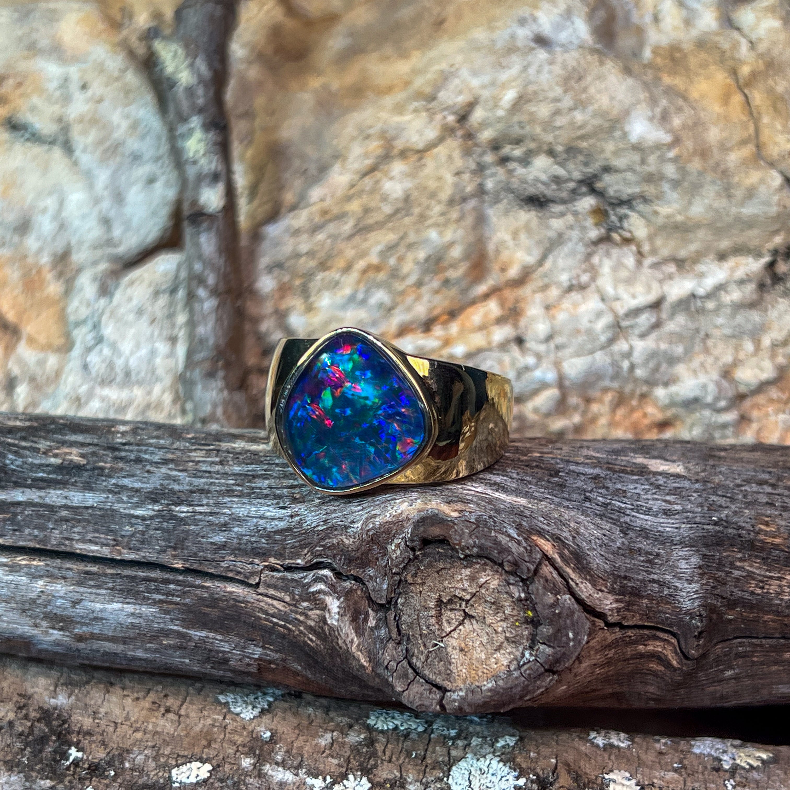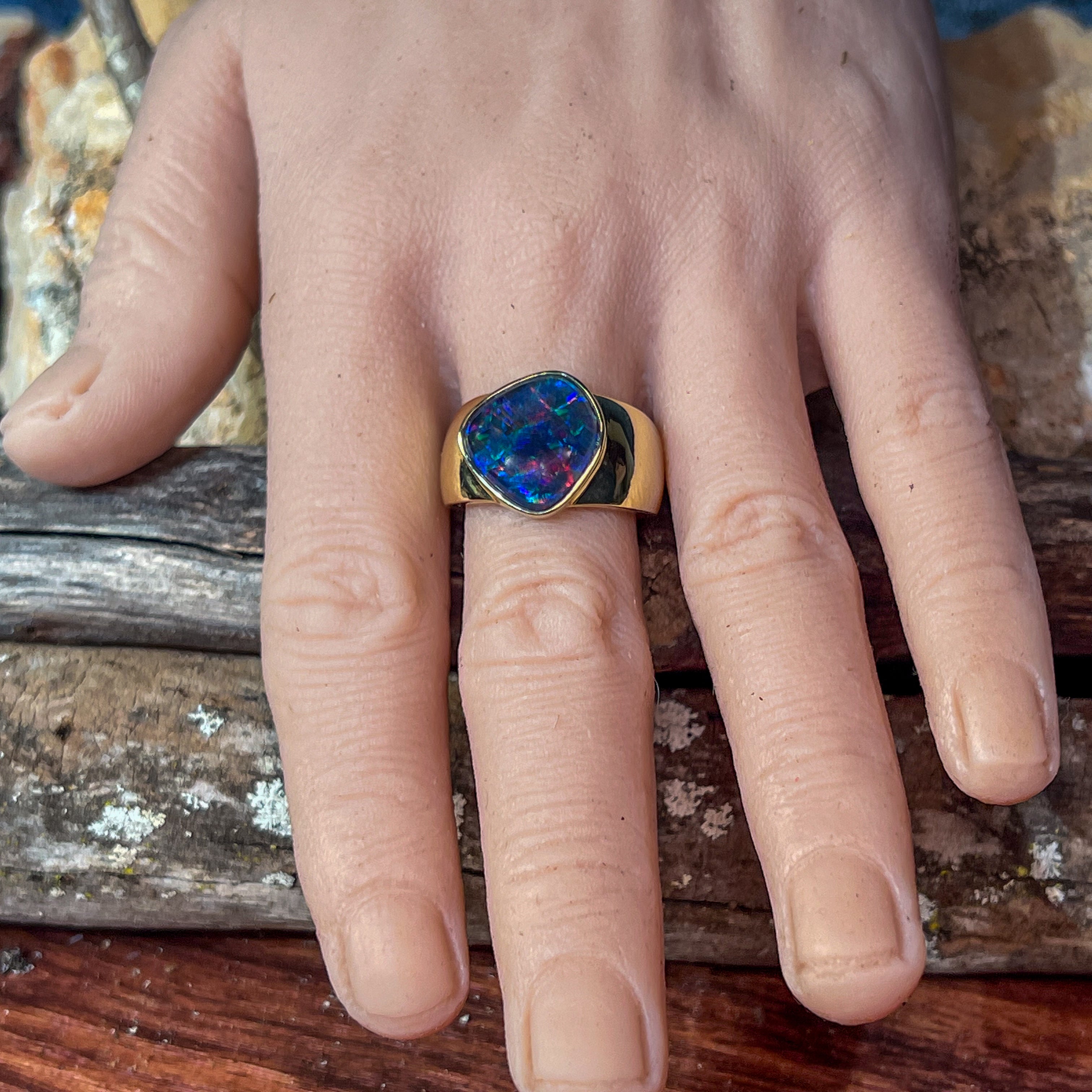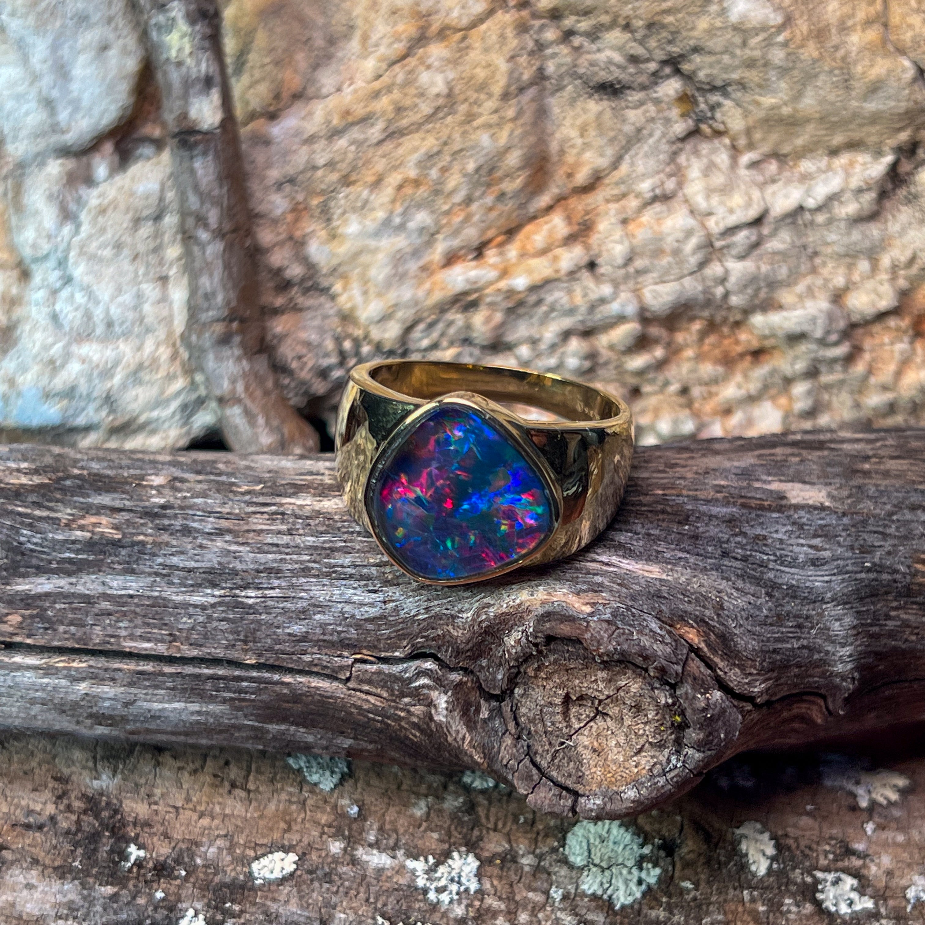 9kt Yellow Gold Freeform Opal triplet mens ring