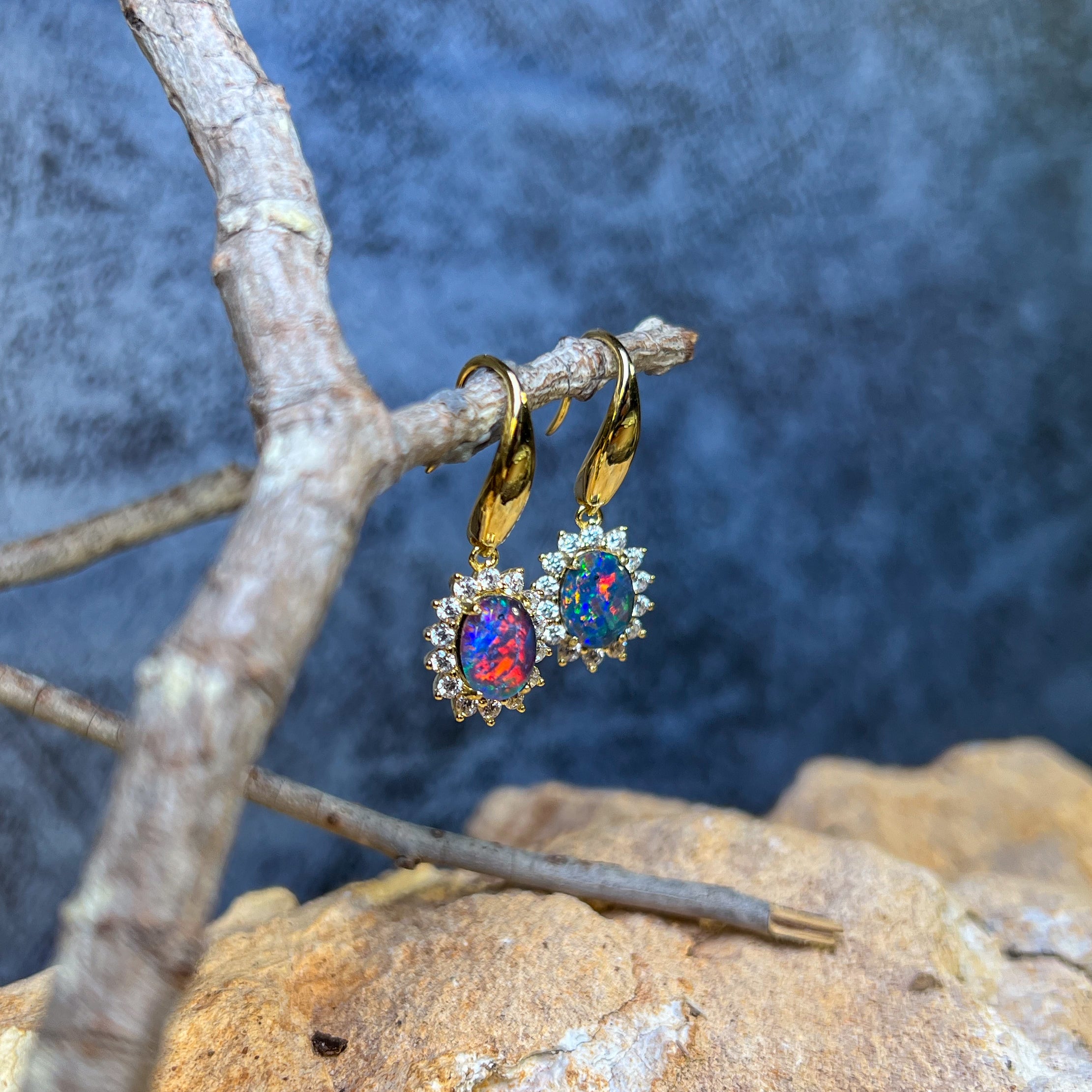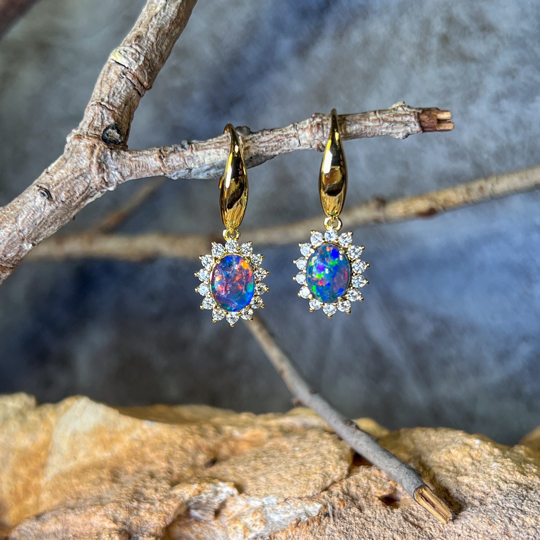 Gold Plated dangling hook Opal triplet earrings cluster design
