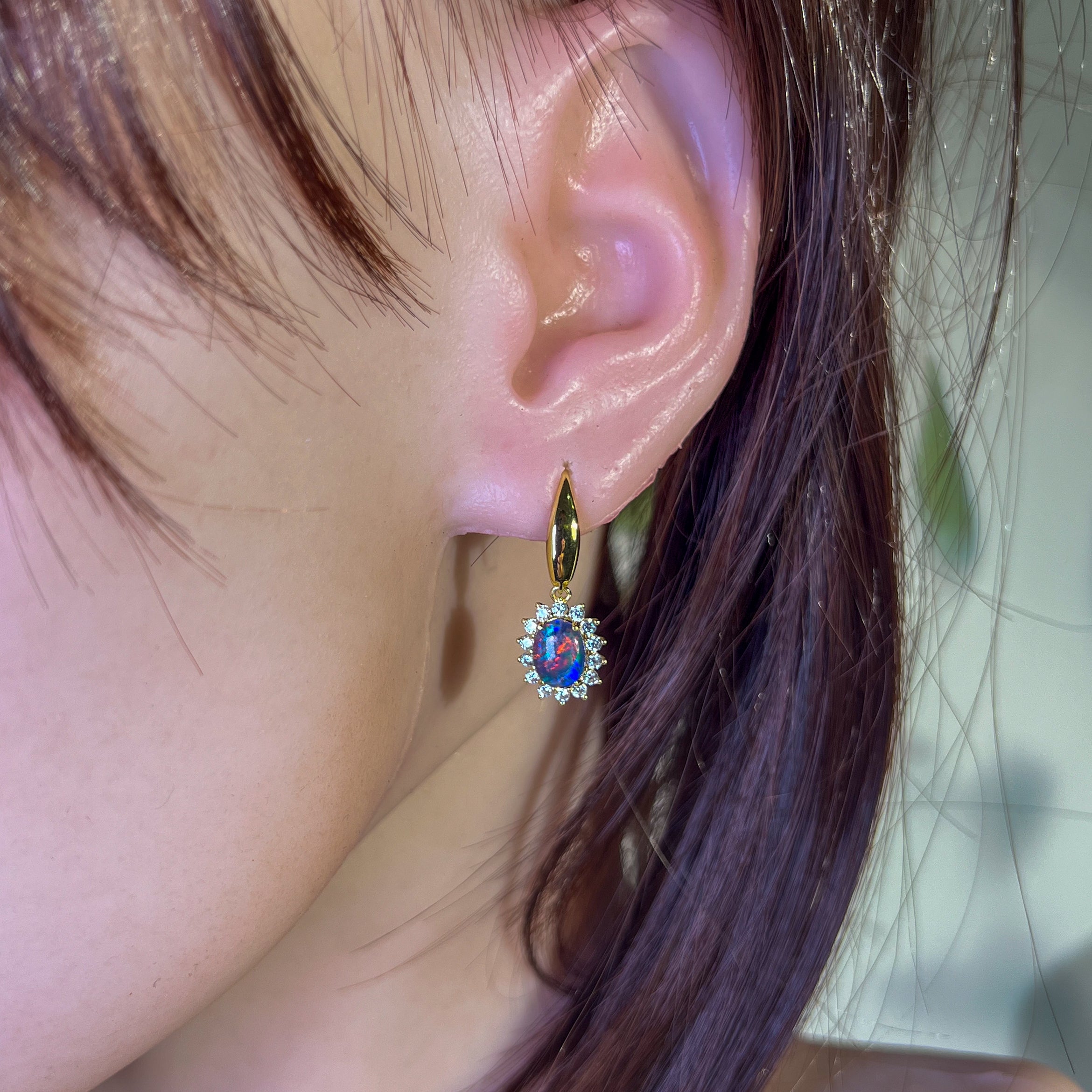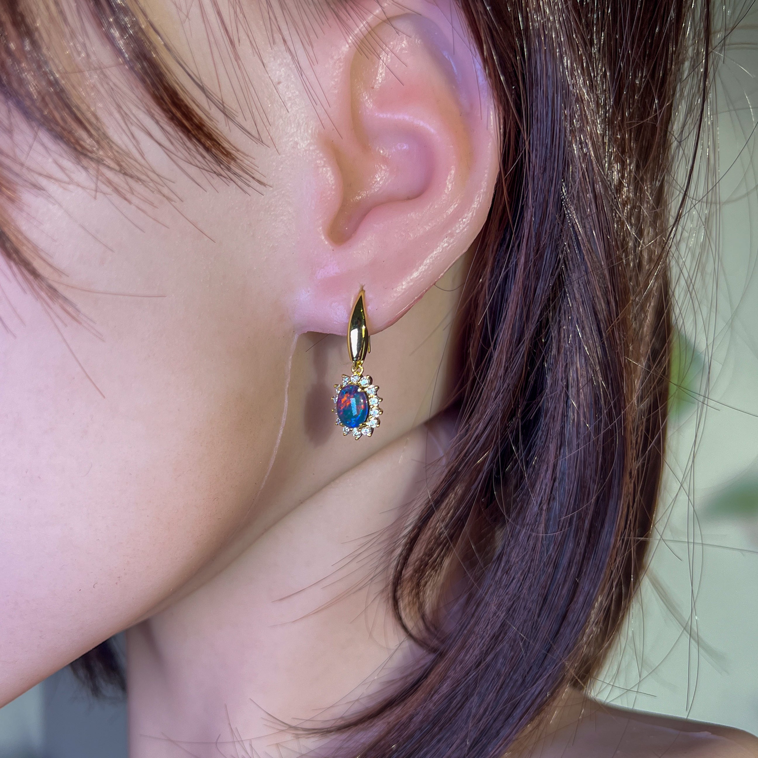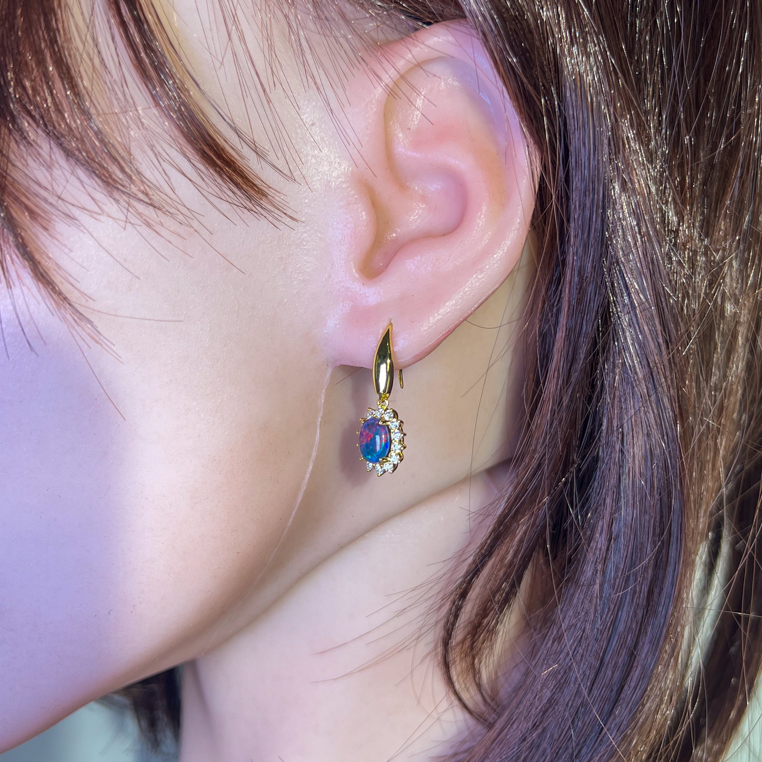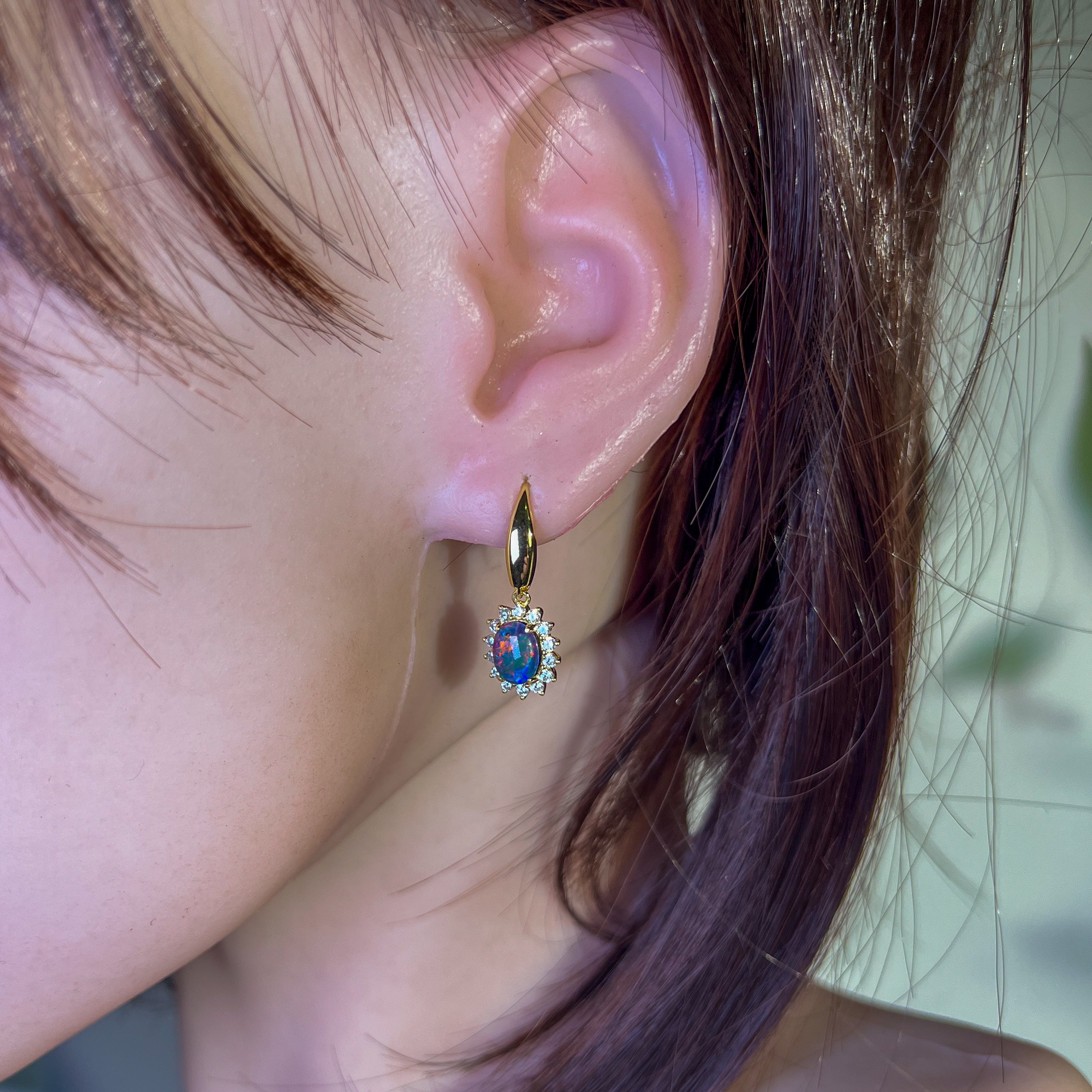 Embrace elegance and sophistication with our Gold Plated Opal Triplet Earrings! The dangle cluster design adds a touch of glamour to any outfit, while the secure hook closure ensures comfortable wear. Make a statement with these stunning earrings that feature the mesmerizing Opal triplet stones.