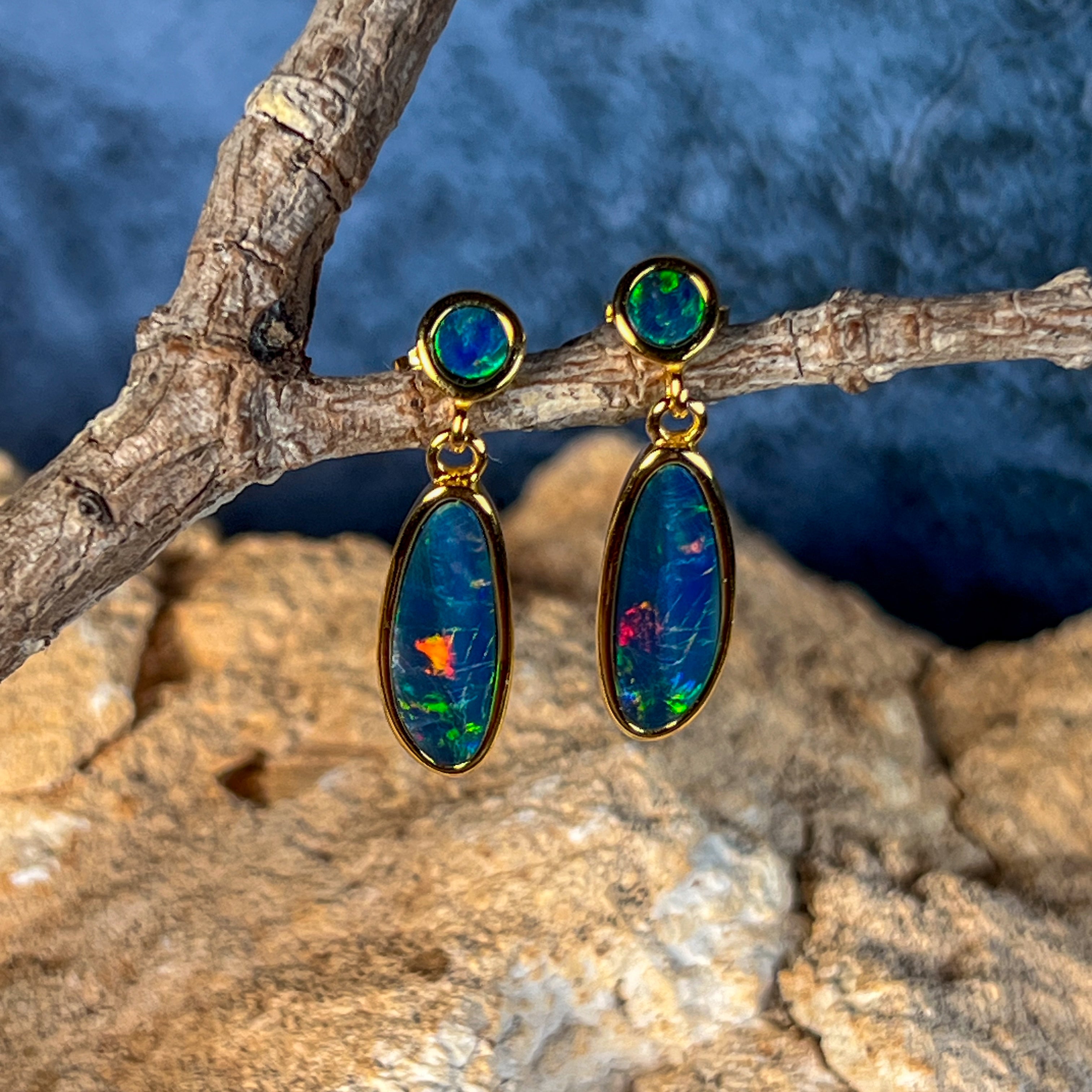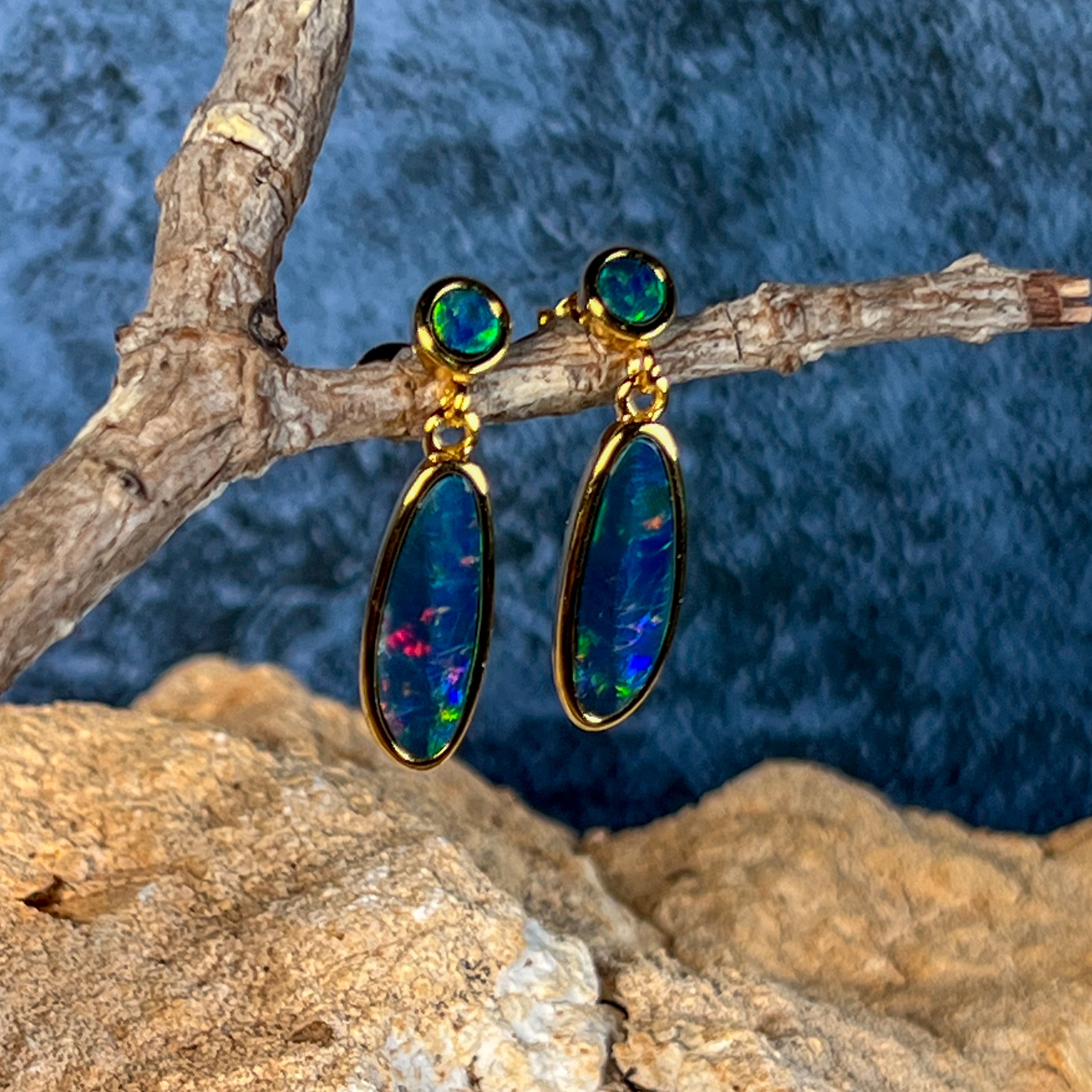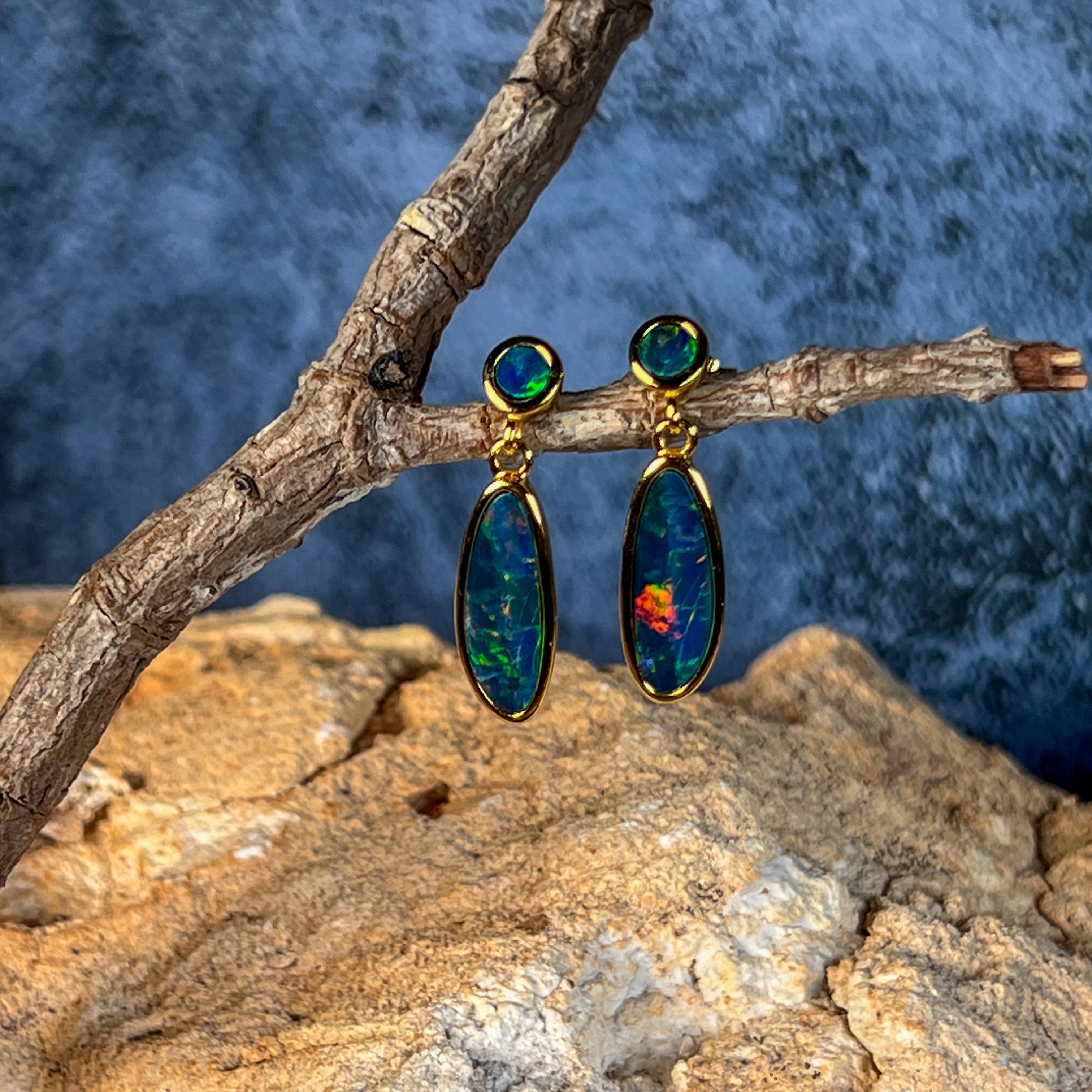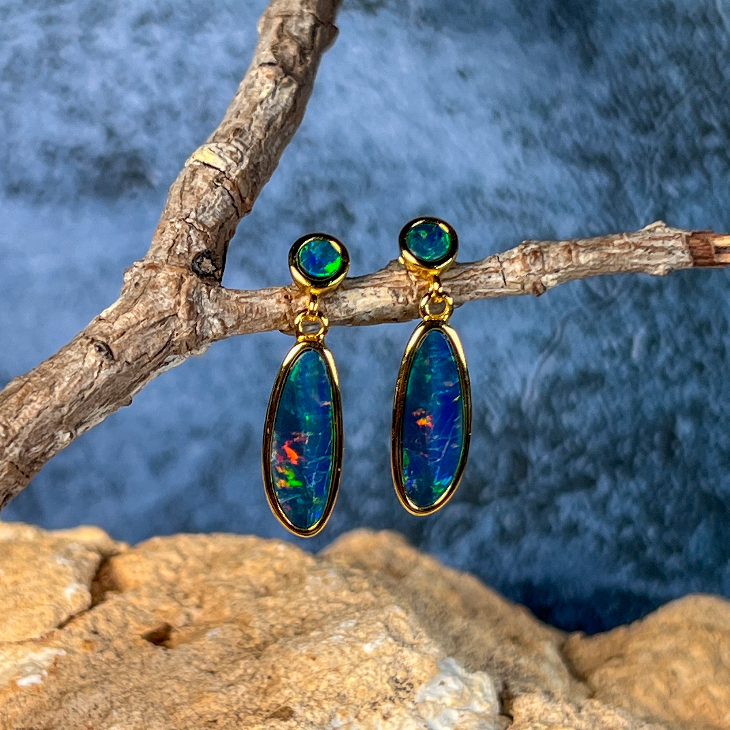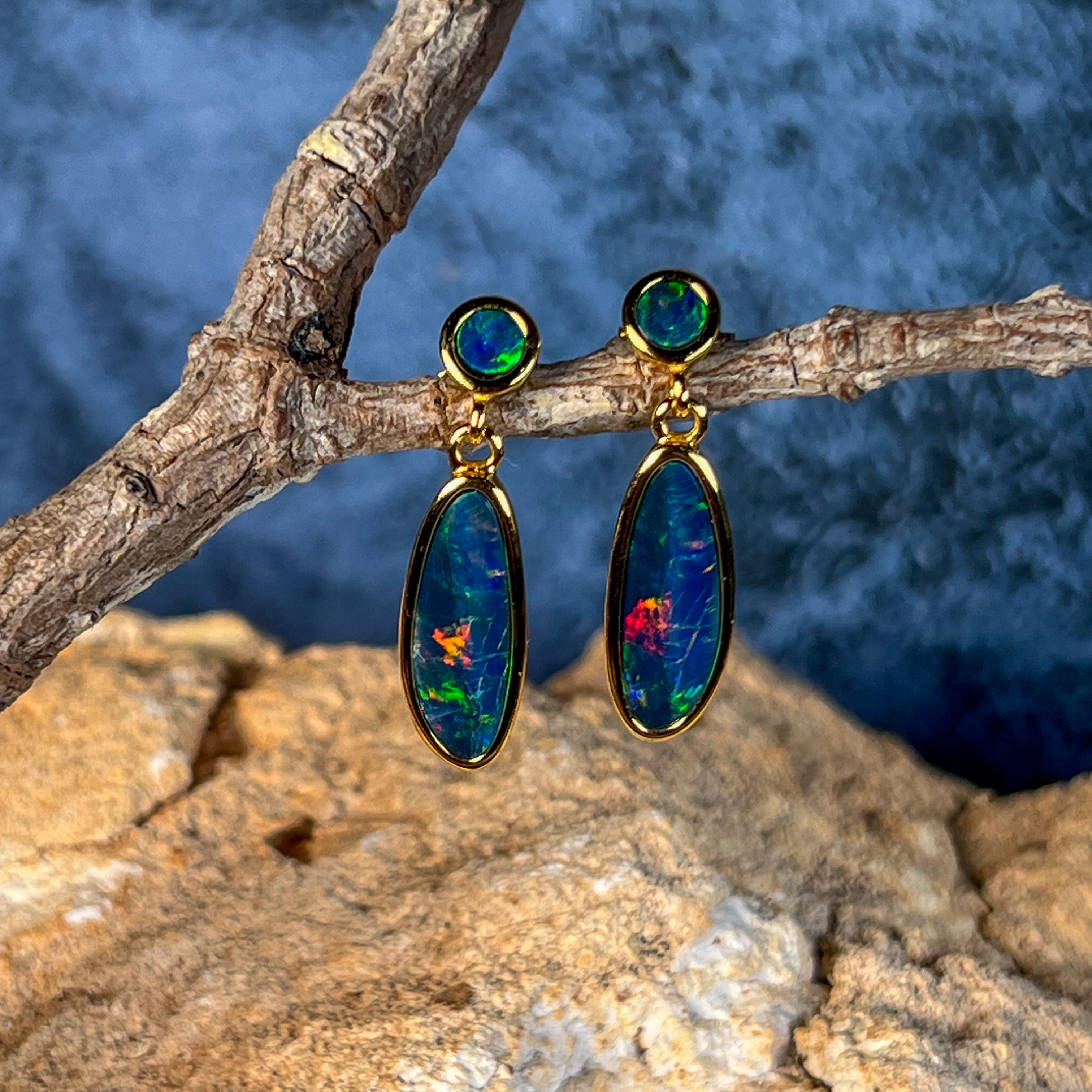 Elevate your everyday style with these stunning gold-plated silver earrings that capture the essence of natural beauty. Featuring a mesmerizing freeform design in vibrant blue, green, and yellow hues, these dangling pieces create movement and visual interest with every turn of your head. The long silhouette offers an elegant, contemporary look that complements both casual and dressed-up occasions. Crafted with quality materials, these earrings deliver a luxurious appearance without the luxury price tag. Perfect for those who crave colour and individuality in their jewellery collection.