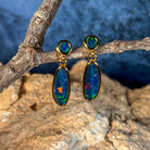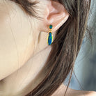 Gold Plated Silver dangling Freeform long Blue Green Yellow earrings