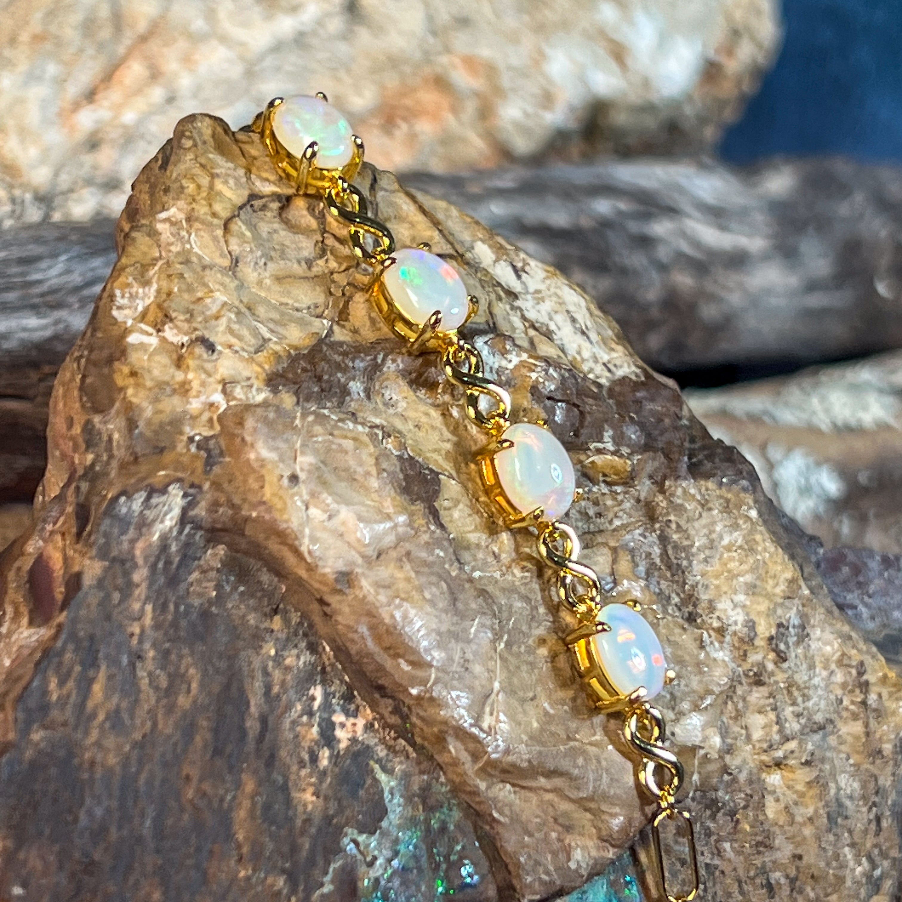 Gold plated silver infinity design light opal 8x6mm bracelet