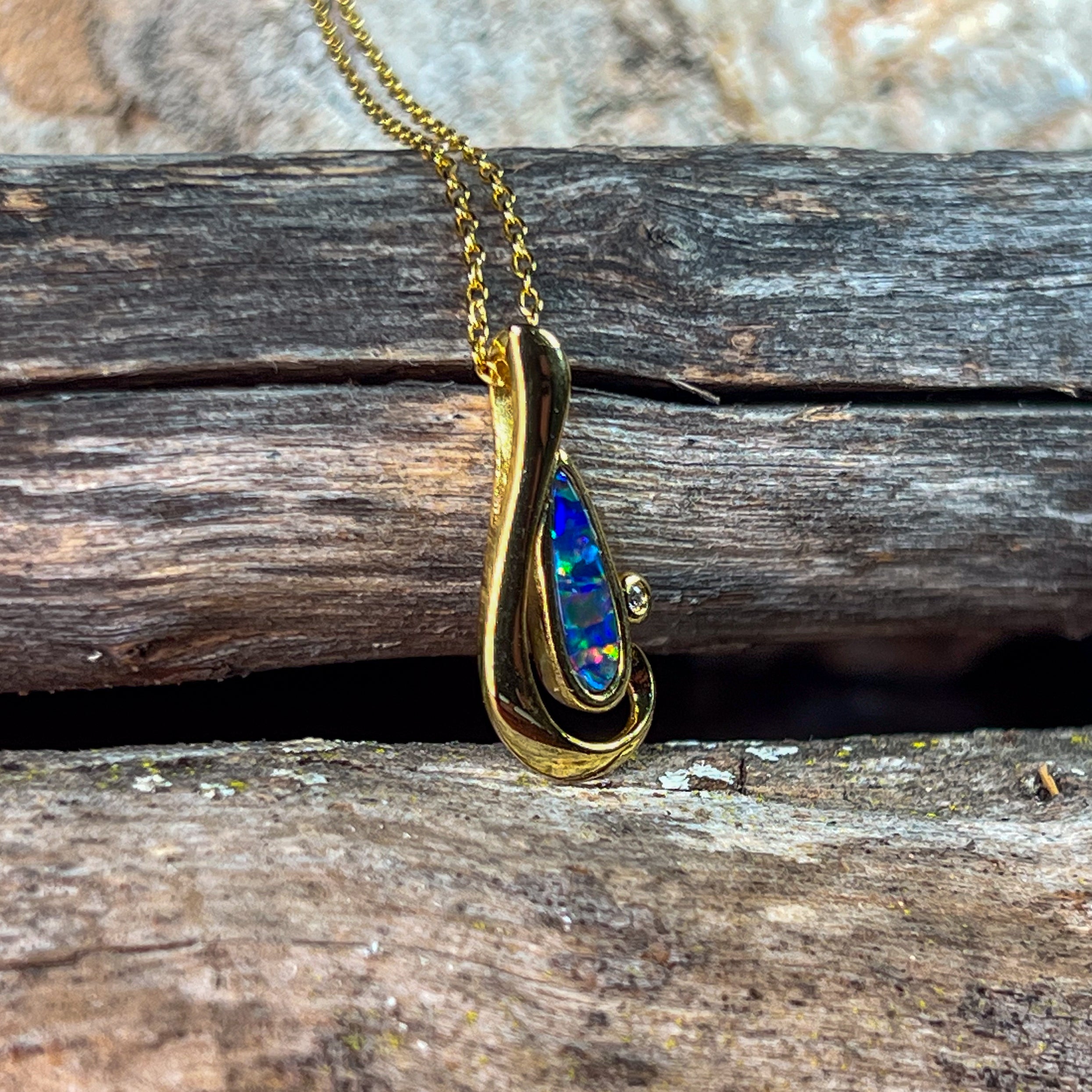 Gold plated Silver Note shape Opal doublet pendant
