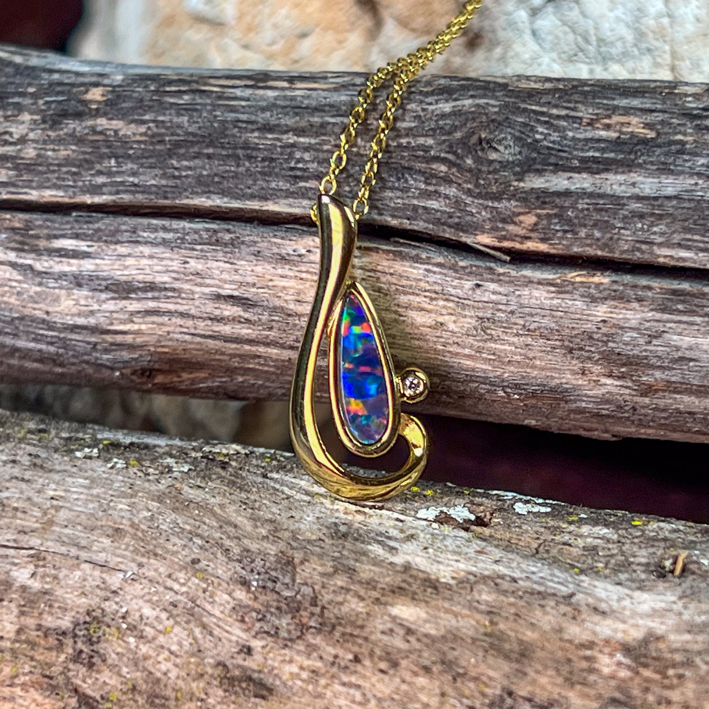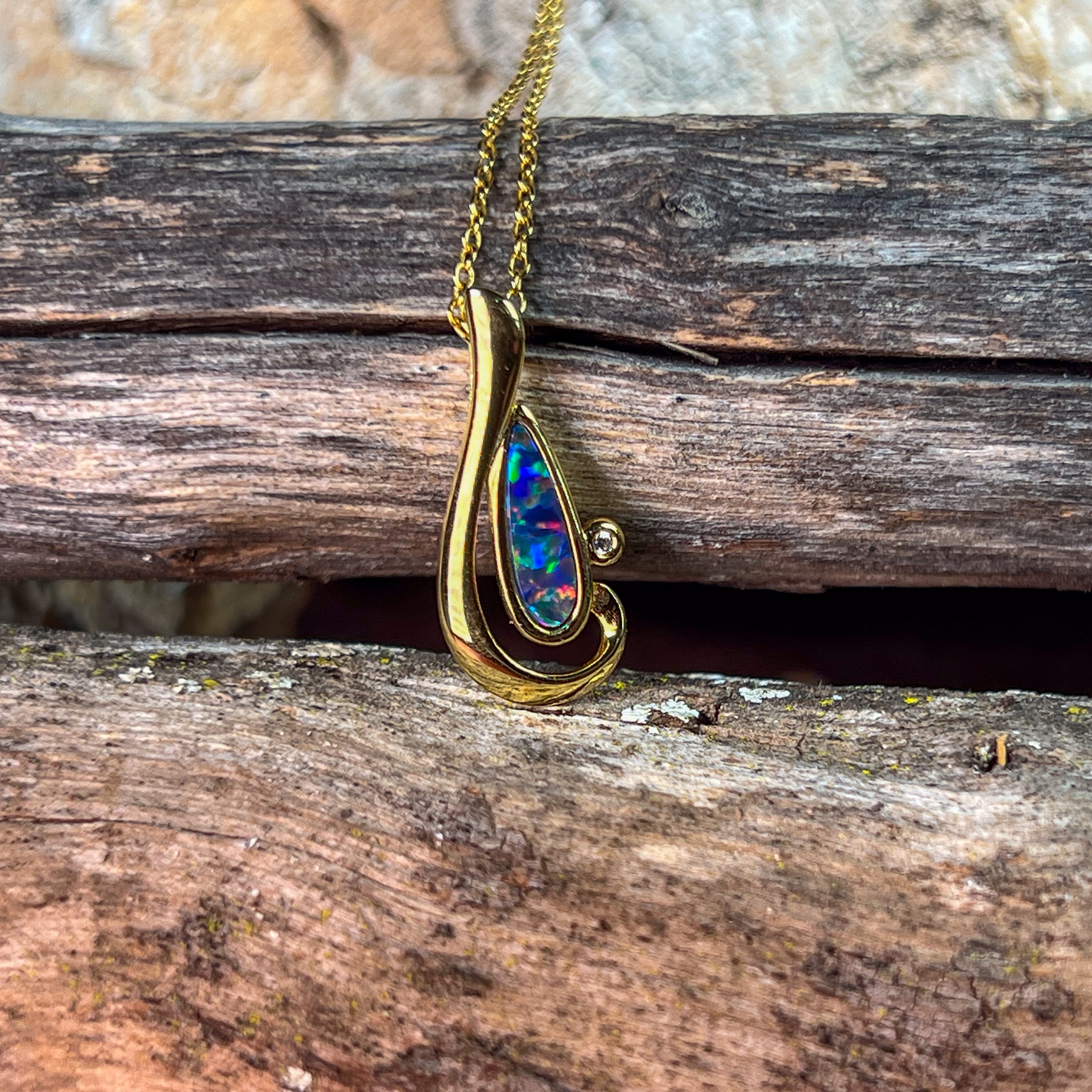 Elevate your jewellery collection with this striking Gold Plated Silver Note Shape Opal Doublet Pendant. Crafted to capture light beautifully, the distinctive note silhouette showcases a mesmerising opal doublet that displays nature's most enchanting colour play. The luxurious gold plating adds warmth and sophistication, making it the perfect statement piece for those who appreciate fine craftsmanship and unique design. Whether worn as a daily treasure or reserved for special occasions, this pendant transforms any outfit into something extraordinary. A timeless investment in wearable art that celebrates the natural beauty of Australian opal.