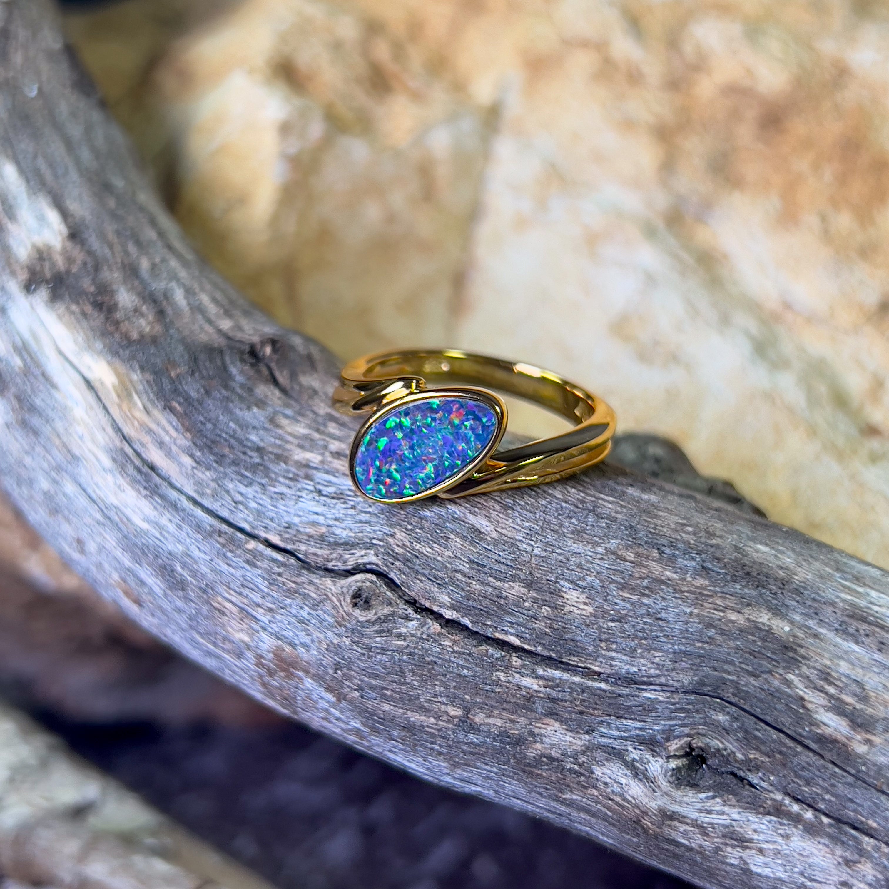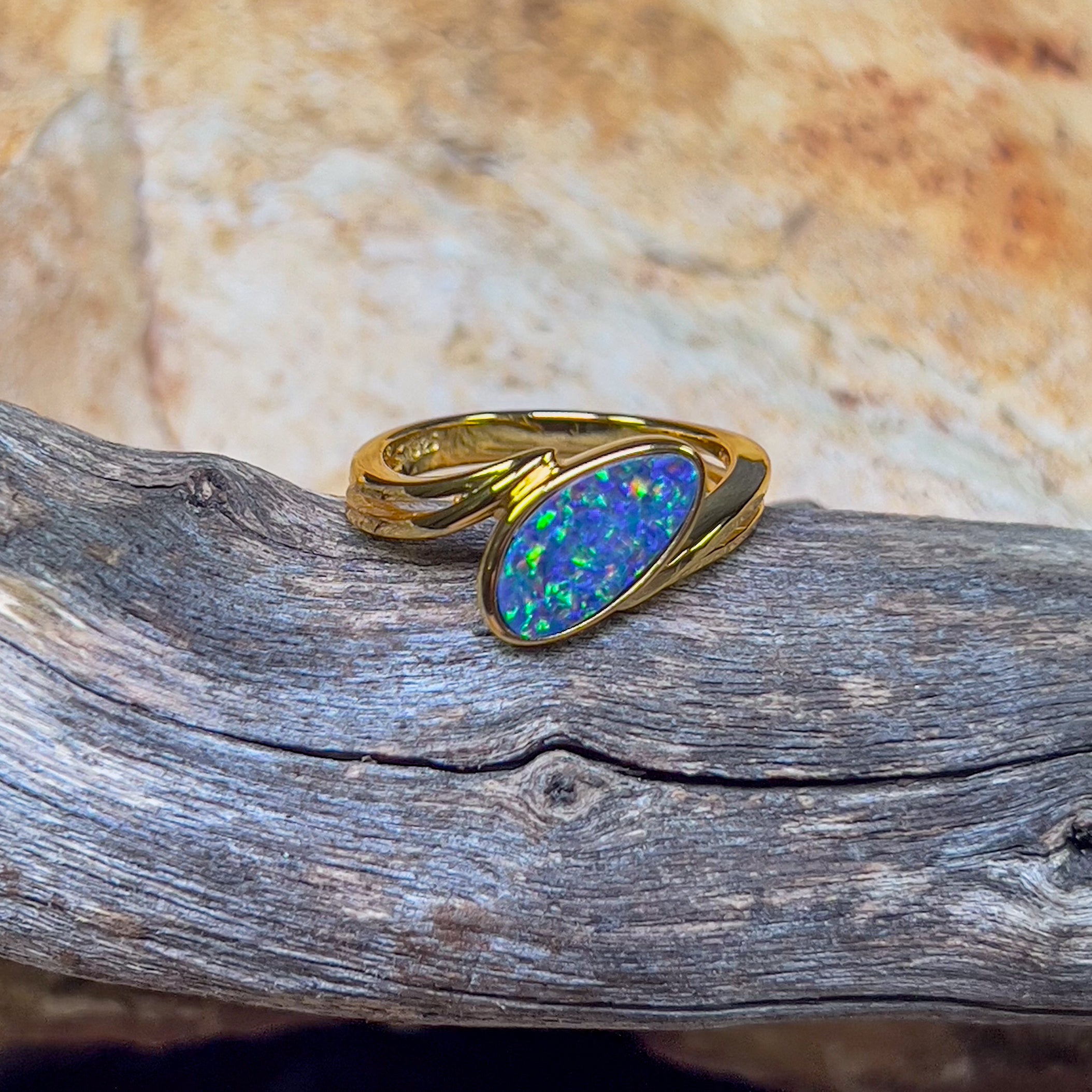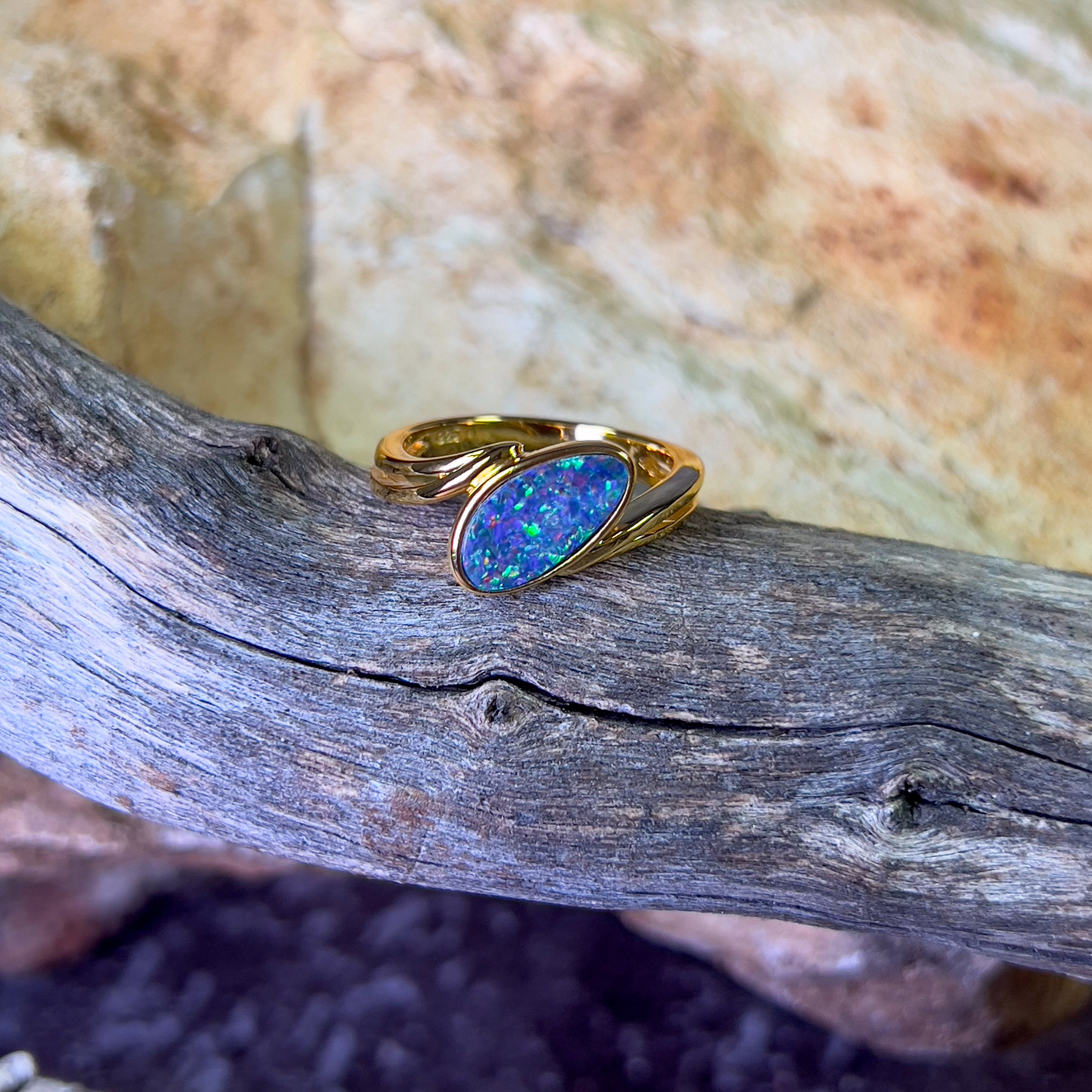 Gold Plated Sterling Silver cross over style Opal doublet ring