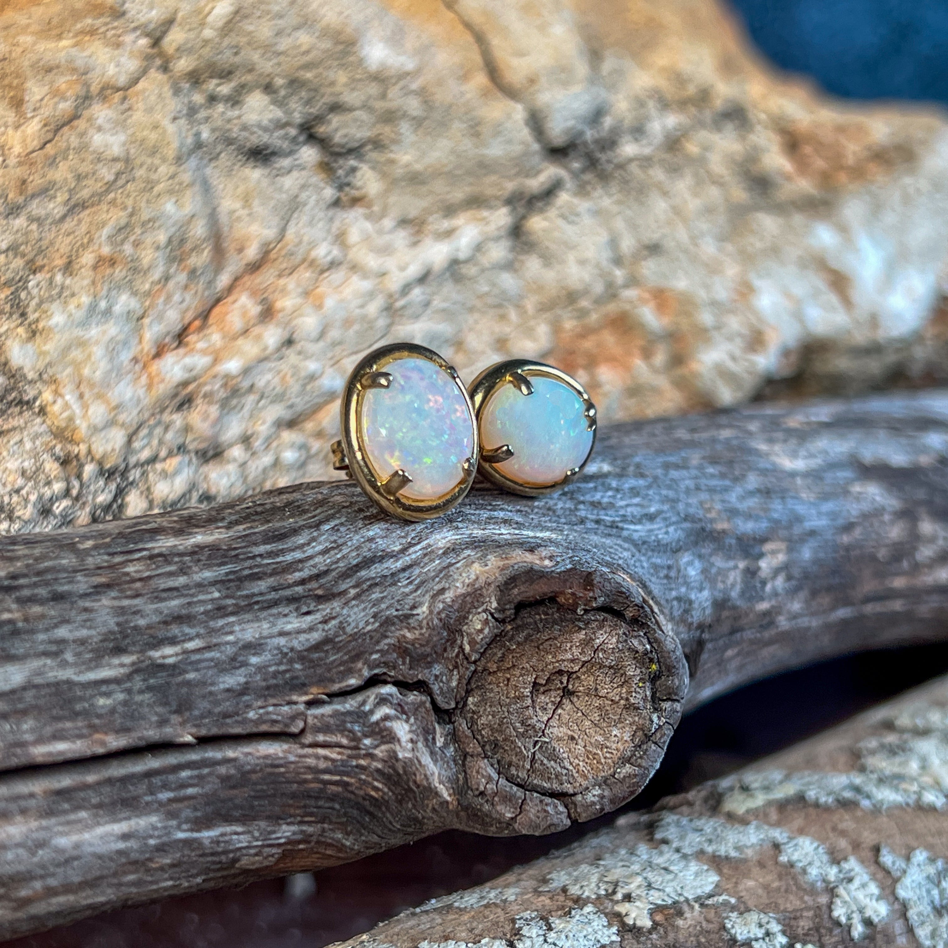 Elevate your everyday elegance with these stunning white opal stud earrings, expertly crafted from gold-plated sterling silver. Each 10x8mm opal is secured in a sophisticated claw setting with a refined bezel design, creating a timeless look that catches the light beautifully. The combination of precious materials and classic styling makes these studs perfect for both special occasions and daily wear. Versatile, durable, and undeniably beautiful—these earrings are an investment piece that will become a cherished favourite in your jewellery collection.