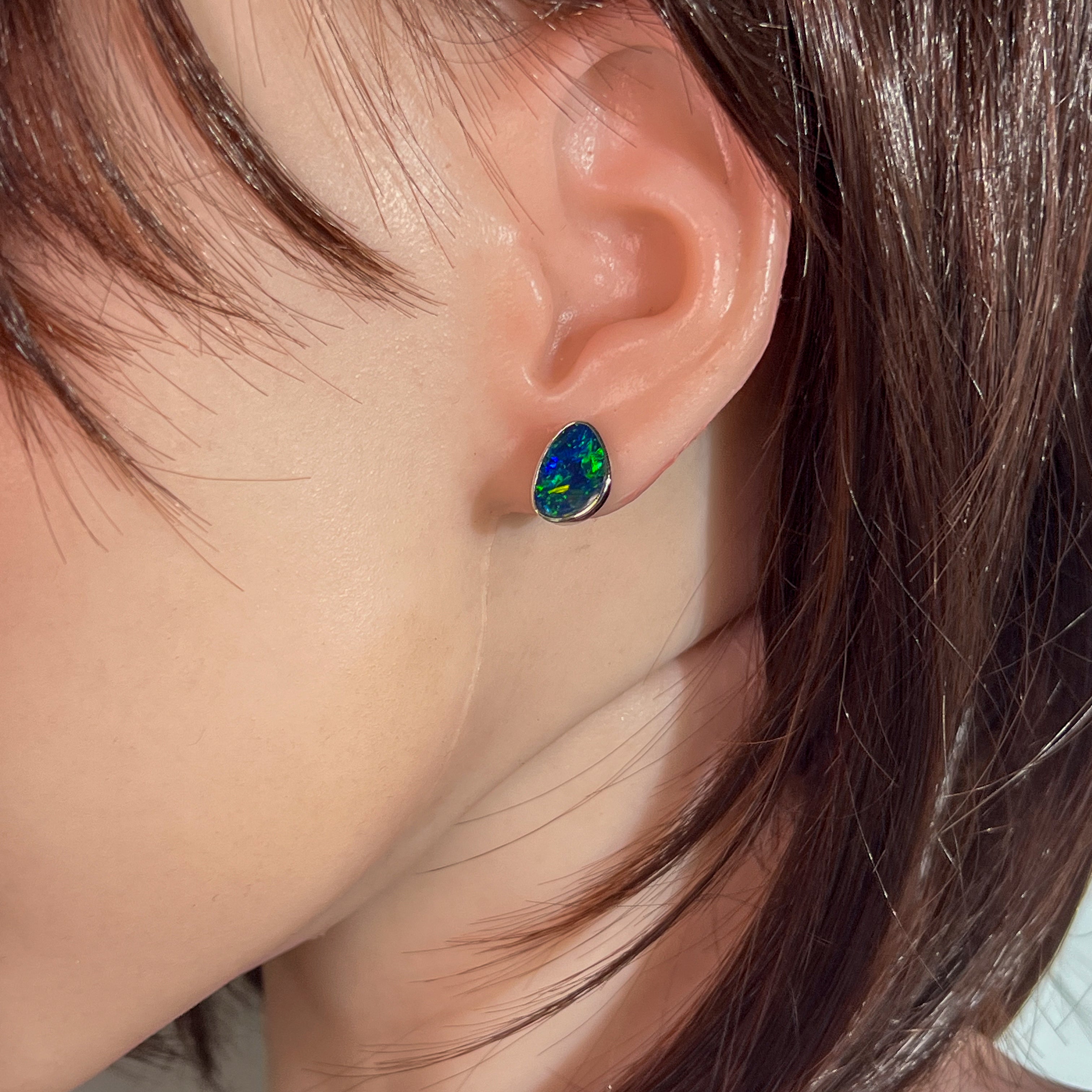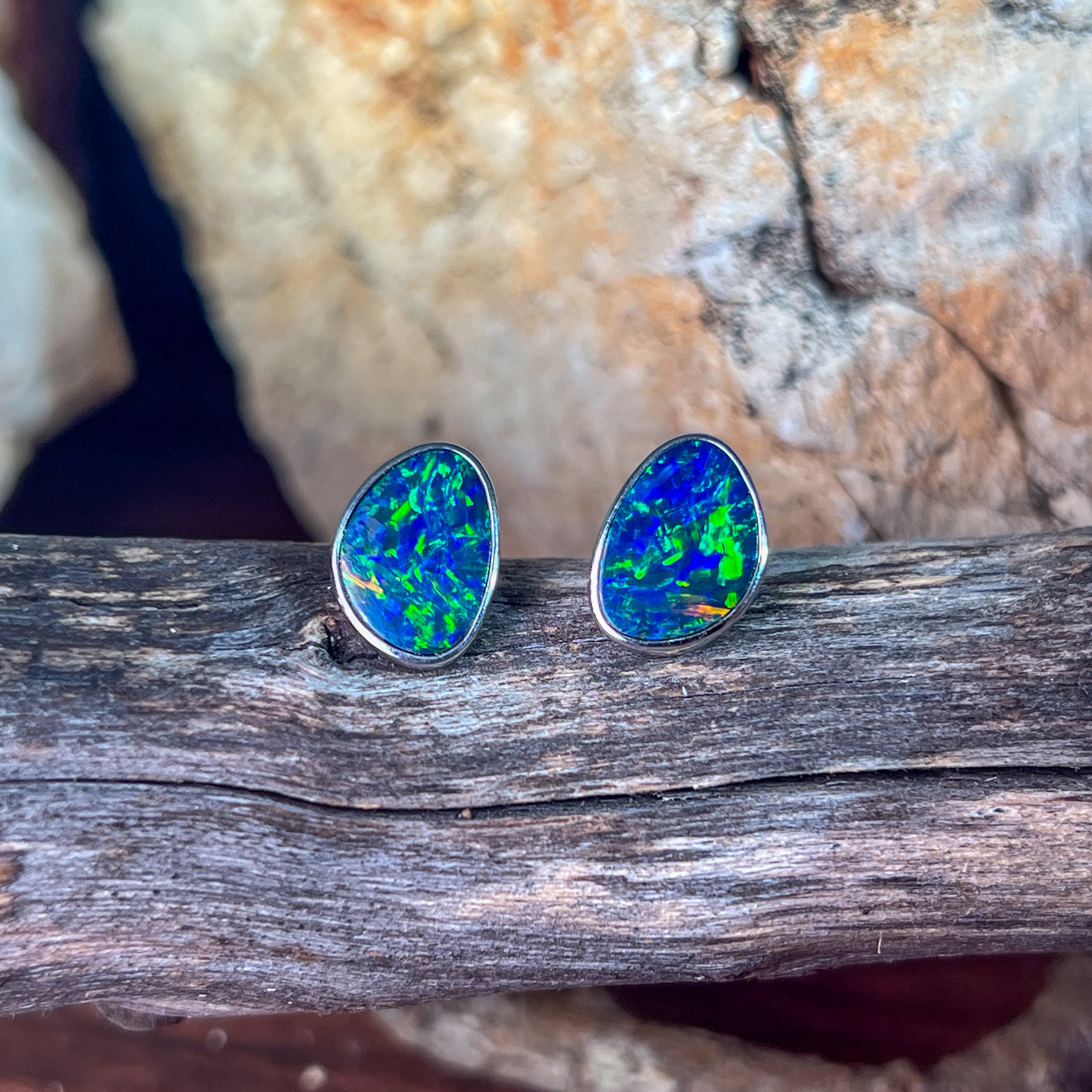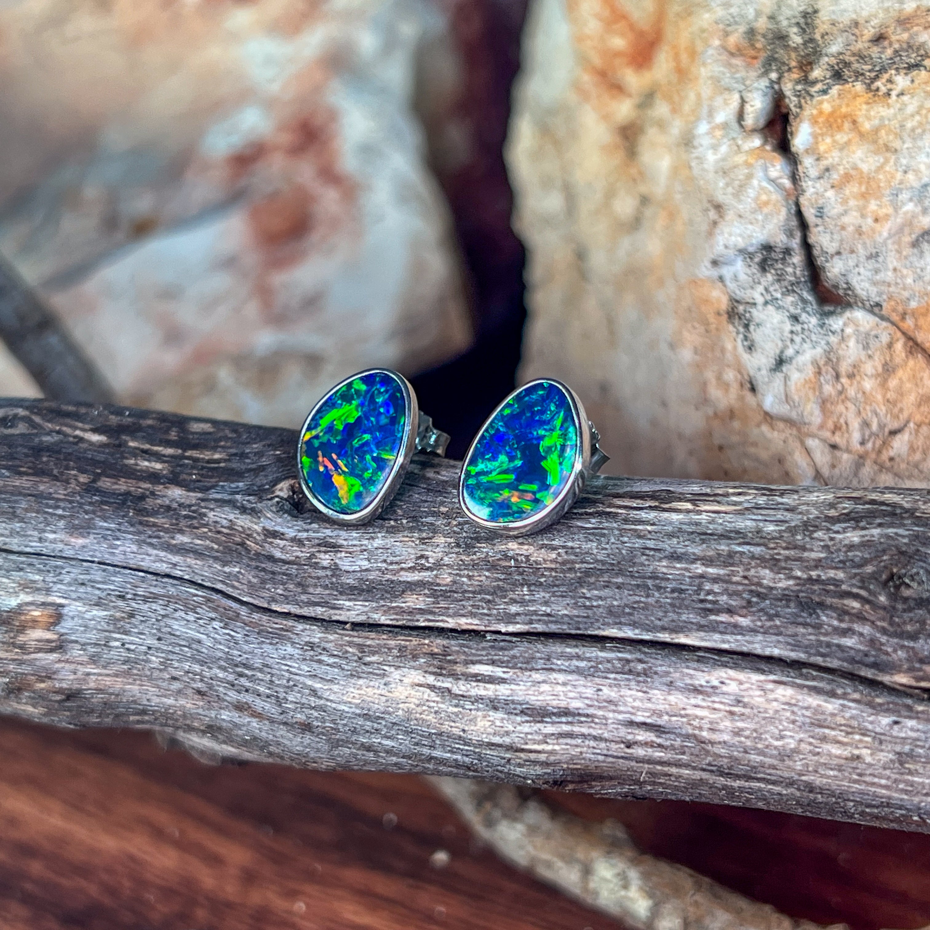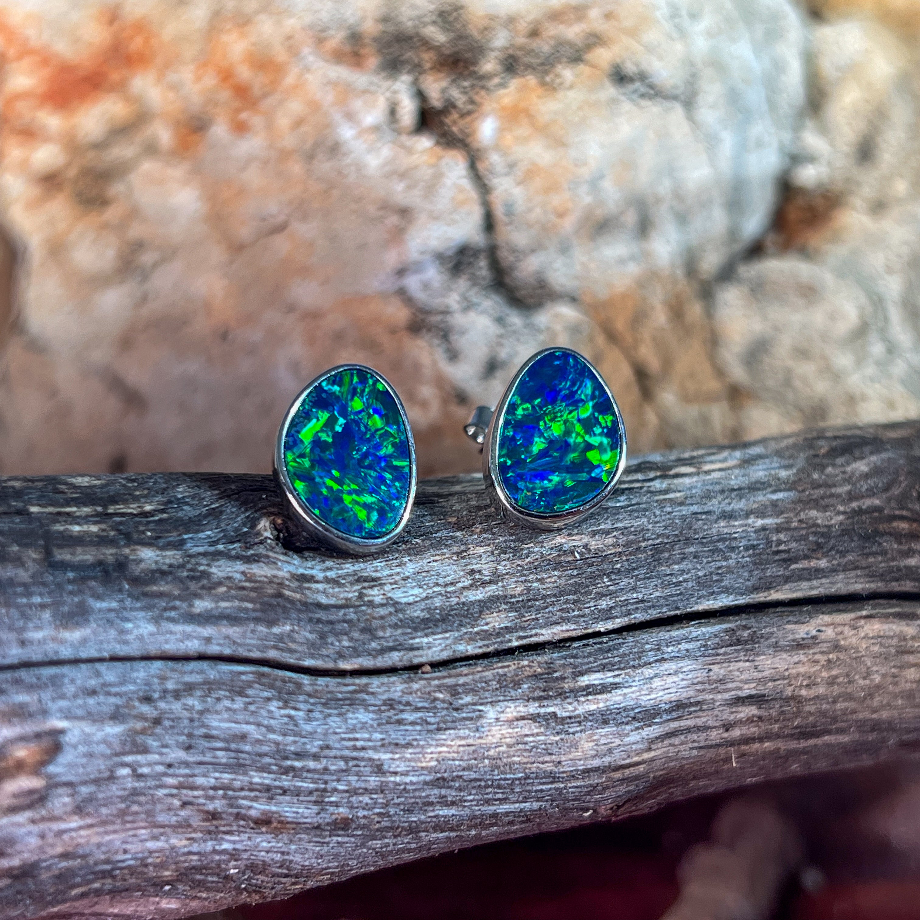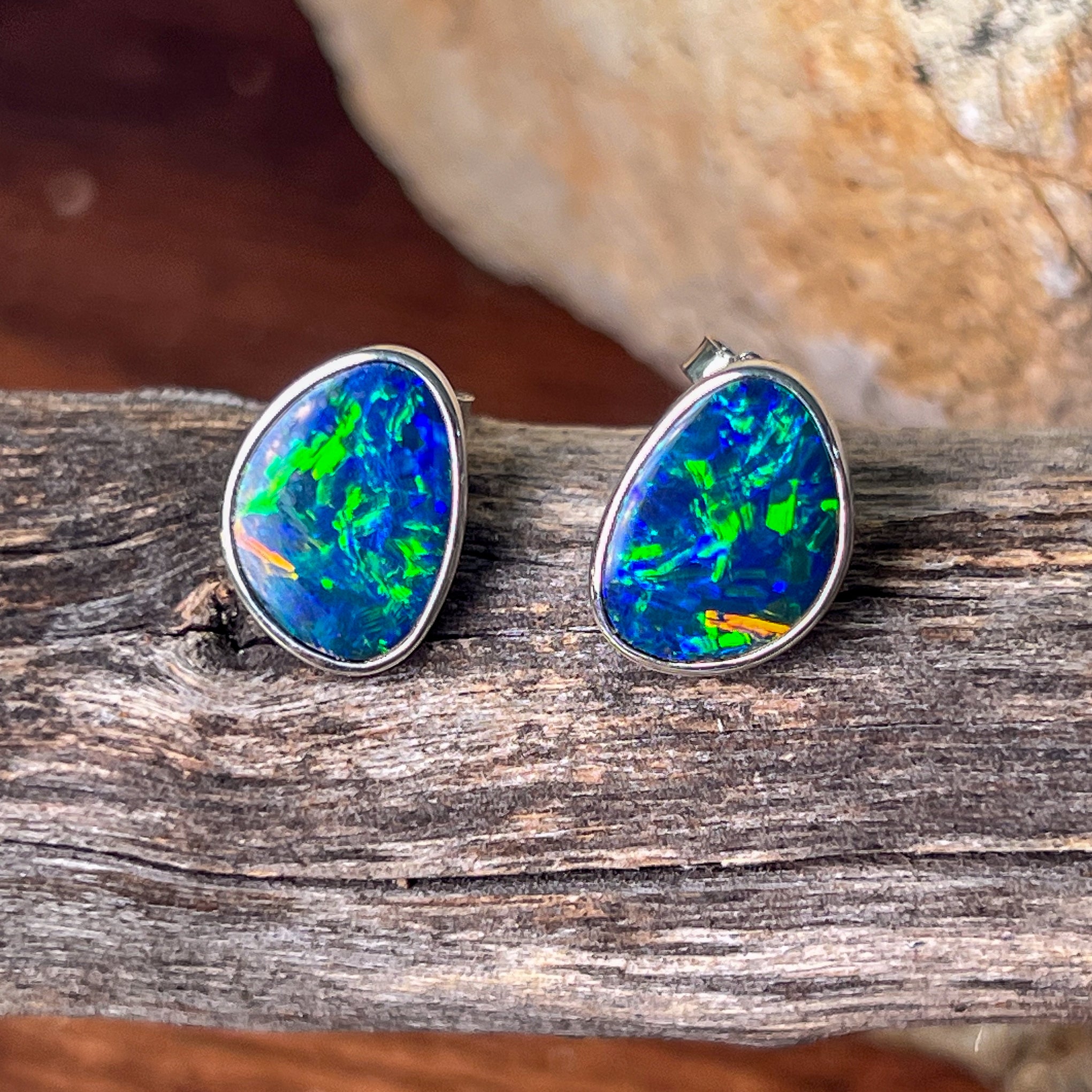 Dare to stand out with our stunning 14kt White Gold Opal doublet studs, featuring a mesmerizing 11x8mm birthstone. These earrings are the perfect choice for those who are not afraid to take risks and make a statement. Add a touch of adventure and elegance to your look!