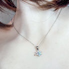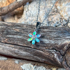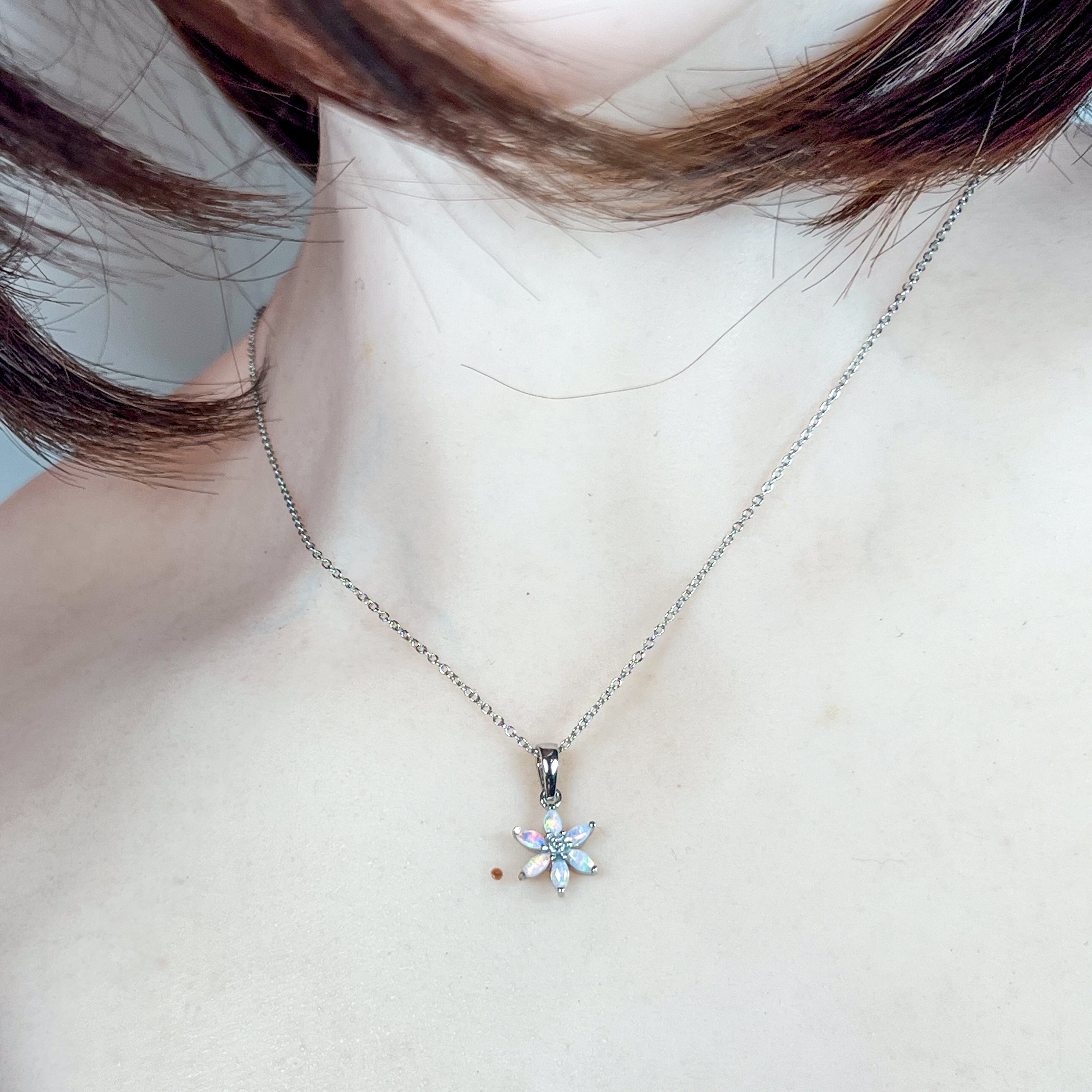 Delicate florals frame a luminous opal in this exquisite 9kt white gold pendant. The refined design captures nature's elegance in miniature, perfect for layering or wearing solo. Each piece showcases the opal's mesmerising play of colour, while the intricate floral detailing adds timeless sophistication. A versatile treasure that transitions effortlessly from everyday wear to special occasions, this pendant celebrates understated luxury and natural beauty.
