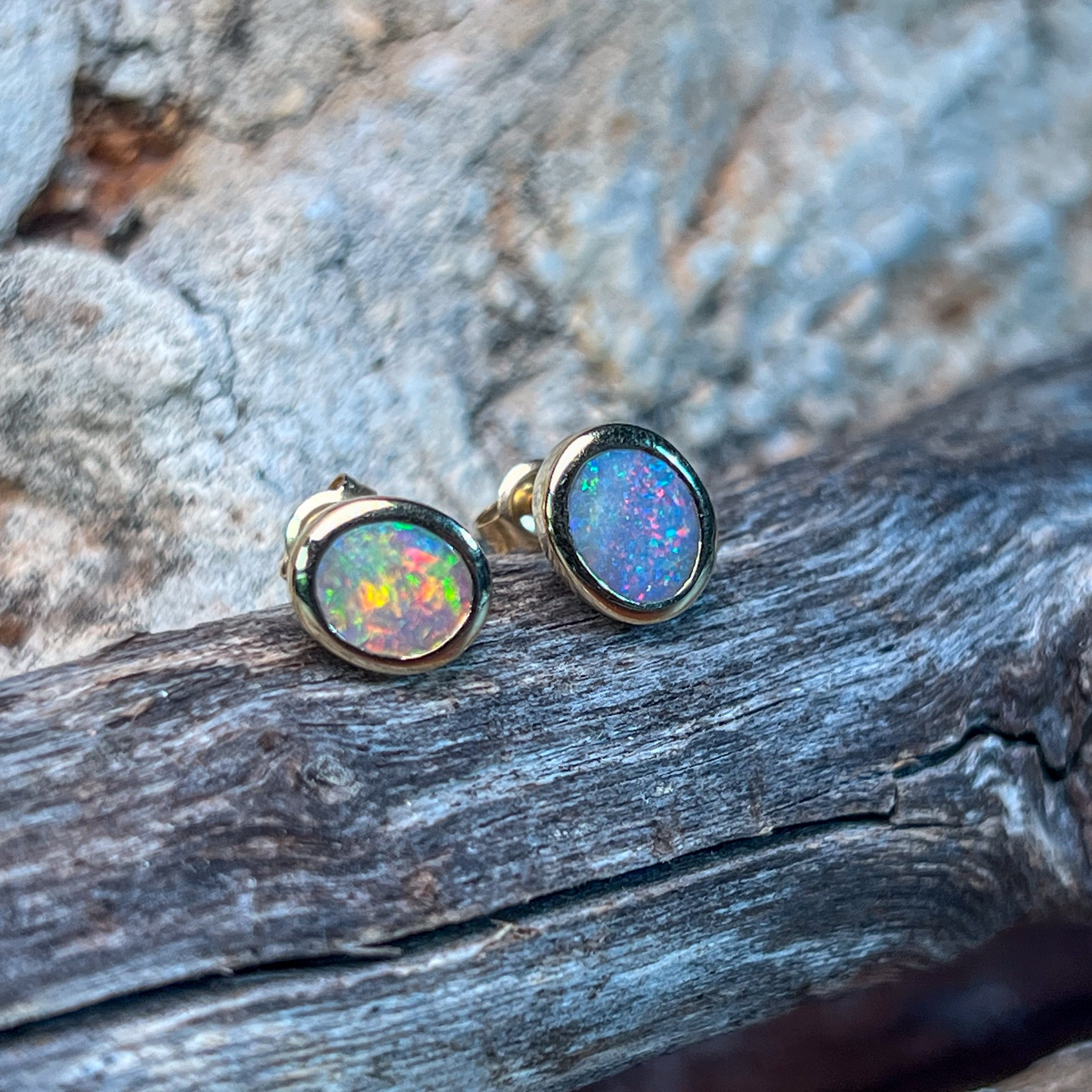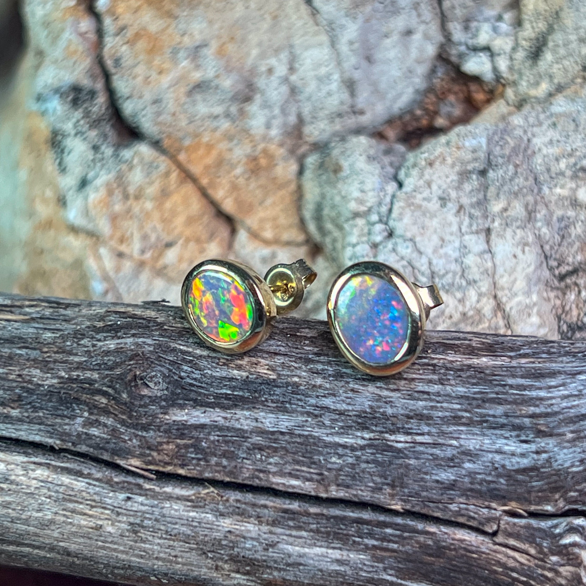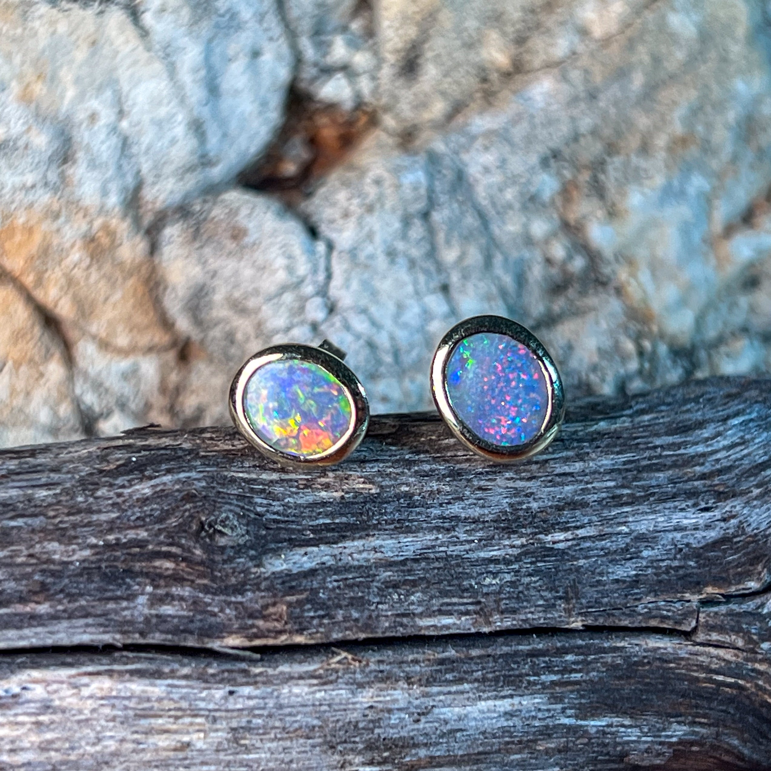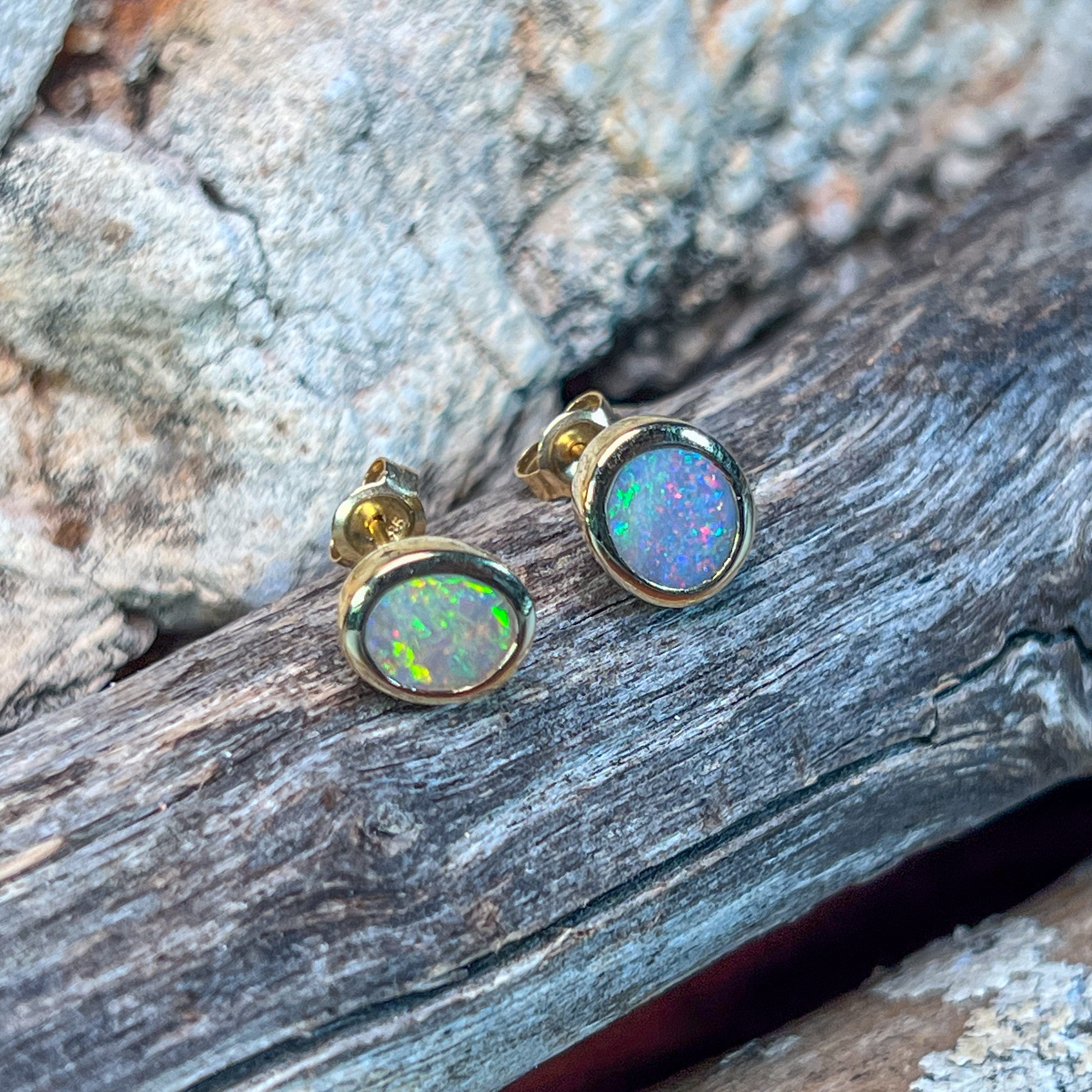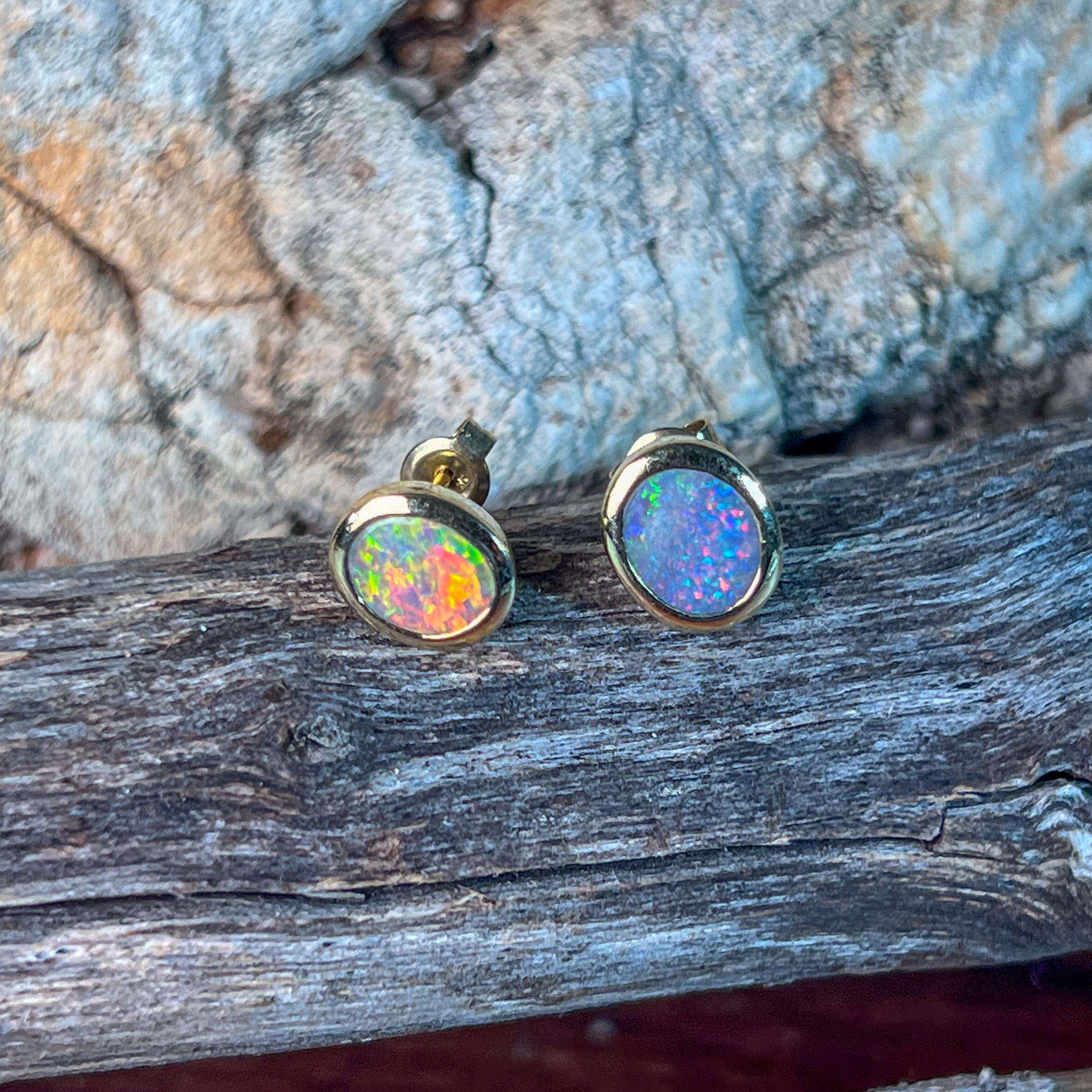 Indulge in luxury with our exclusive pair of 14kt yellow gold Black Opal studs. Crafted with fine jewellery in mind, these stunning earrings feature radiant 1.57ct EA opals that will add a touch of elegance to any outfit. Elevate your style with these exquisite gold opal earrings.