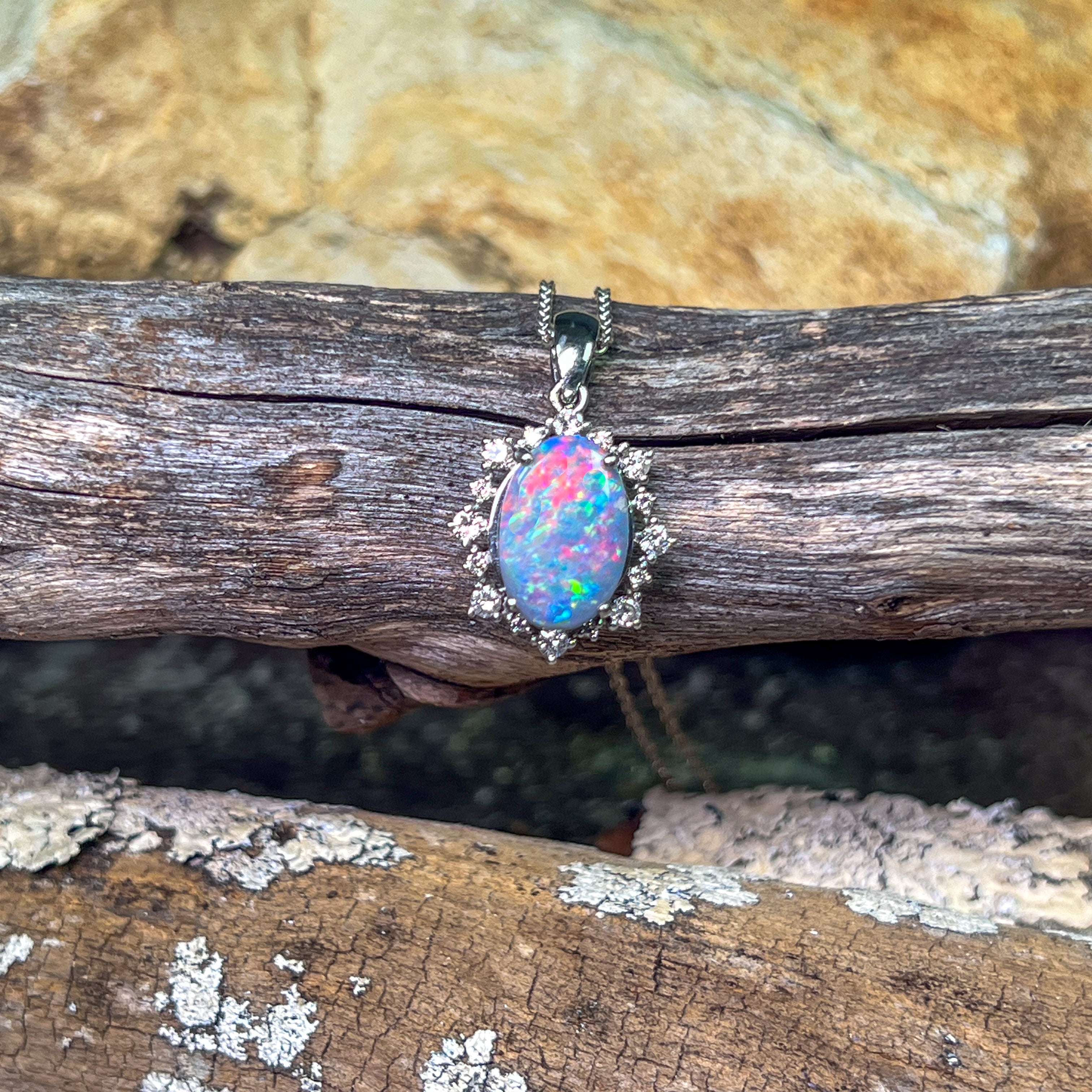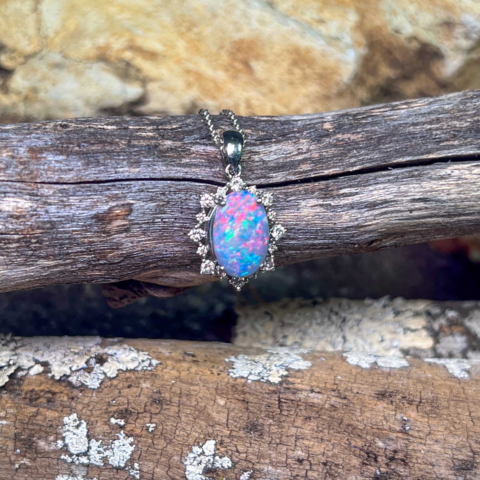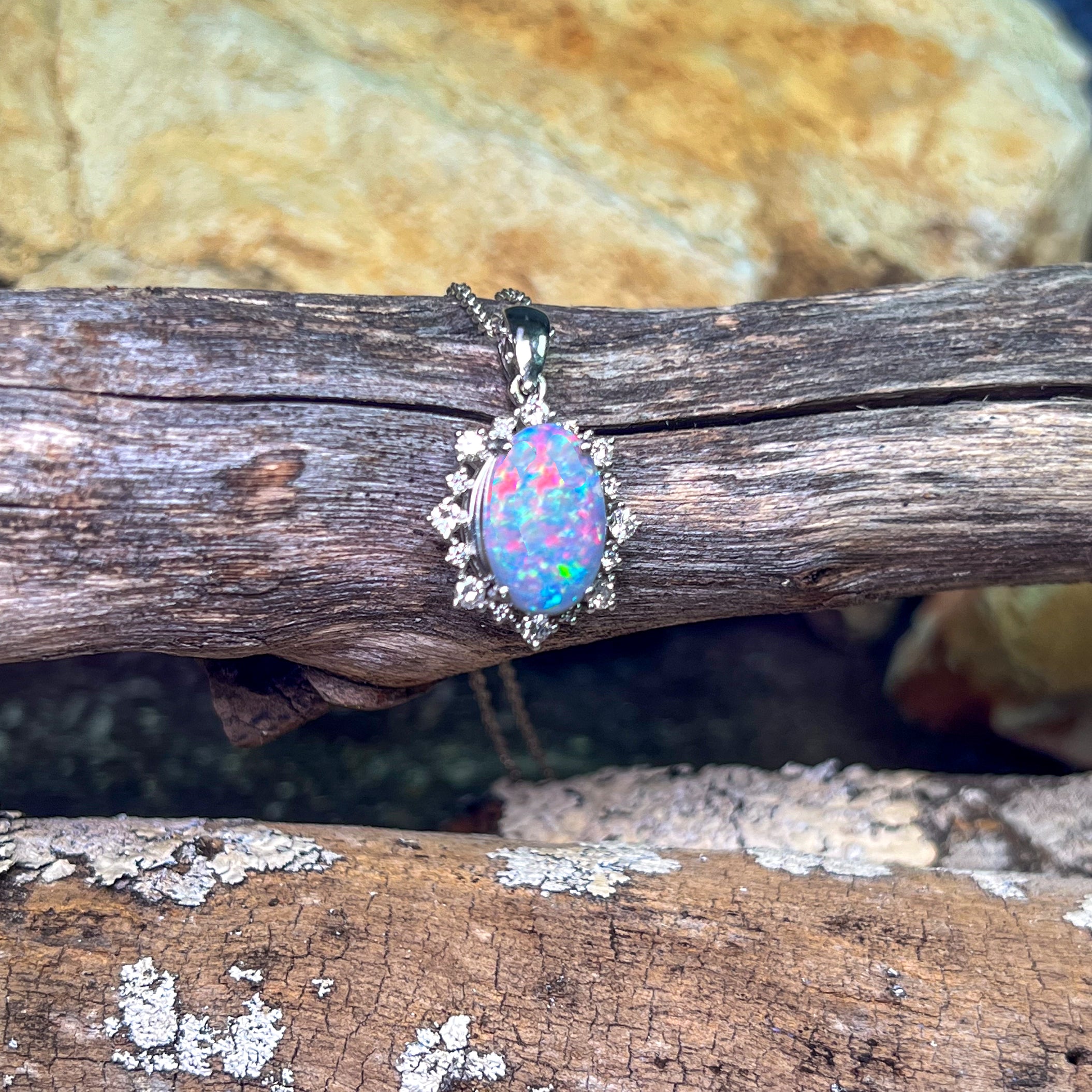 Indulge in the beauty of the Black Opal fine jewellery set in our Platinum Halo pendant. The mesmerizing opalescent hues, coupled with radiant diamonds, make for a luxurious piece that exudes sophistication. Elevate any outfit with this exclusive and timeless accessory.