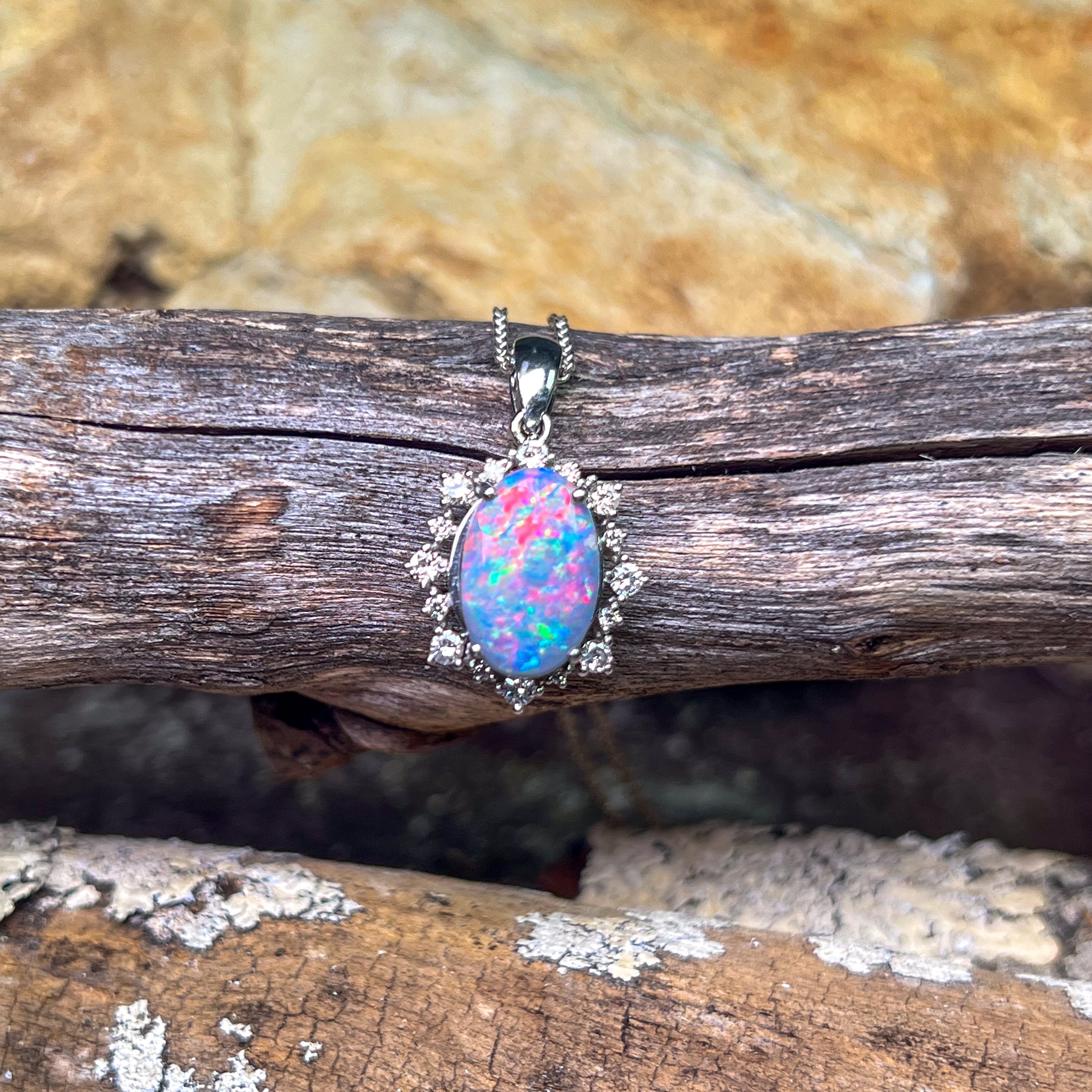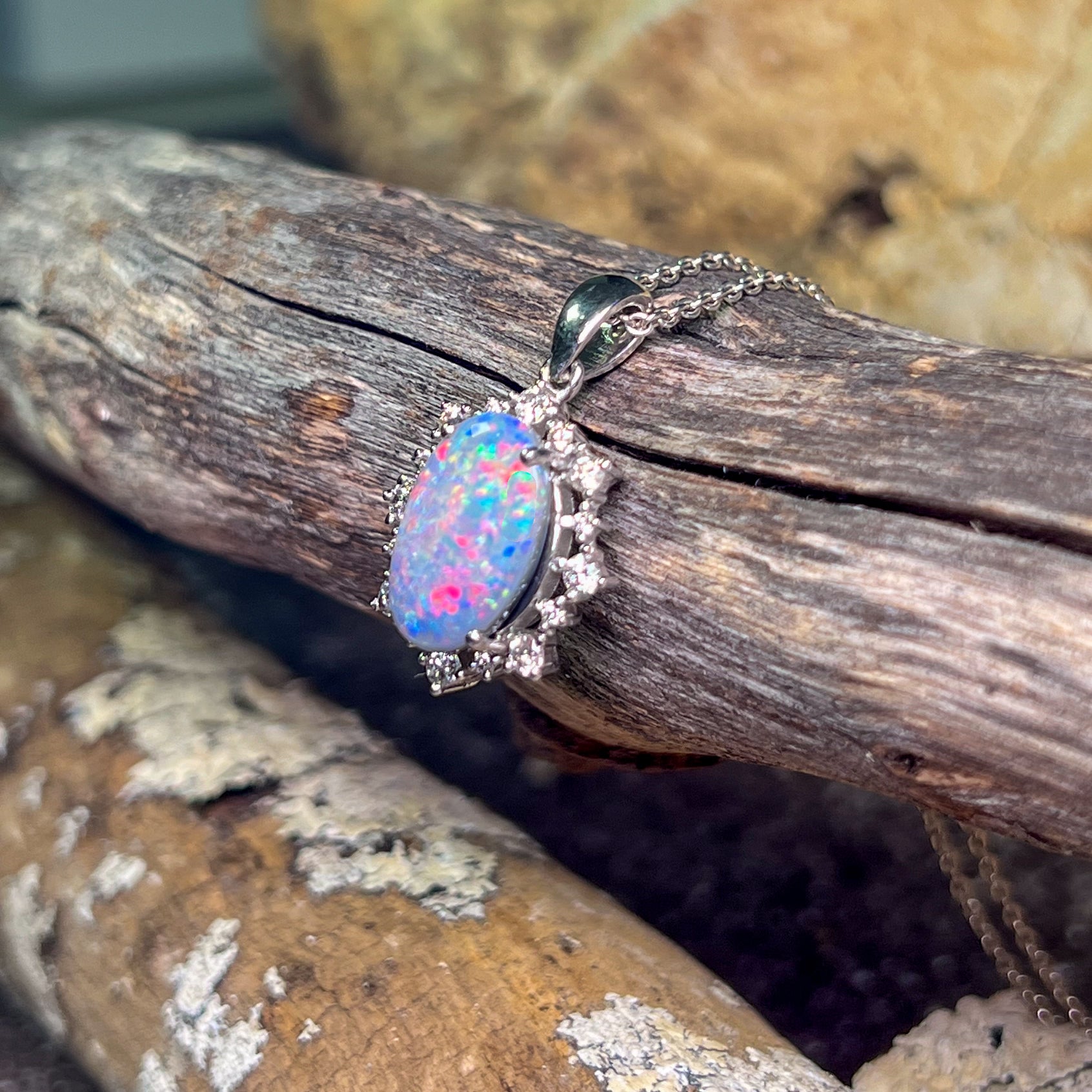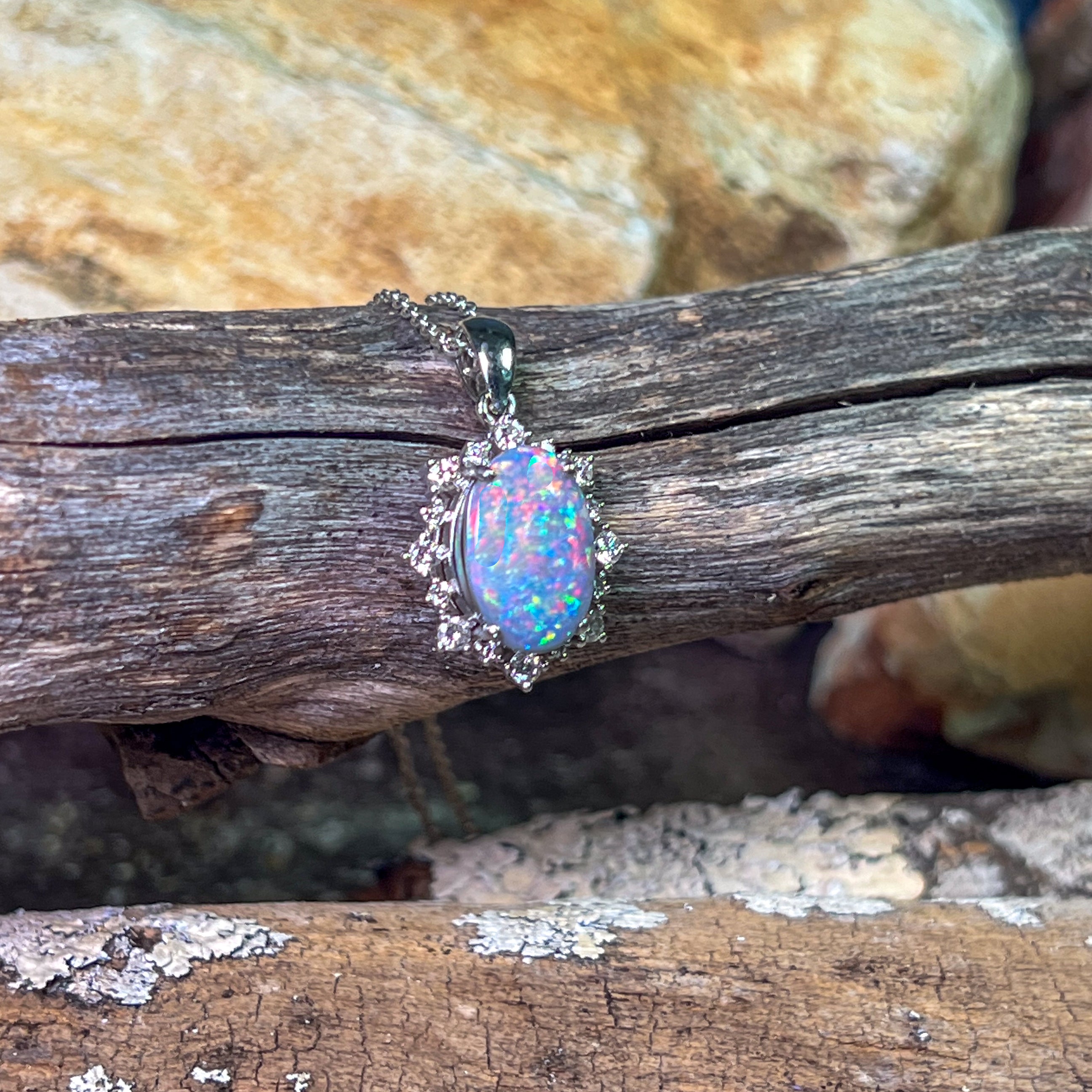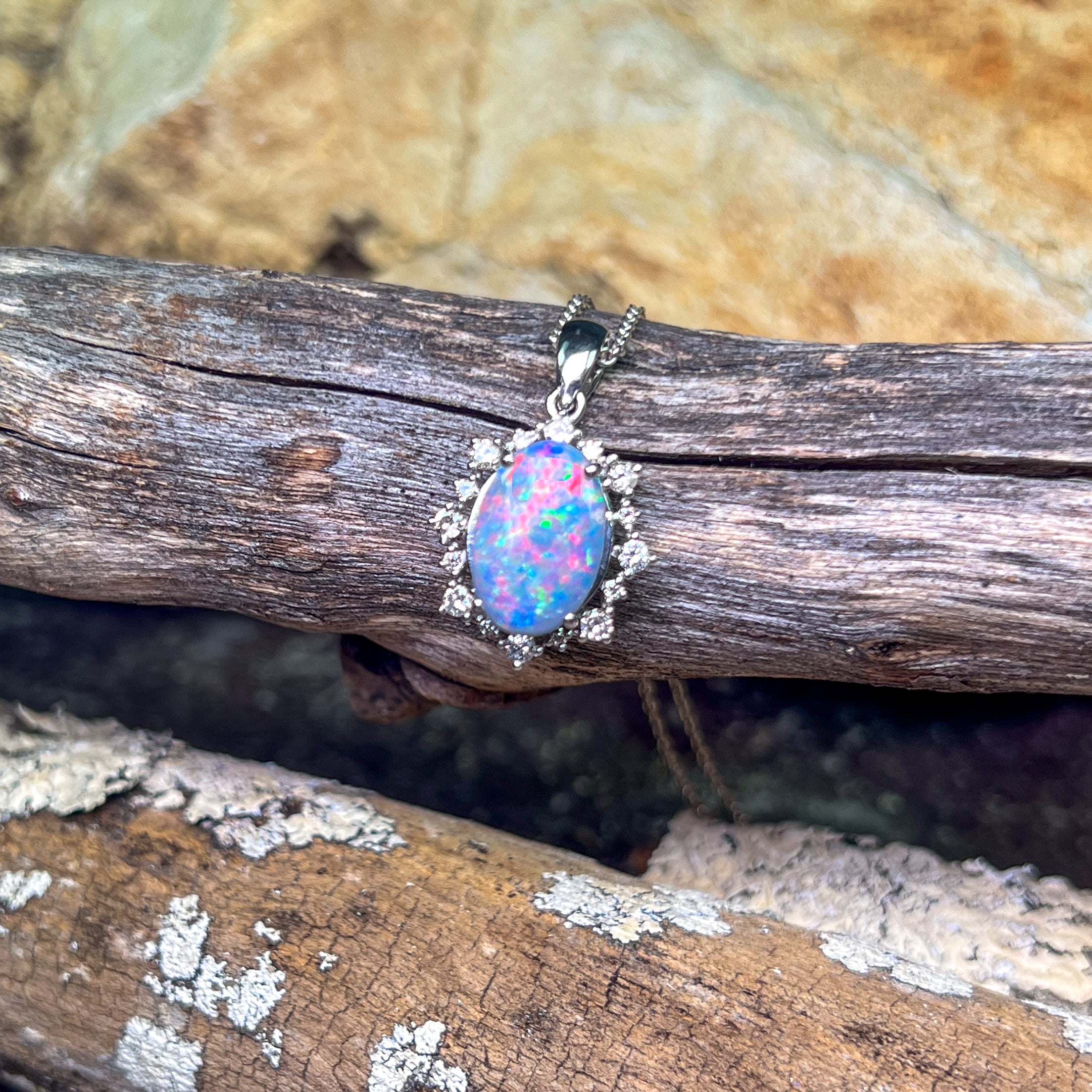 Indulge in the beauty of the Black Opal fine jewellery set in our Platinum Halo pendant. The mesmerizing opalescent hues, coupled with radiant diamonds, make for a luxurious piece that exudes sophistication. Elevate any outfit with this exclusive and timeless accessory.
