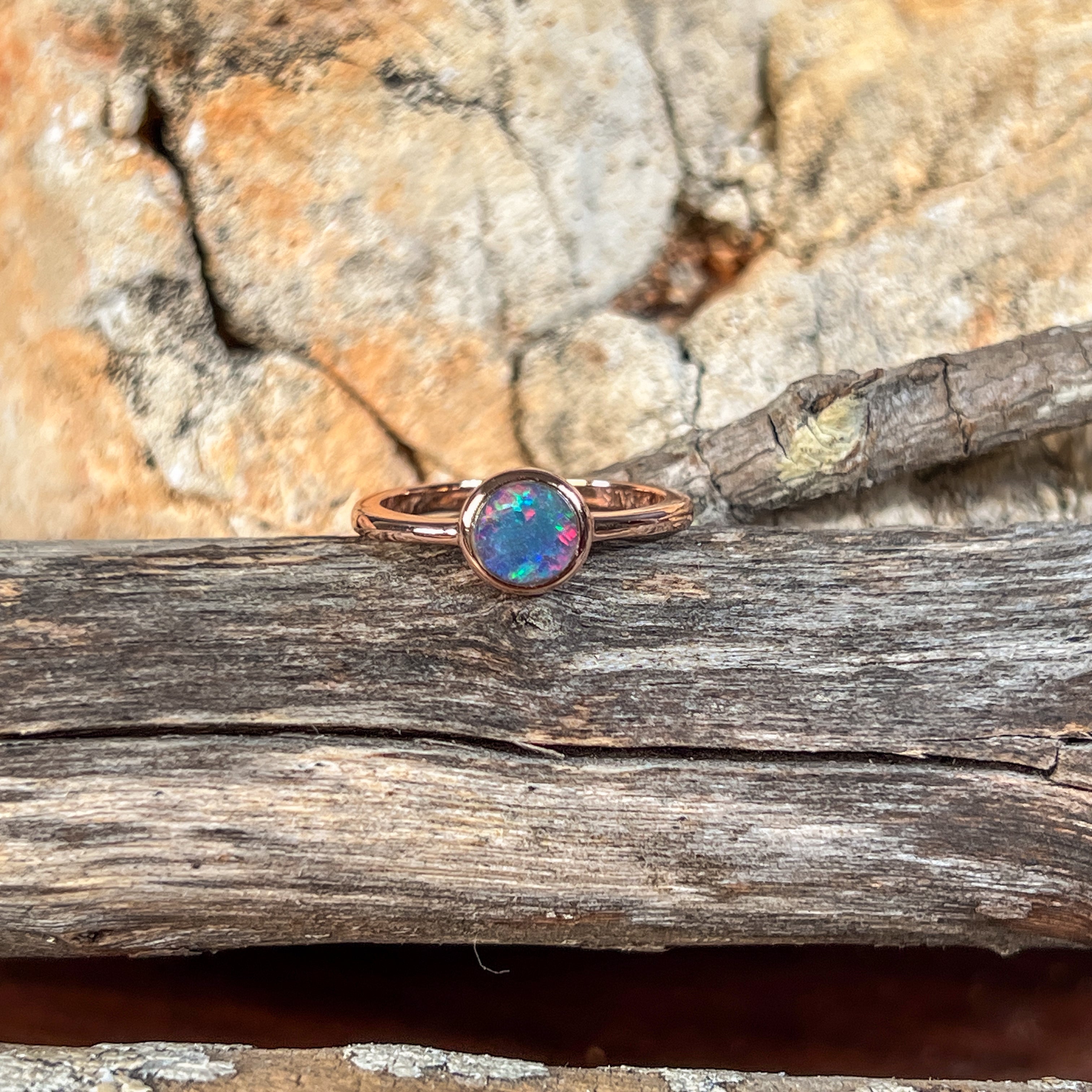 One Rose Gold Plated Sterling Silver solitaire round bezel set Opal ring