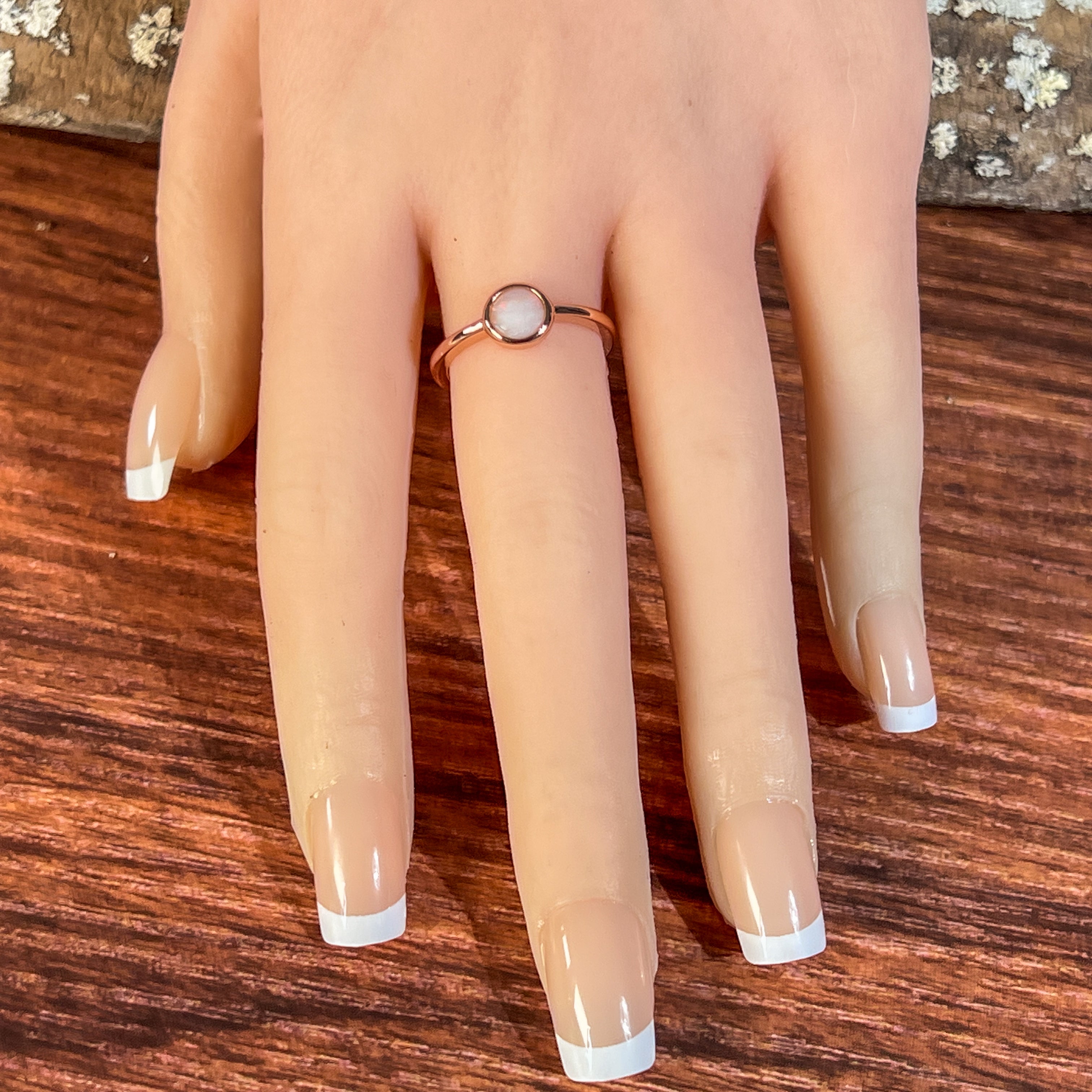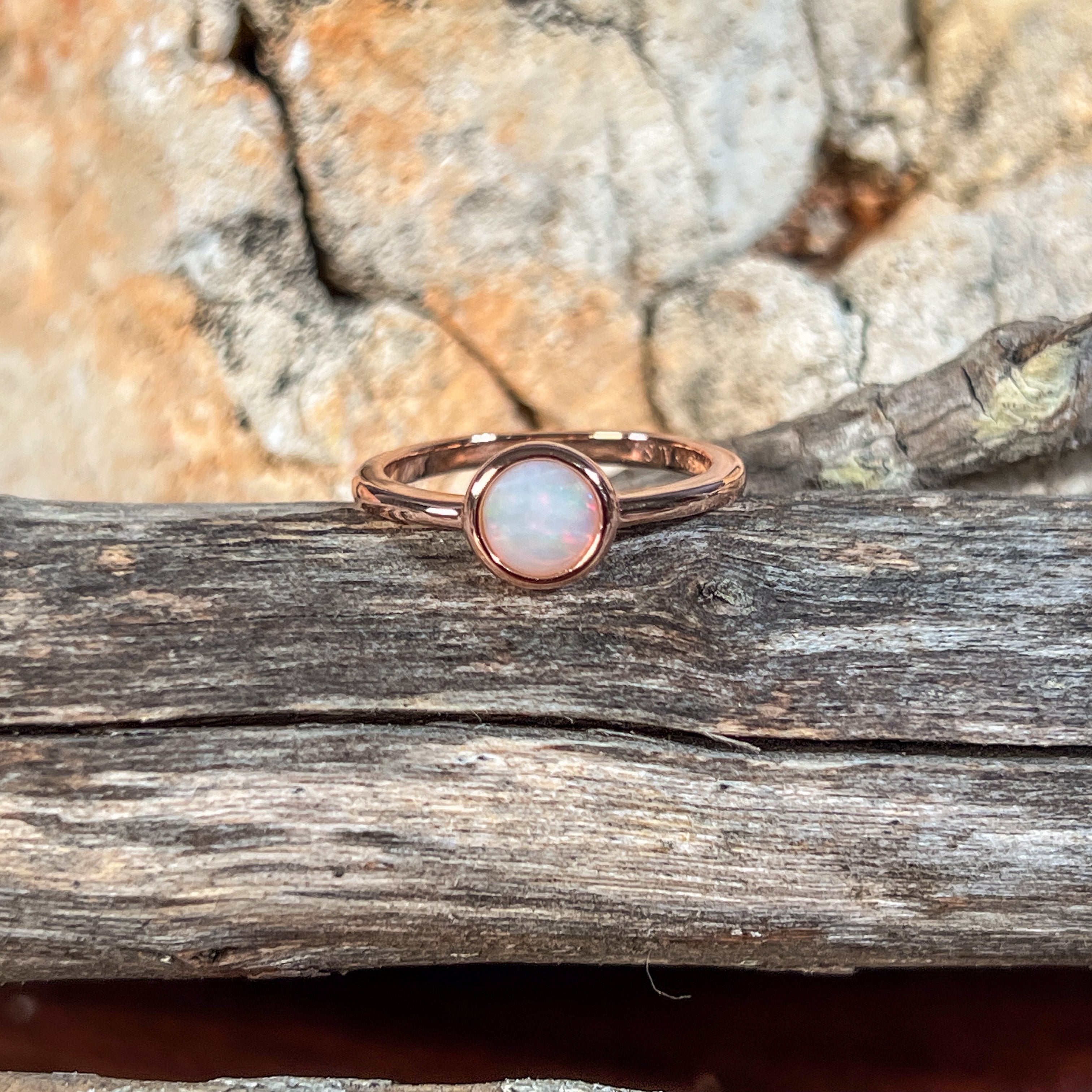 Rose Gold plated silver 6mm White Opal solitaire ring