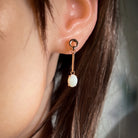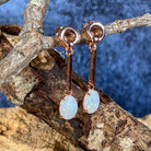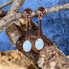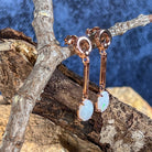 Rose Gold plated Silver dangling claw set White Opal earrings