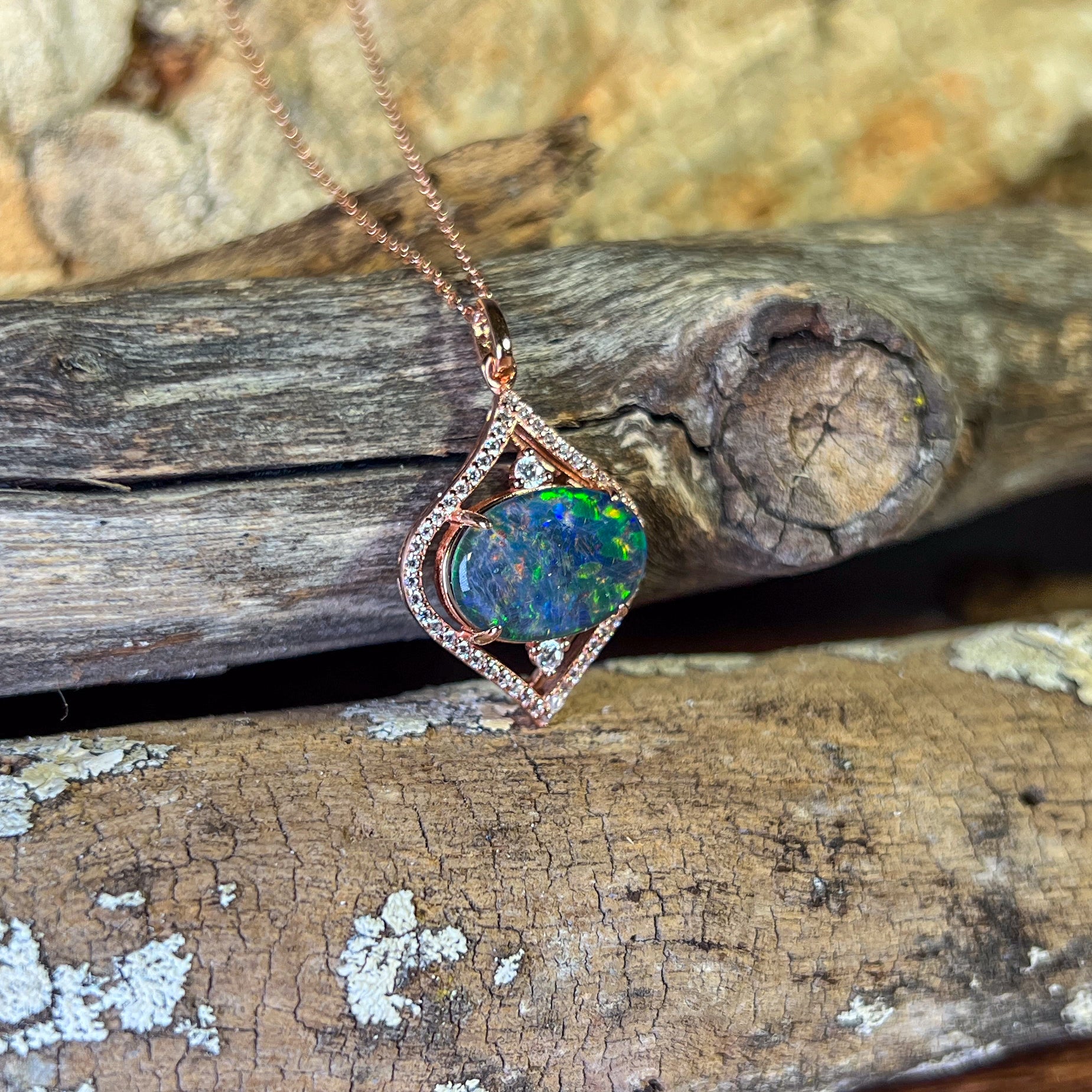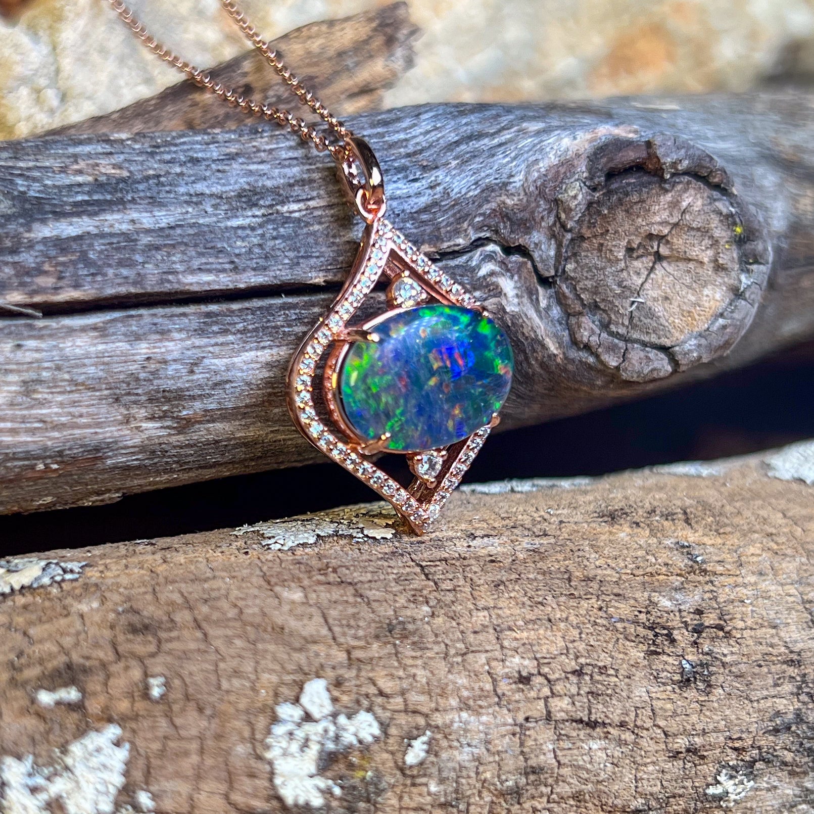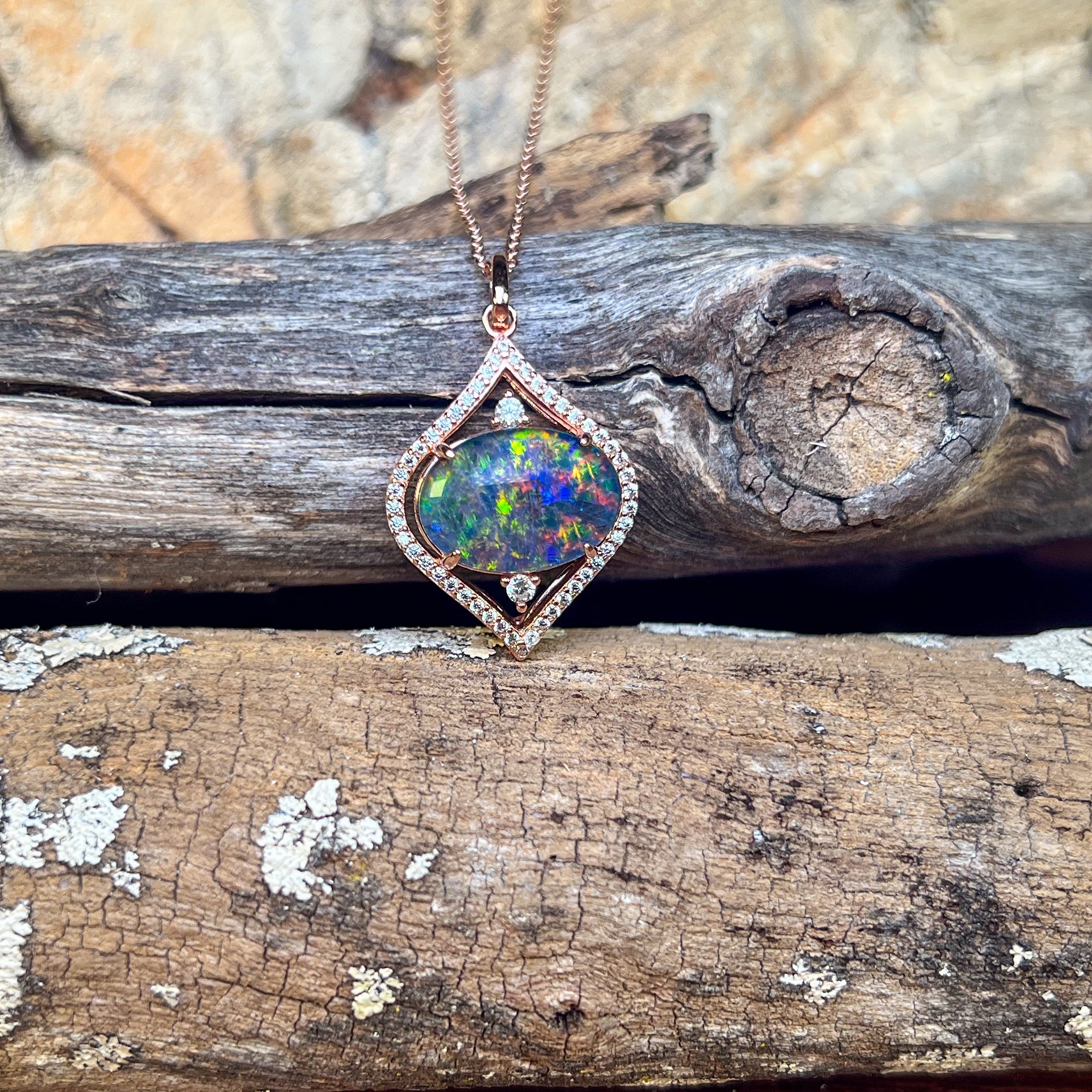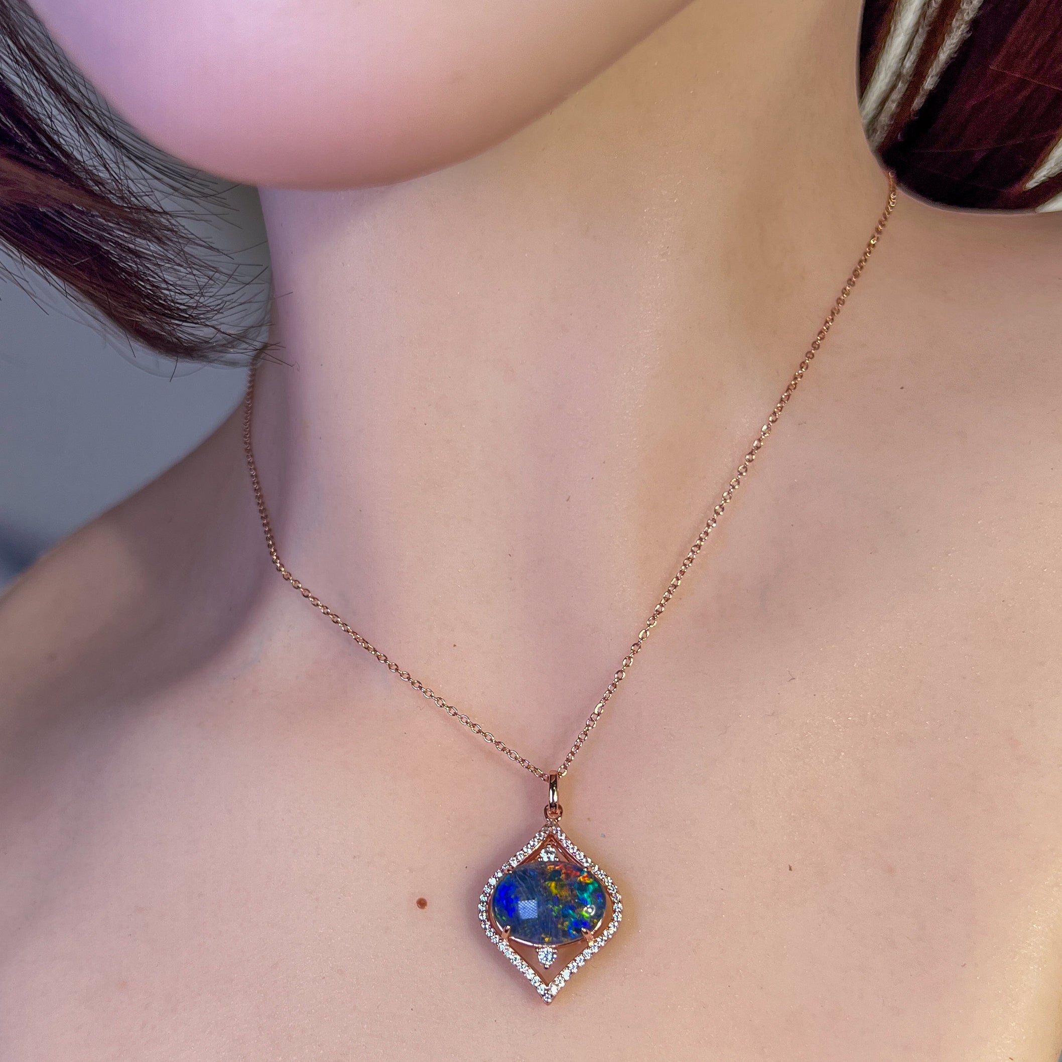 Experience elegance and charm with our Rose Gold Plated Silver Opal Triplet Pendant. Featuring a horizontal design, this pendant radiates sophistication. The 14x10mm Opal triplet adds a touch of glamour. Elevate your style and make a statement with this stunning piece of jewelry.