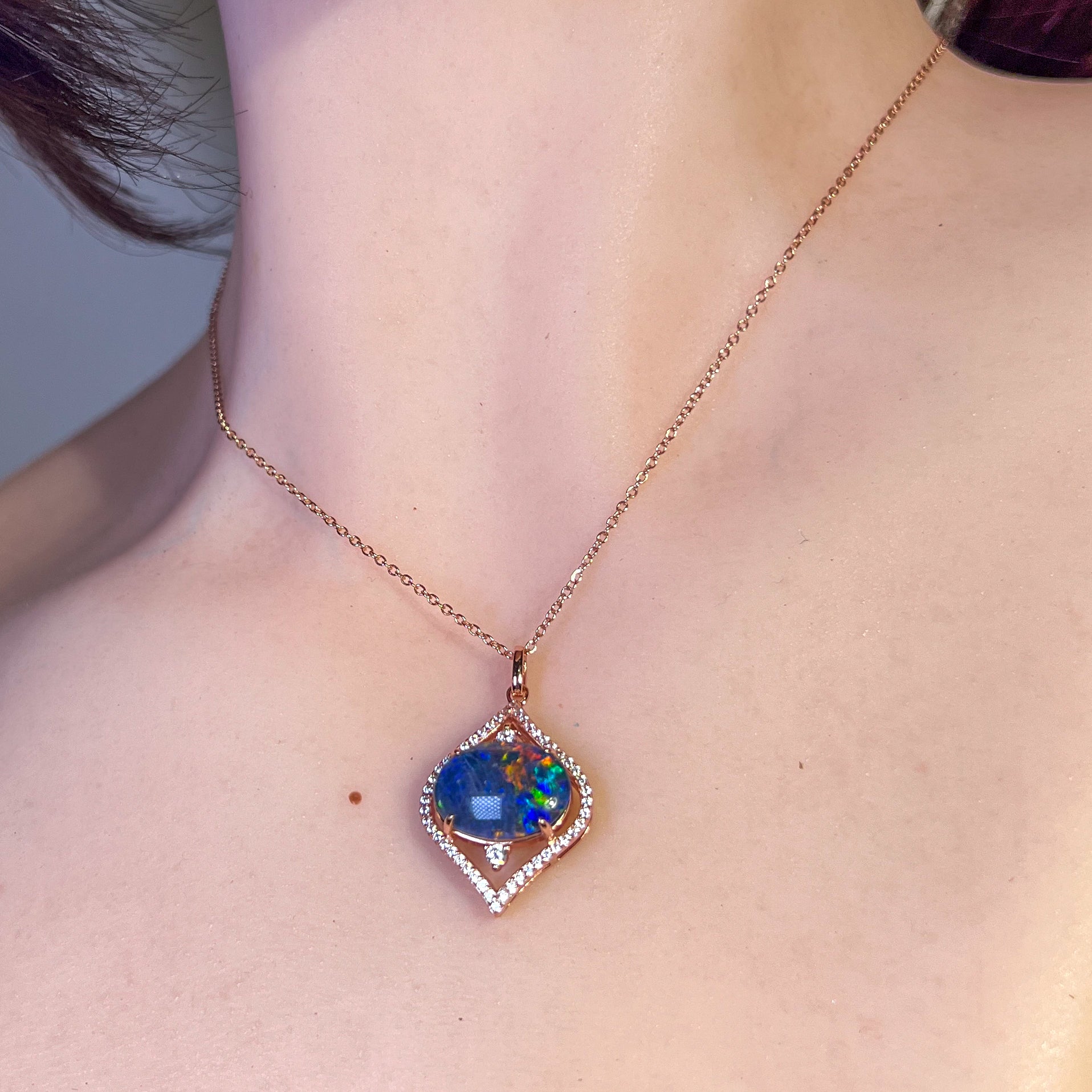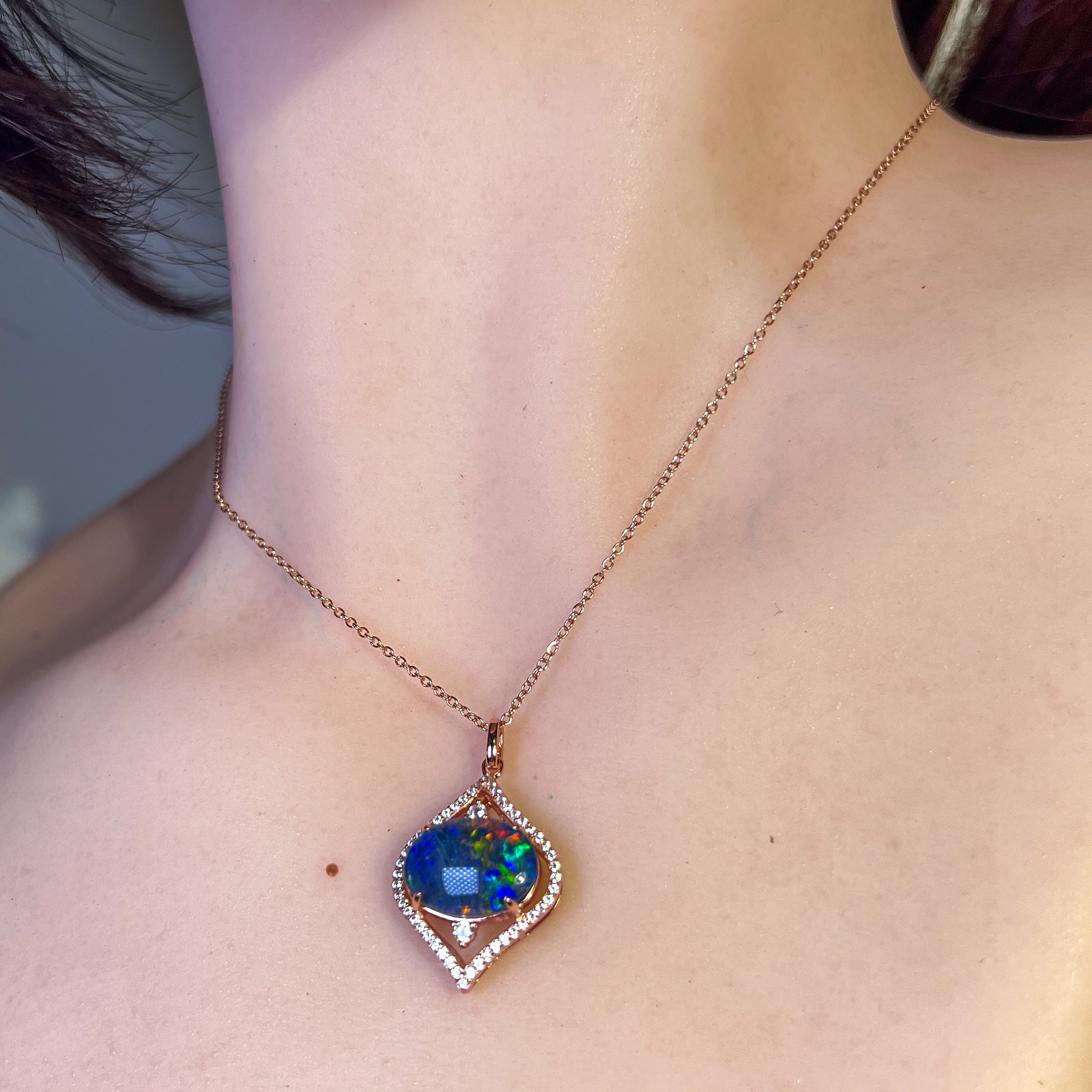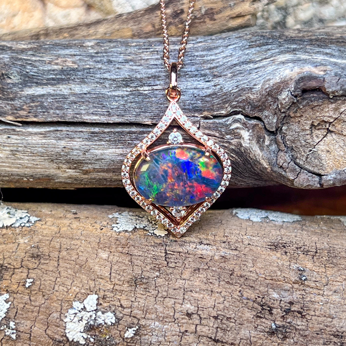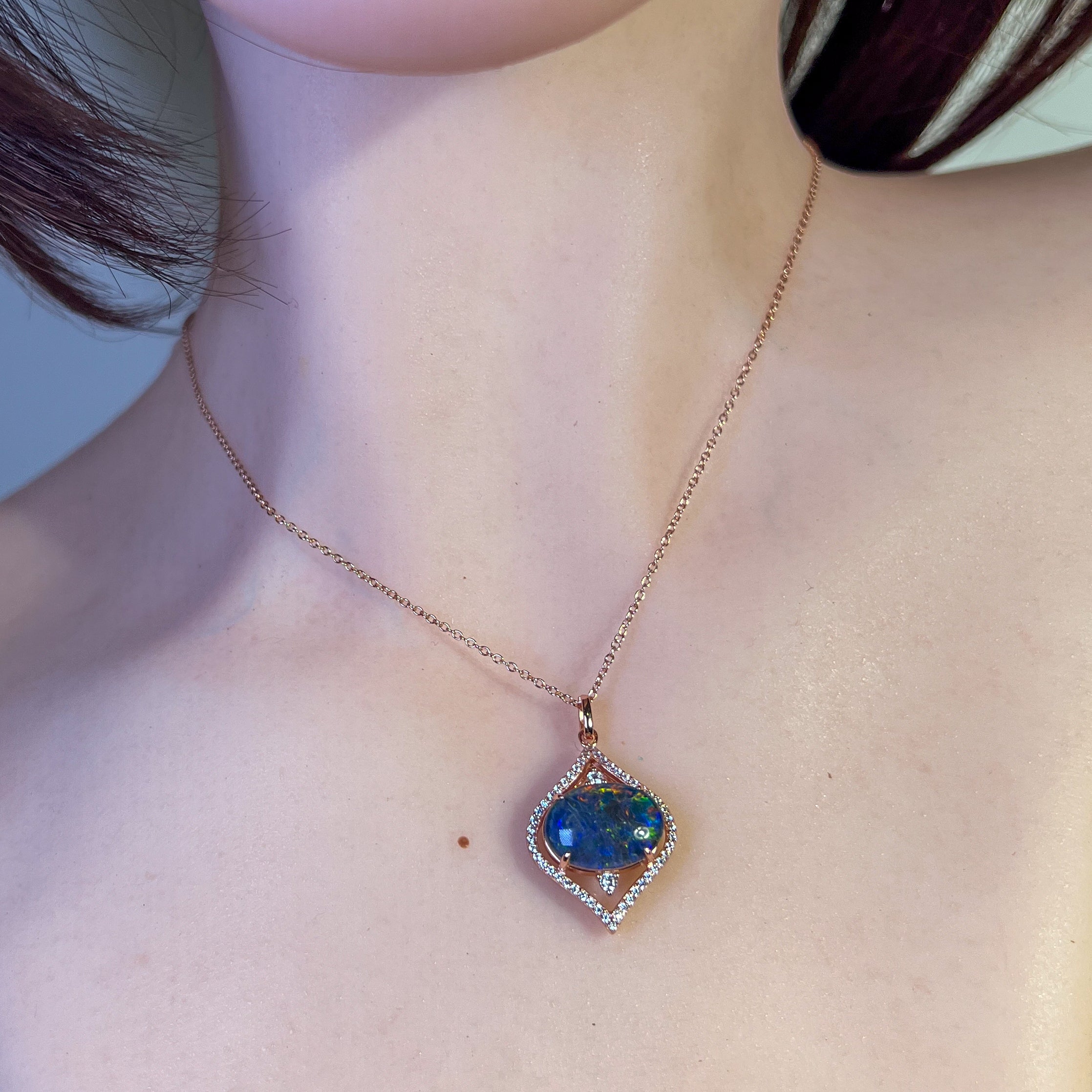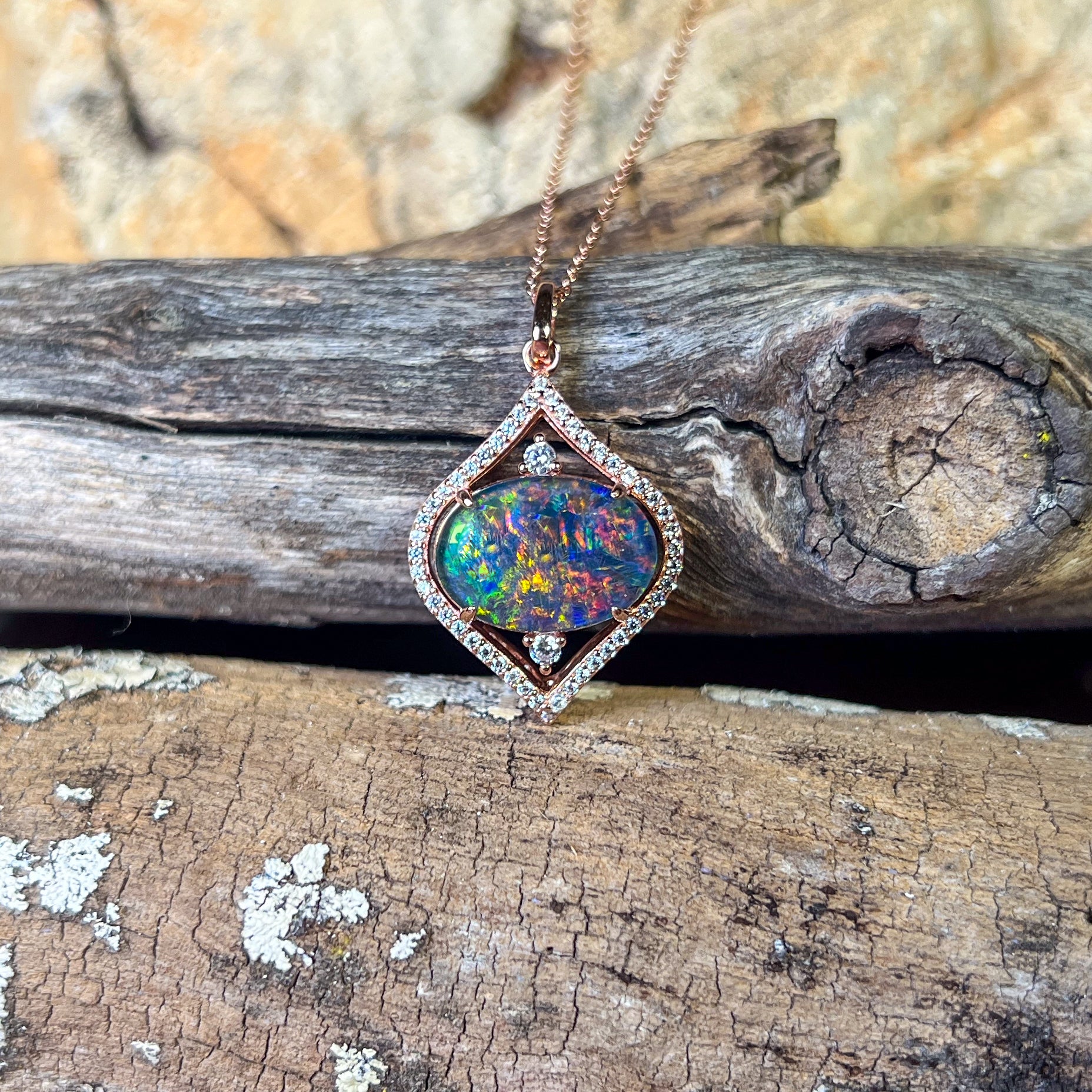 Experience elegance and charm with our Rose Gold Plated Silver Opal Triplet Pendant. Featuring a horizontal design, this pendant radiates sophistication. The 14x10mm Opal triplet adds a touch of glamour. Elevate your style and make a statement with this stunning piece of jewelry.