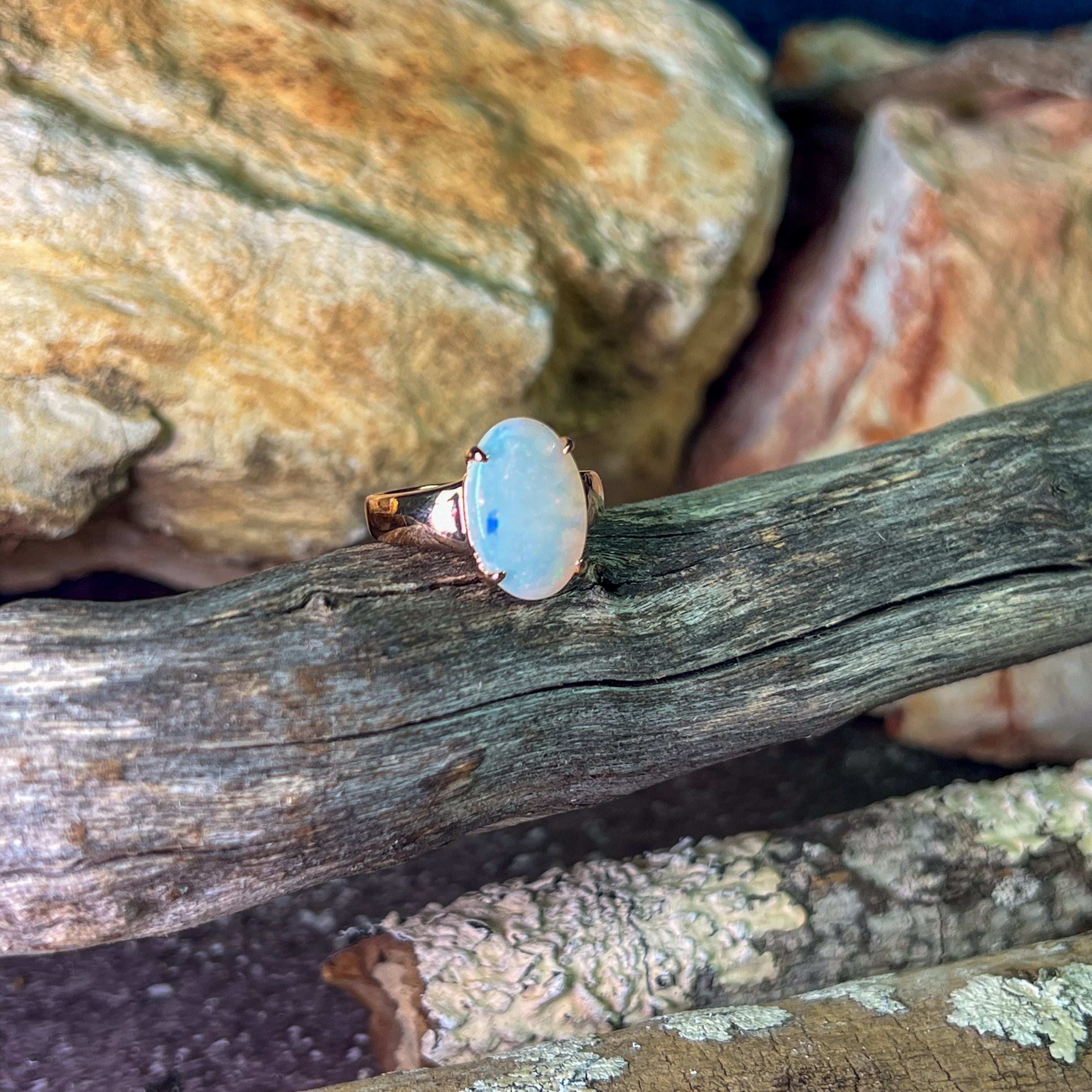 Opals are softer gemstones, rating about 5.5-6.5 on the Mohs scale of hardness. Try to avoid wearing opal jewelry during activities where the stones could be knocked or damaged.