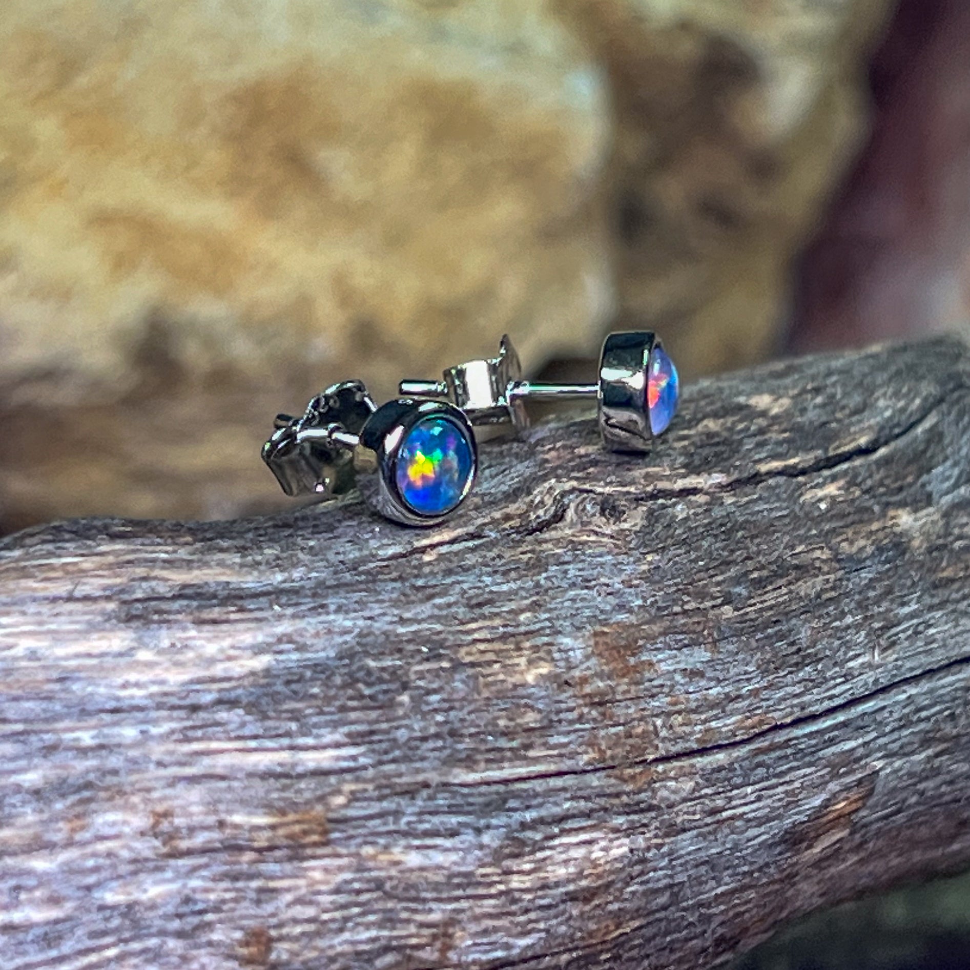 Introducing our quirky and playful Sterling Silver Opal Triplet Bezel Studs! With a classic design and 4mm size, these dazzling earrings are sure to add a touch of whimsy to any outfit. Plus, the opal triplets provide a unique and eye-catching look. Get ready to amp up your style game with these studs!