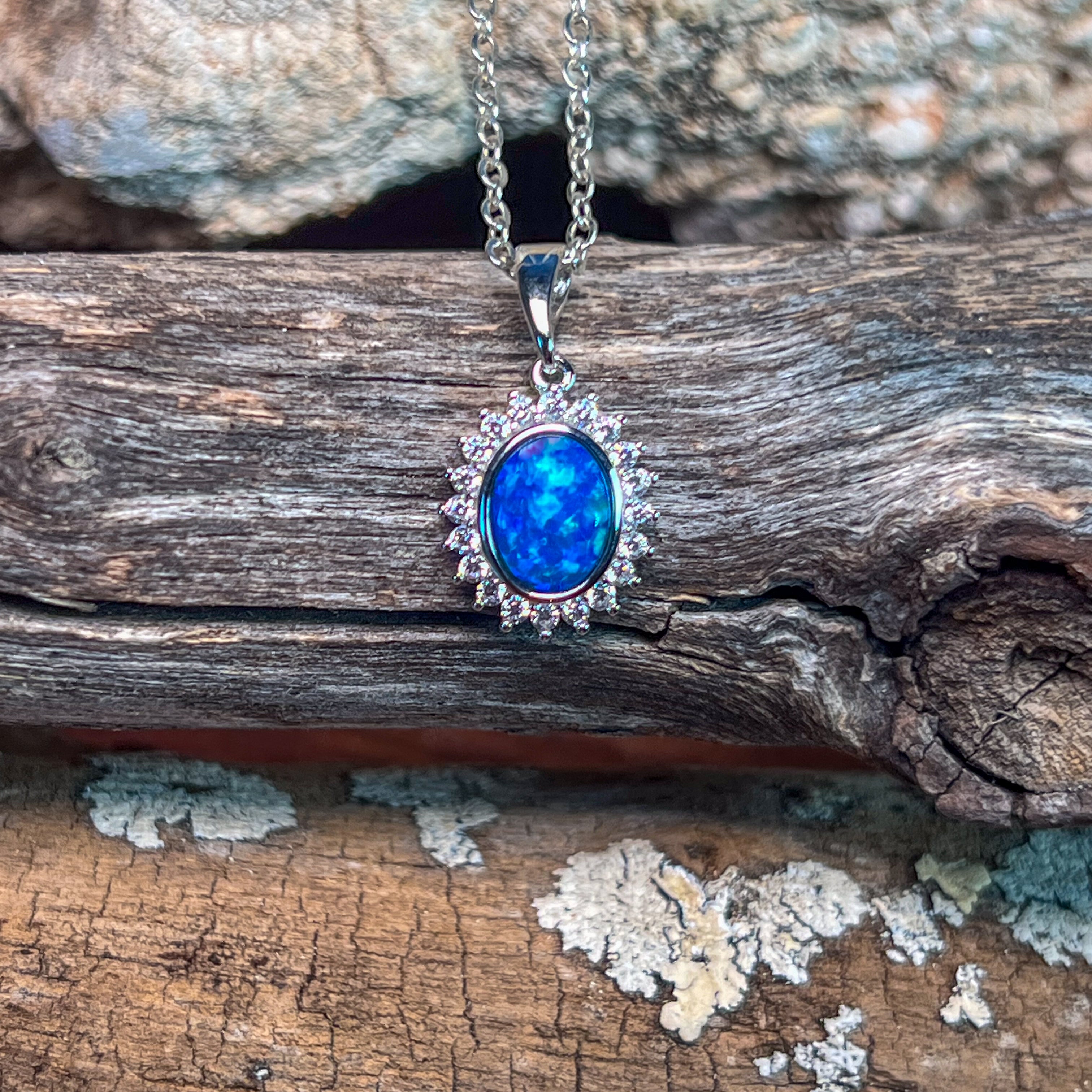 Elevate your elegance with this sterling silver pendant featuring a captivating black opal doublet framed by a delicate blue colour halo. Its classic dainty design offers timeless style perfect for daily wear or special occasions, while the vibrant opal glow adds a unique touch of sophistication to any outfit.