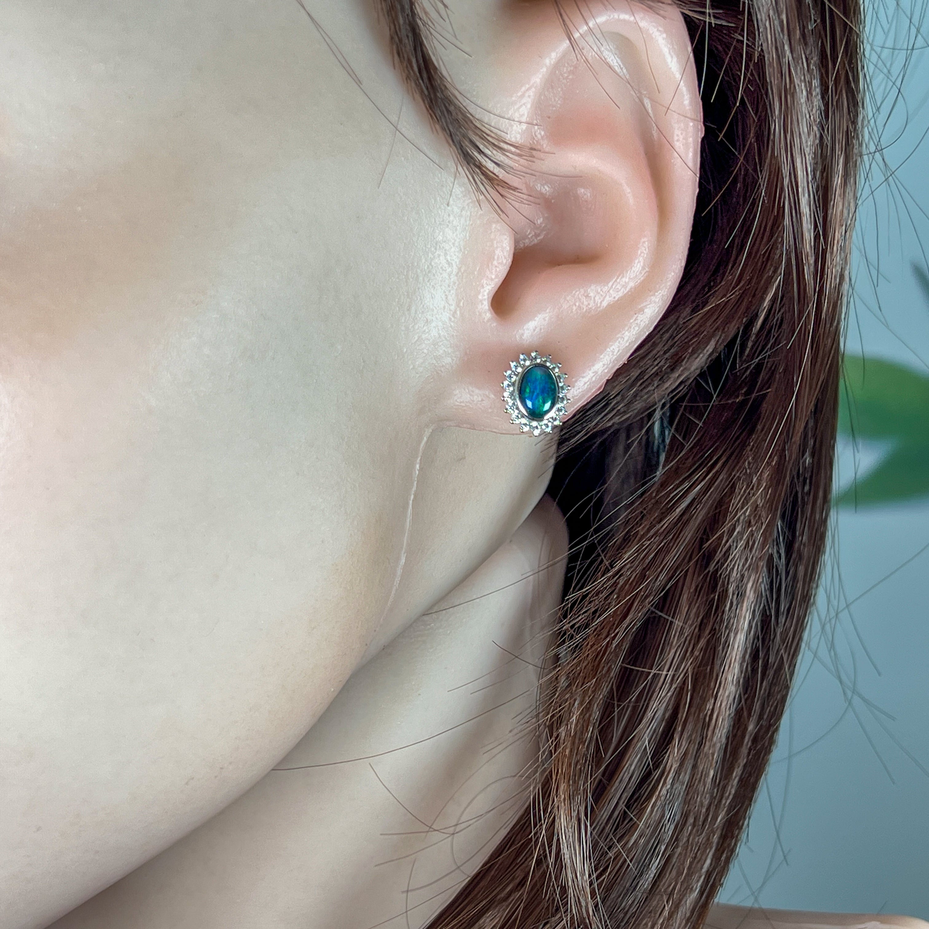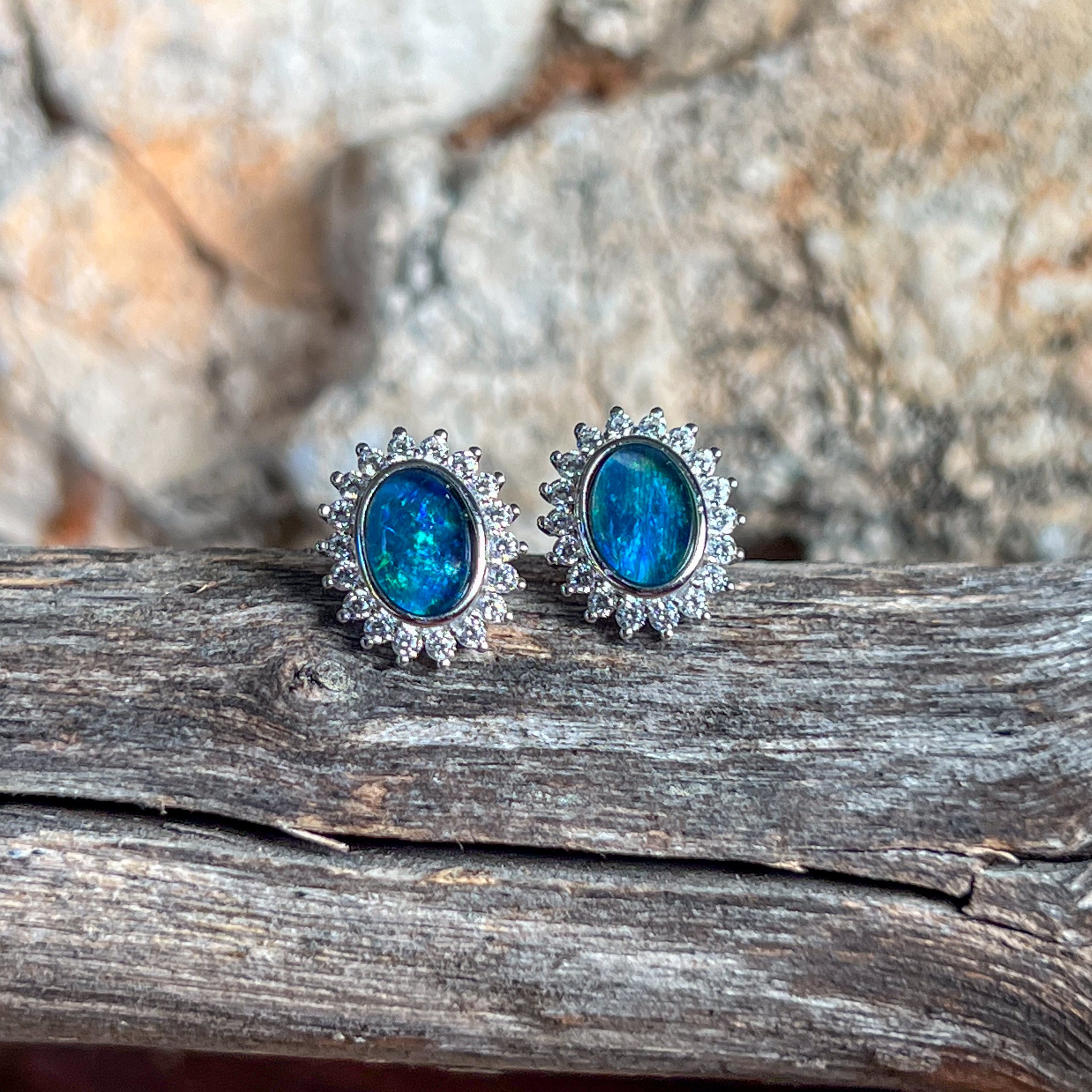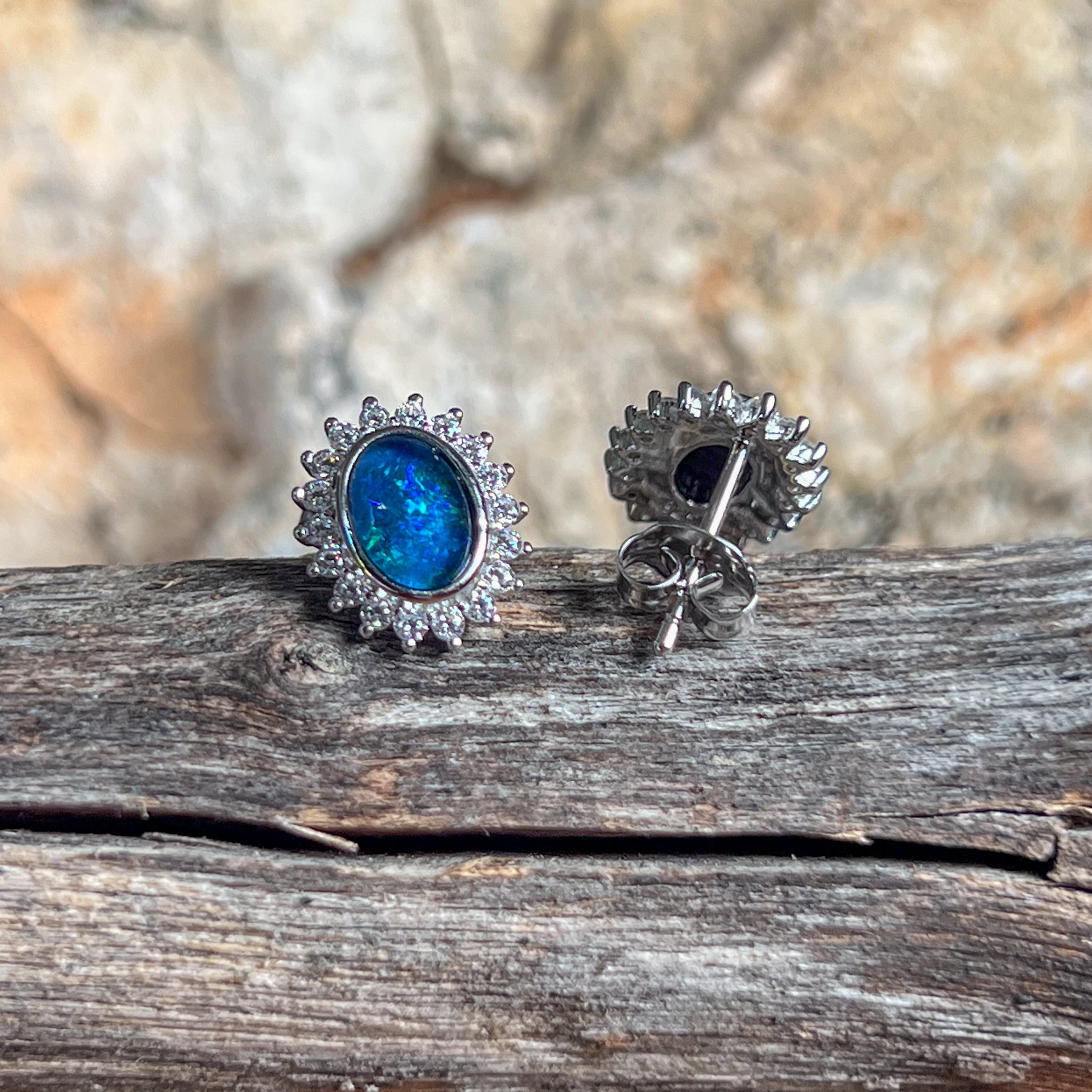 Sterling Silver cluster stud Opal triplet 7x5mm bezel style earrings