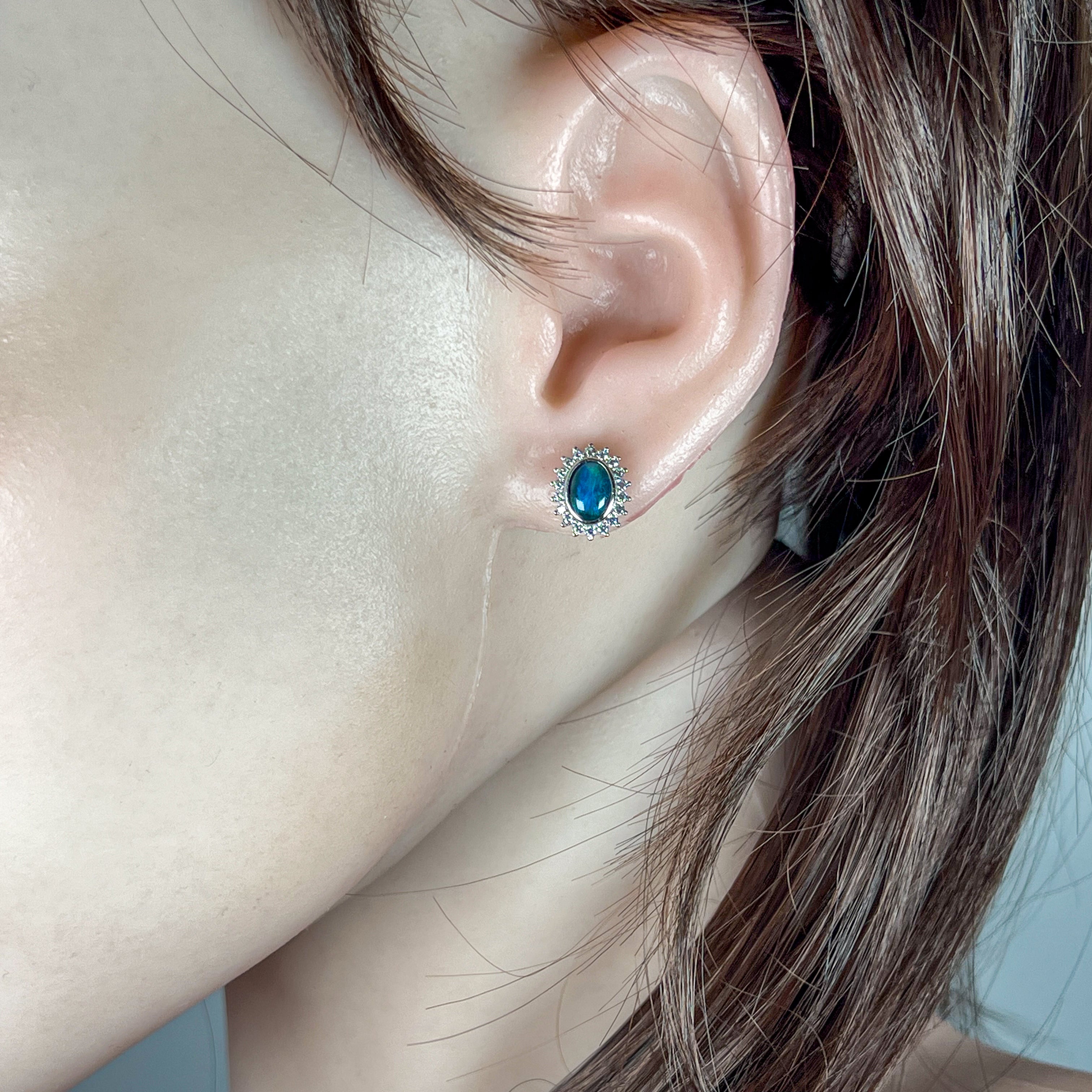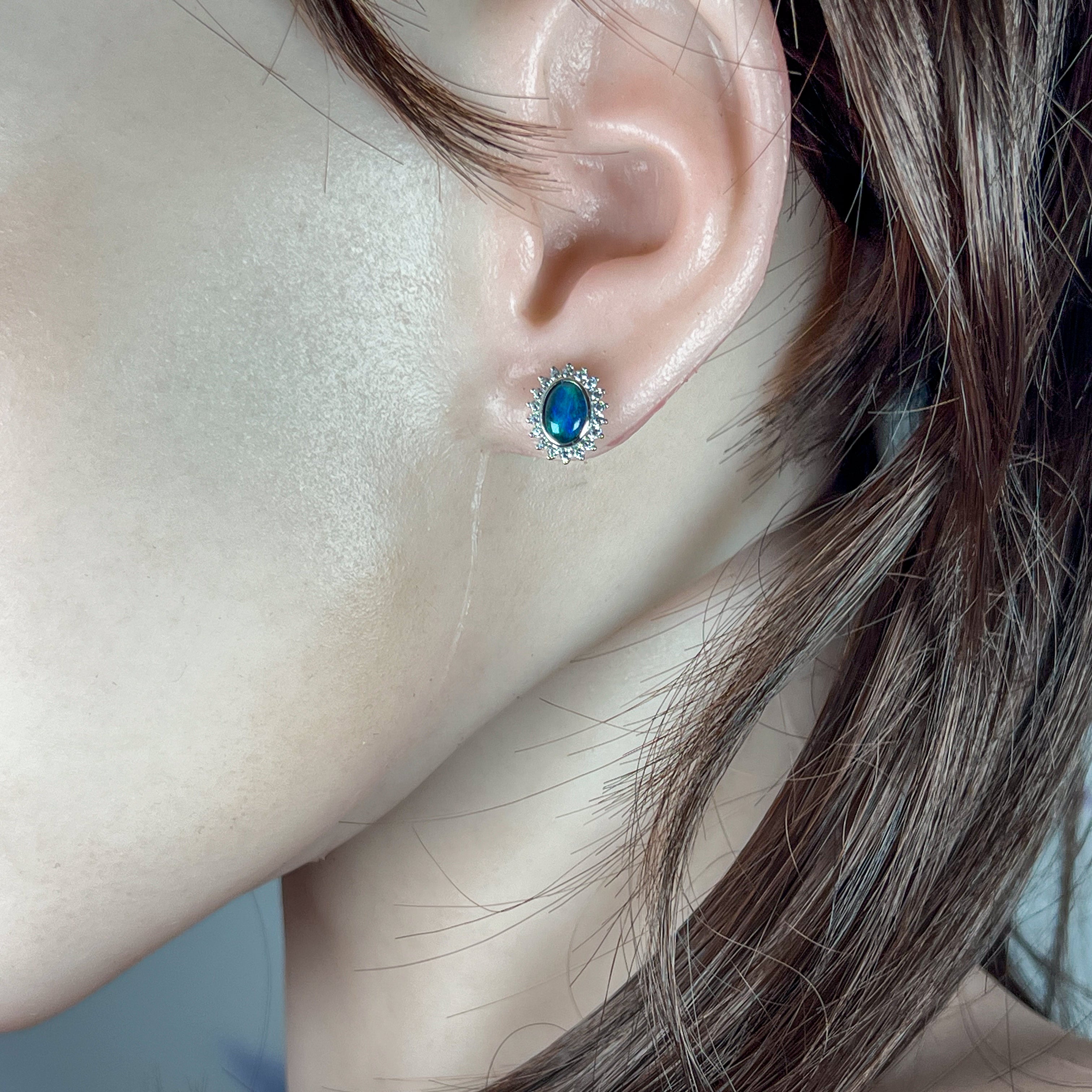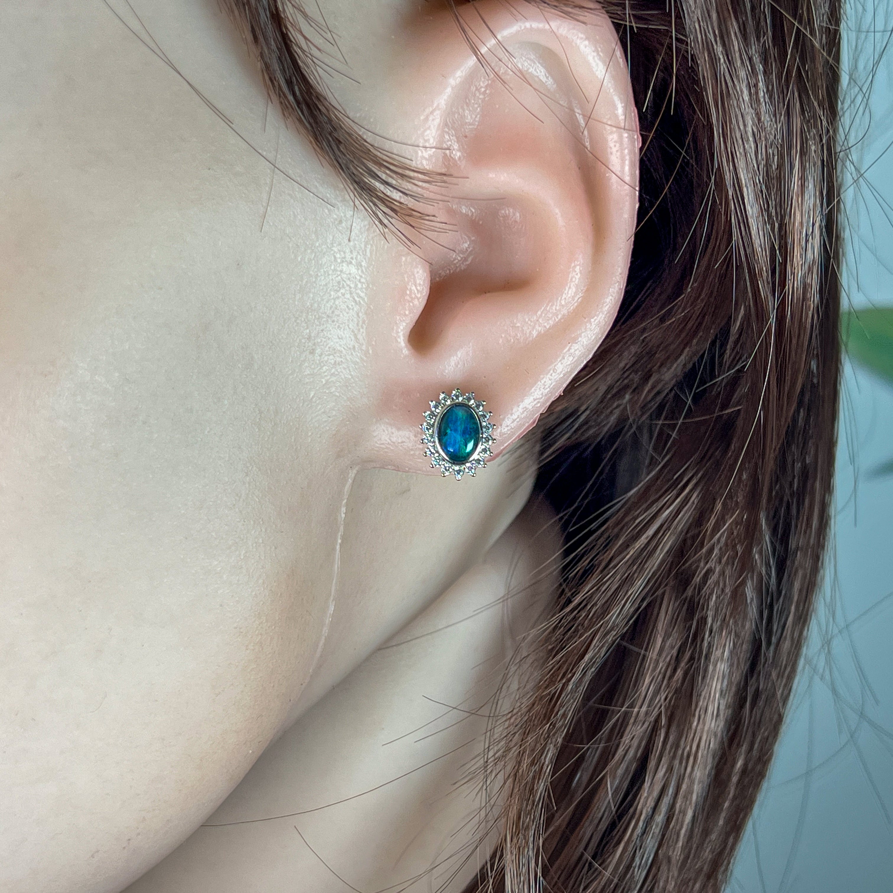 Sterling Silver cluster stud Opal triplet 7x5mm bezel style earrings