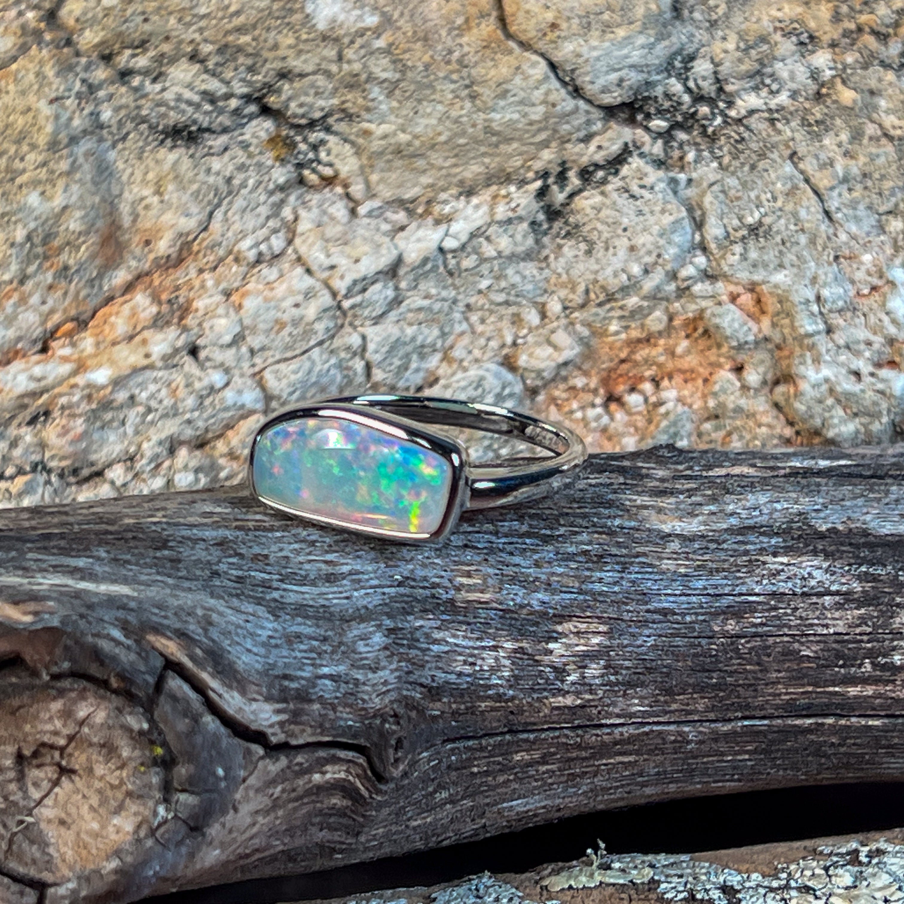 Elevate your everyday sparkle with this sleek sterling silver ring featuring a stunning 1.59ct crystal opal in a contemporary bezel setting. The minimalist design lets your opal take centre stage—no fuss, just pure gemstone magic. Perfect for stacking, layering, or making a solo statement, this modern beauty slides seamlessly from casual coffee runs to evening adventures. Lightweight, wearable, and undeniably chic.