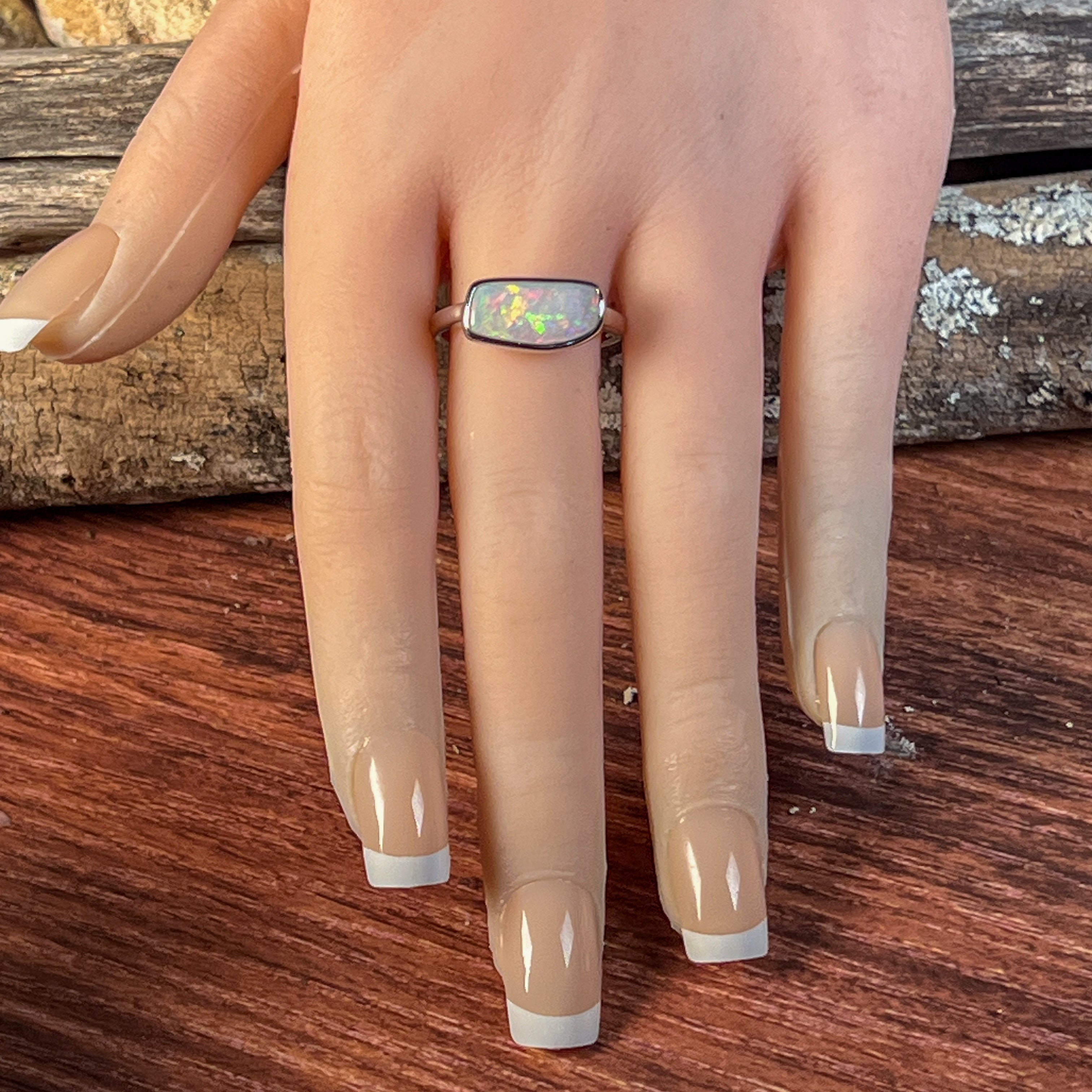 Sterling Silver Crystal Opal 1.59ct bezel set ring