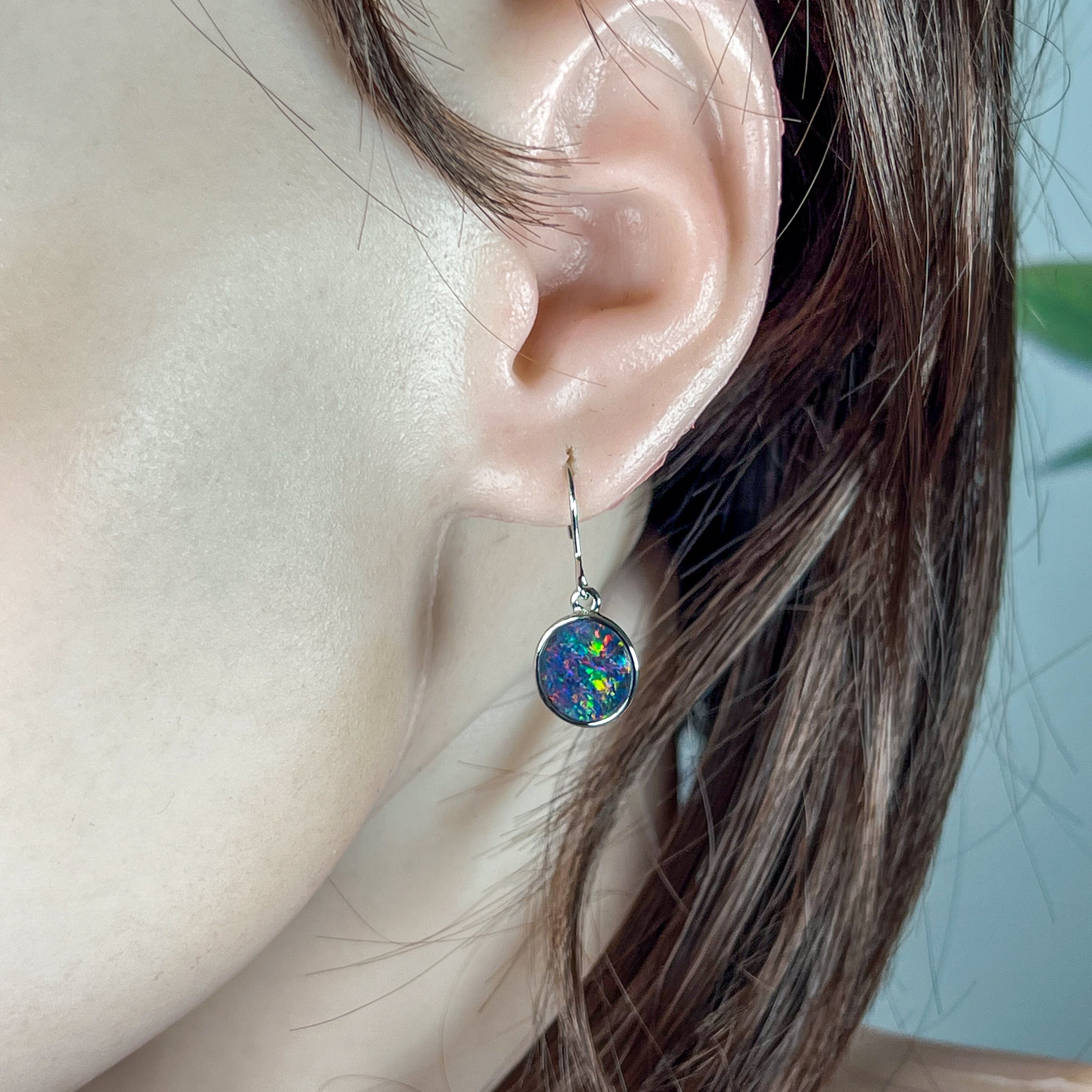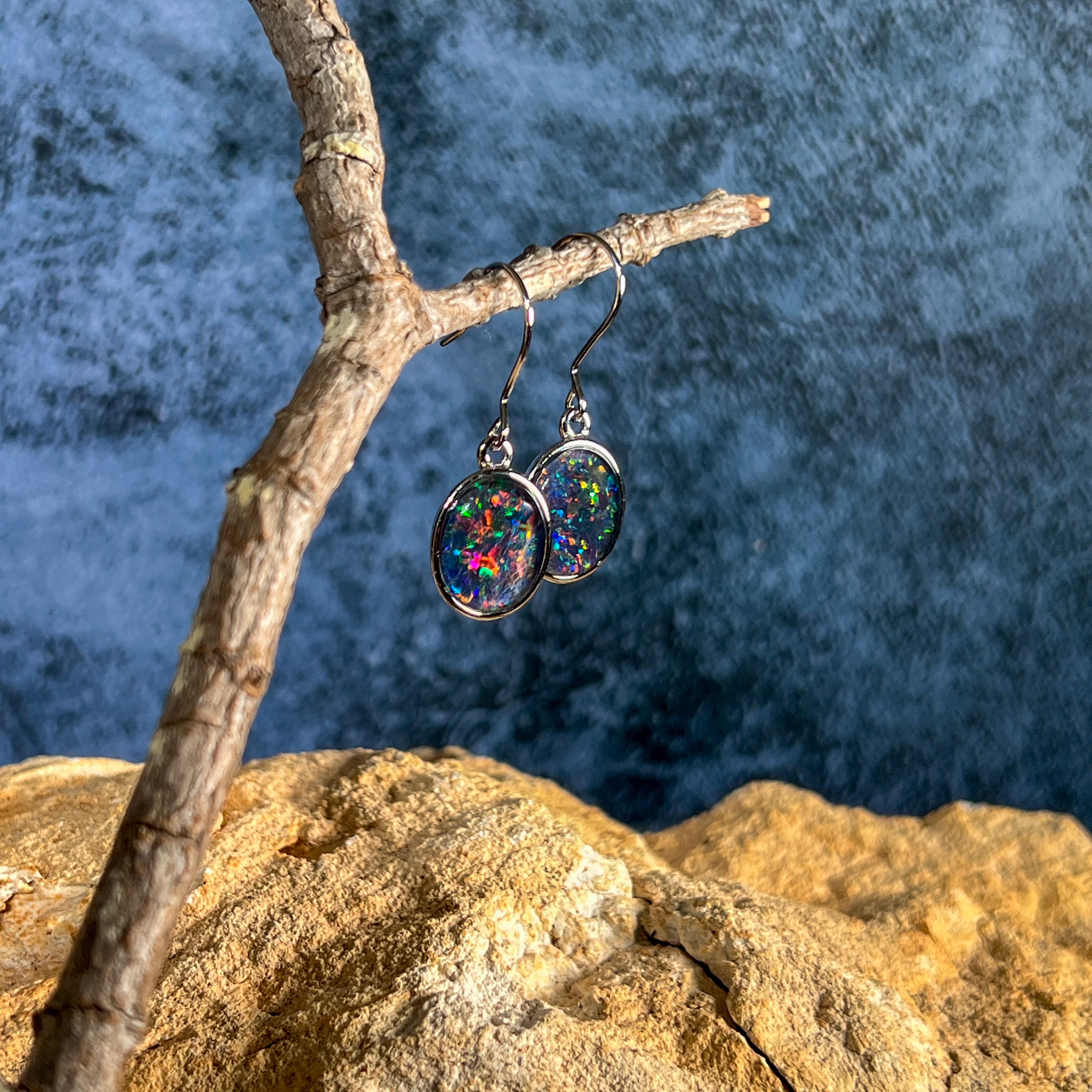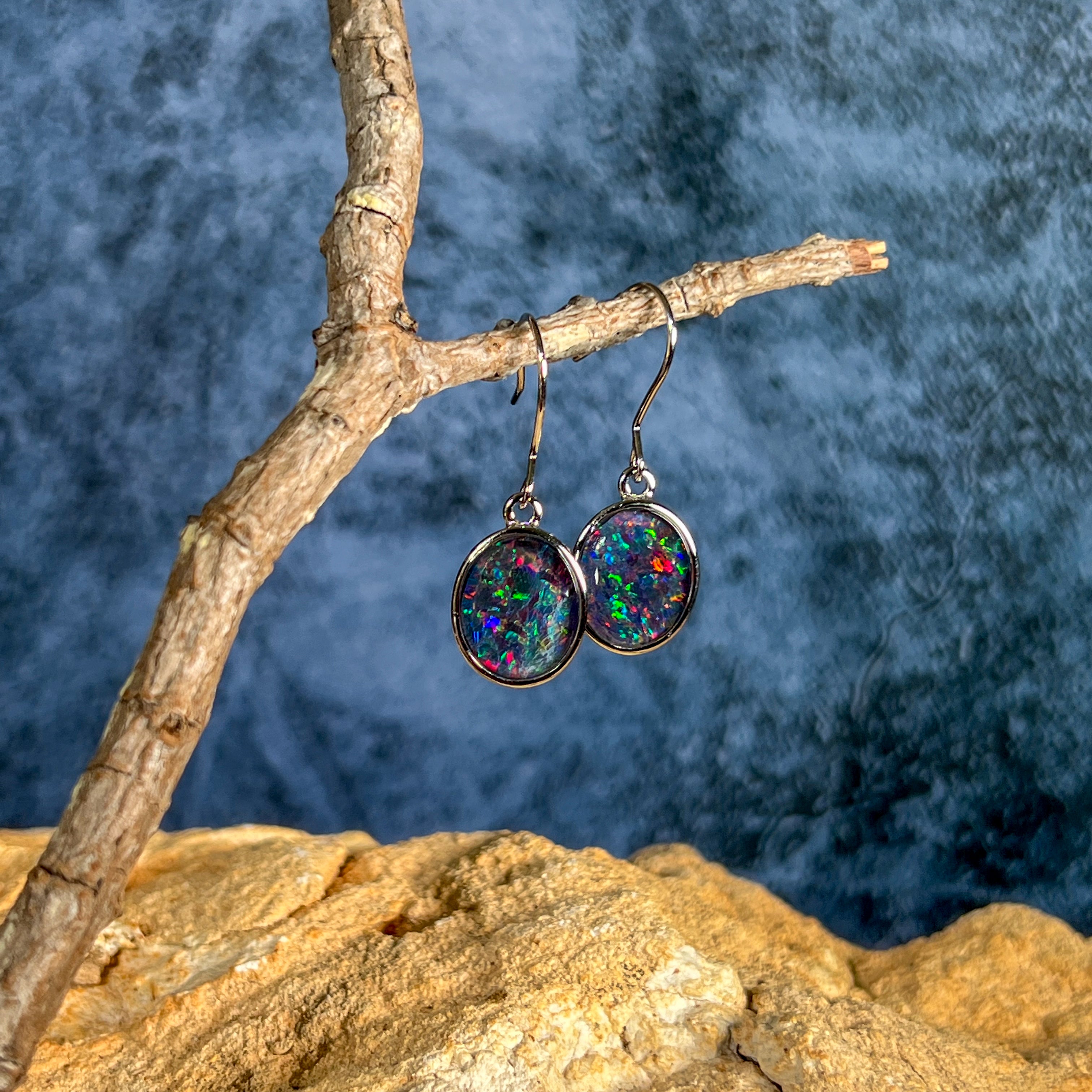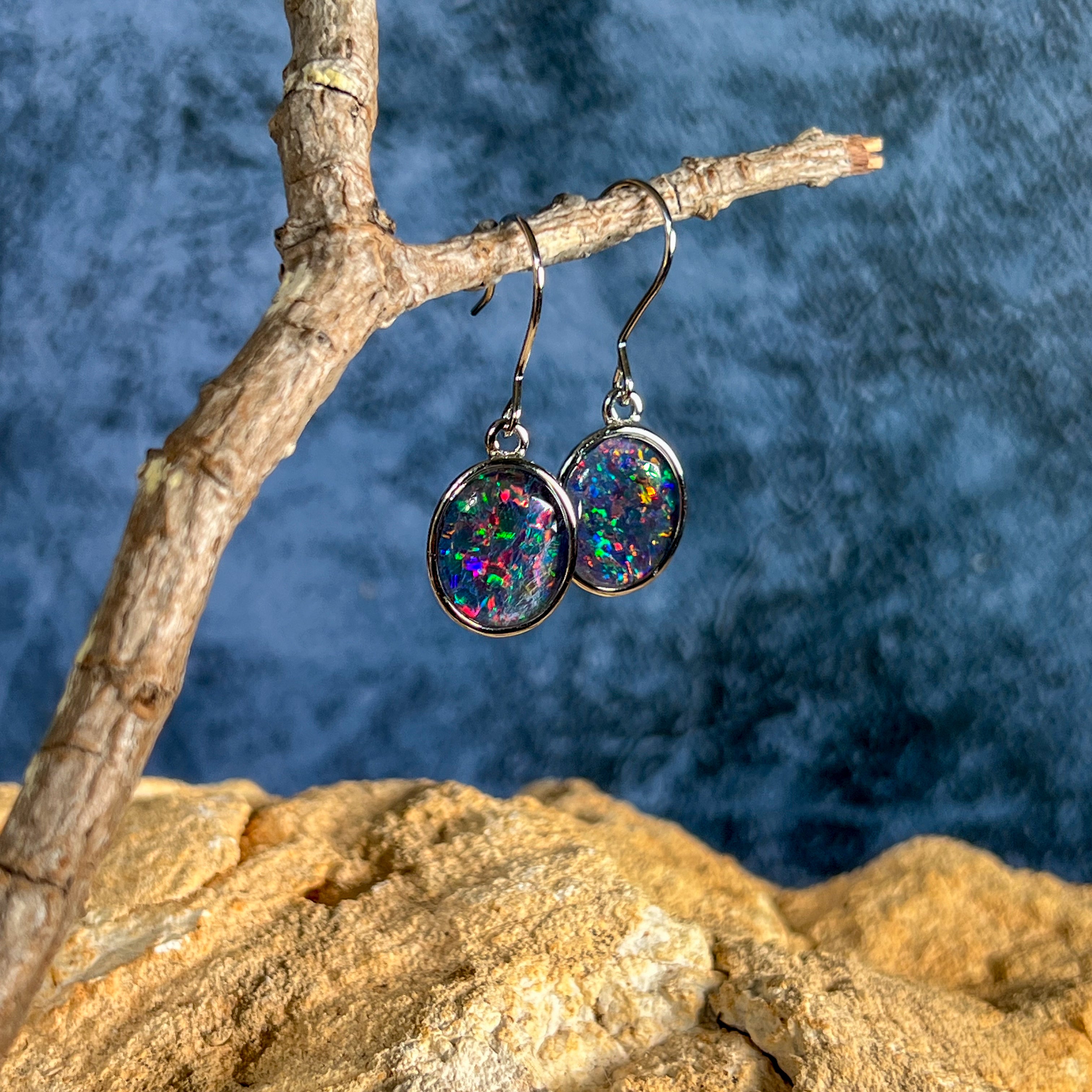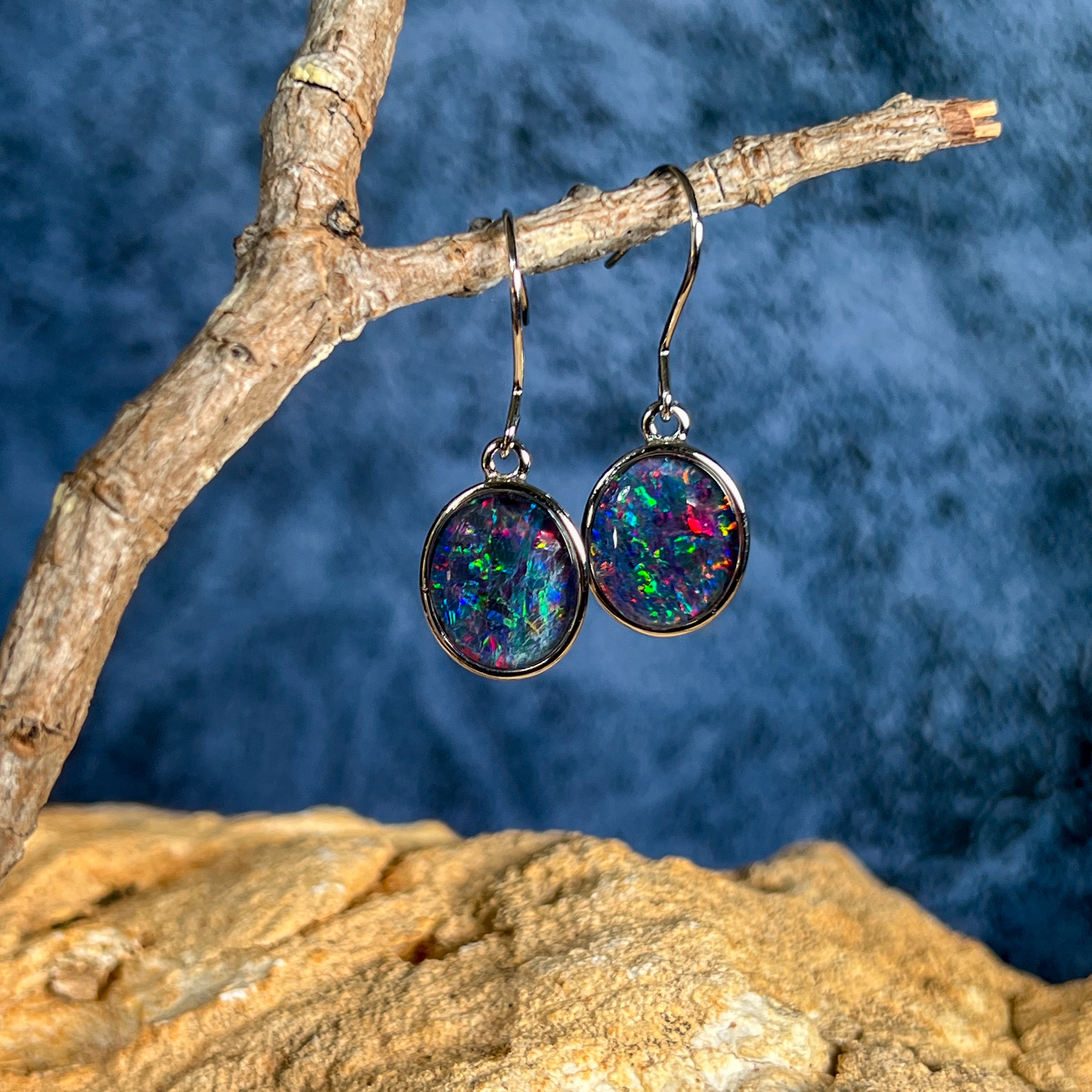 Sterling Silver dangling 12x10mm Opal Triplet bezel set earrings hooks