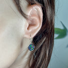 Elevate your style with these Sterling Silver dangling earrings featuring 12x10mm Opal Triplet stones bezel set for secure elegance. Their modern design adds a graceful movement to your look, while the iridescent opals catch the light beautifully. Perfect for adding a sophisticated touch to both everyday wear and special occasions.
