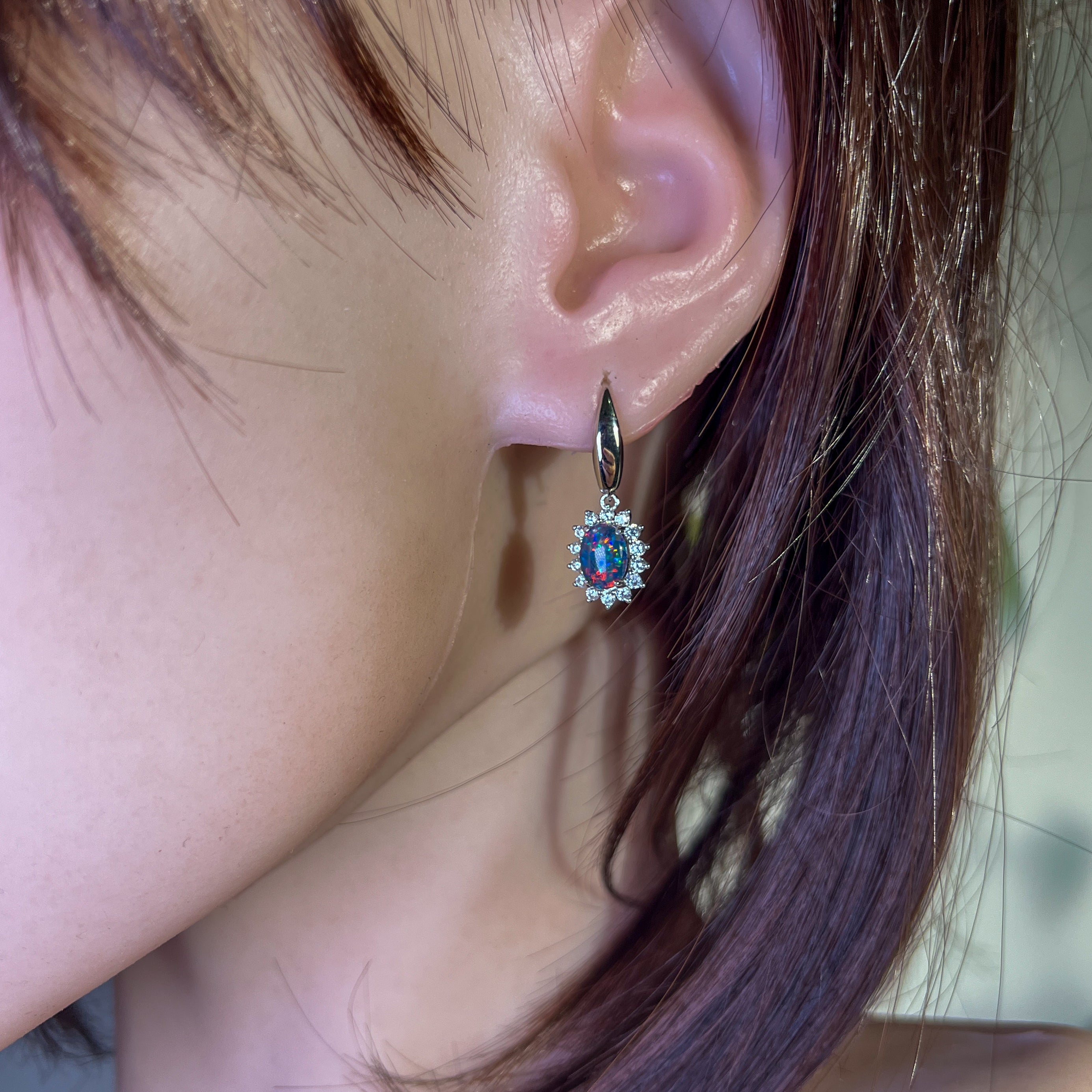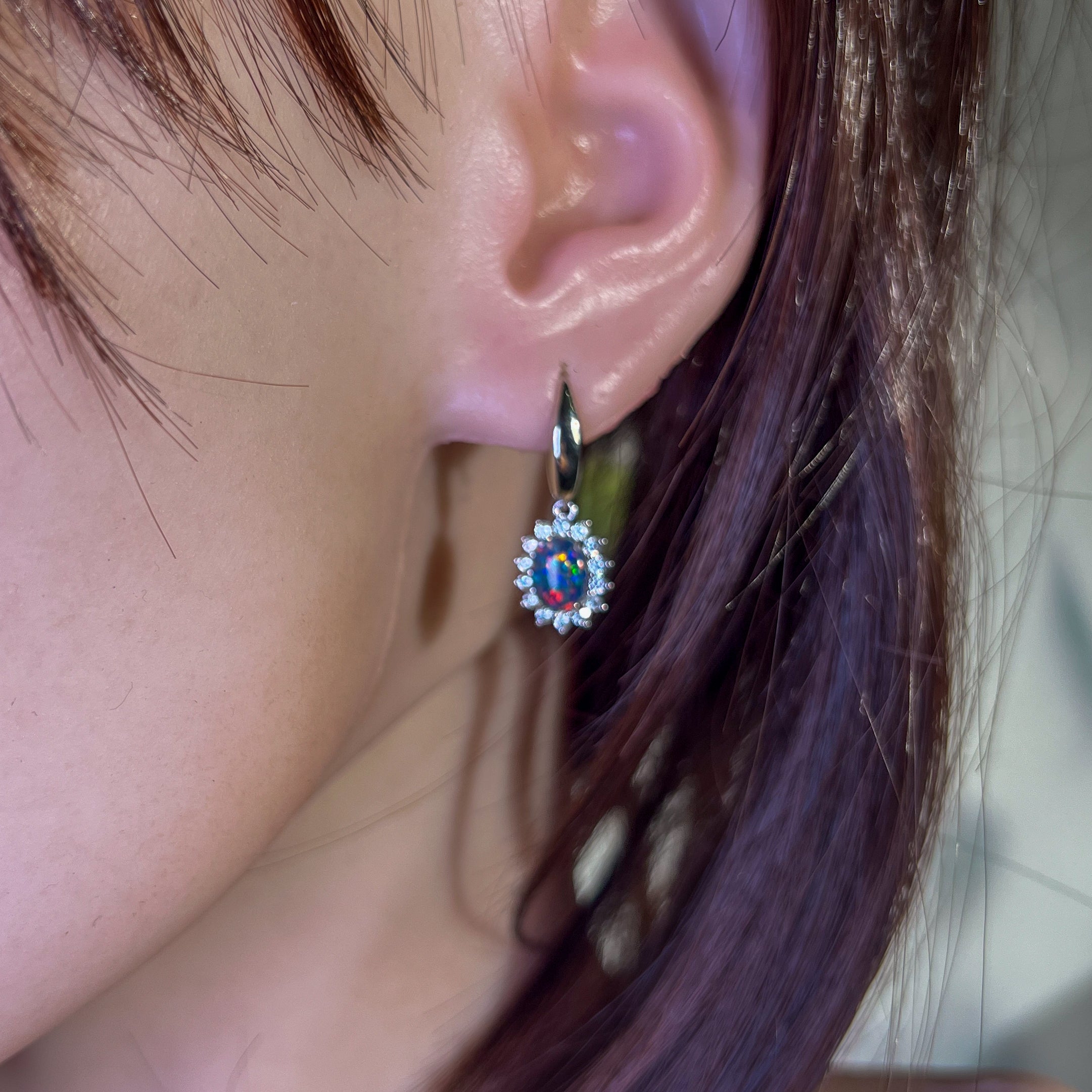 Sterling Silver dangling Hook style cluster Opal triplet earrings