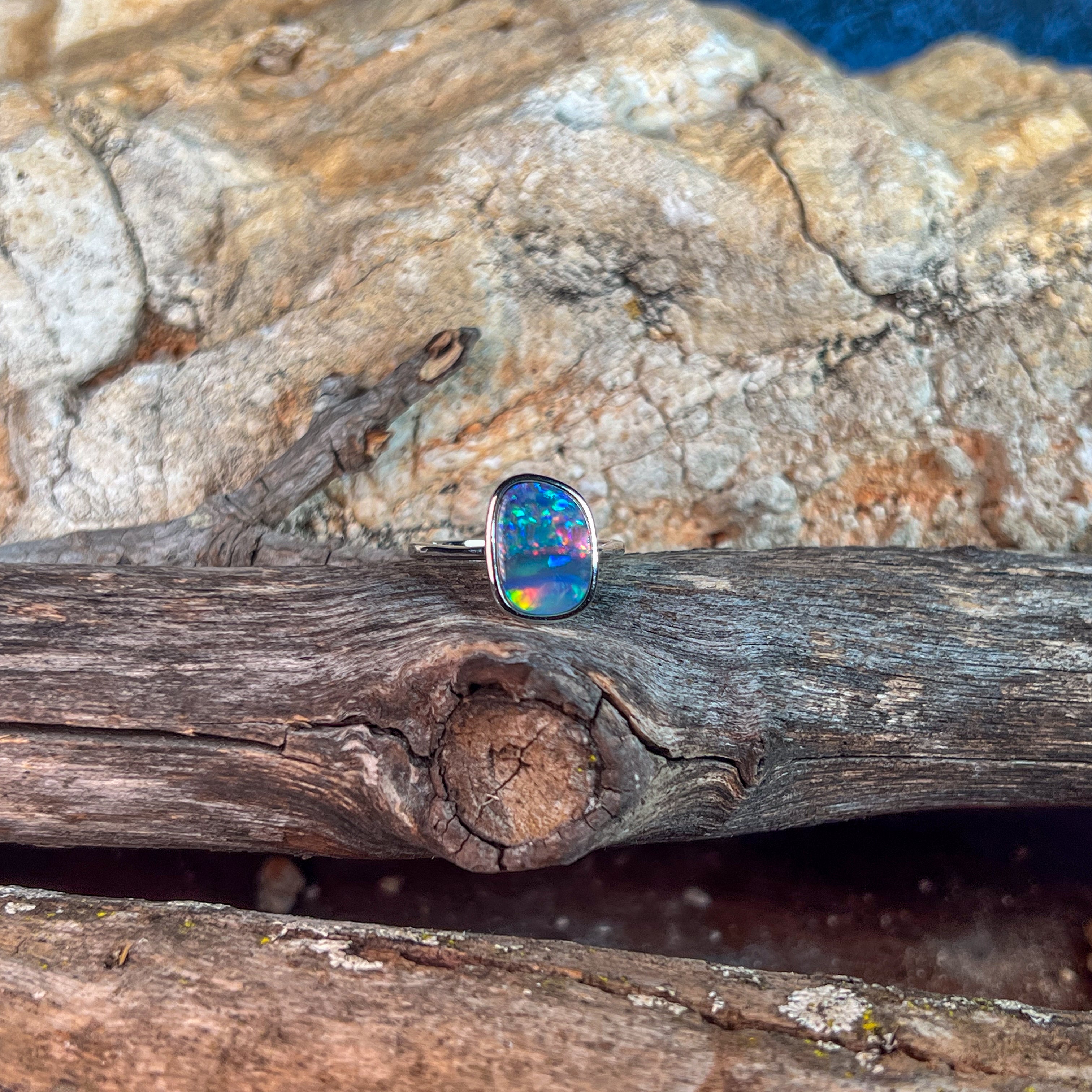 Sterling Silver Freeform Opal doublet 11.5x8mm solitaire ring