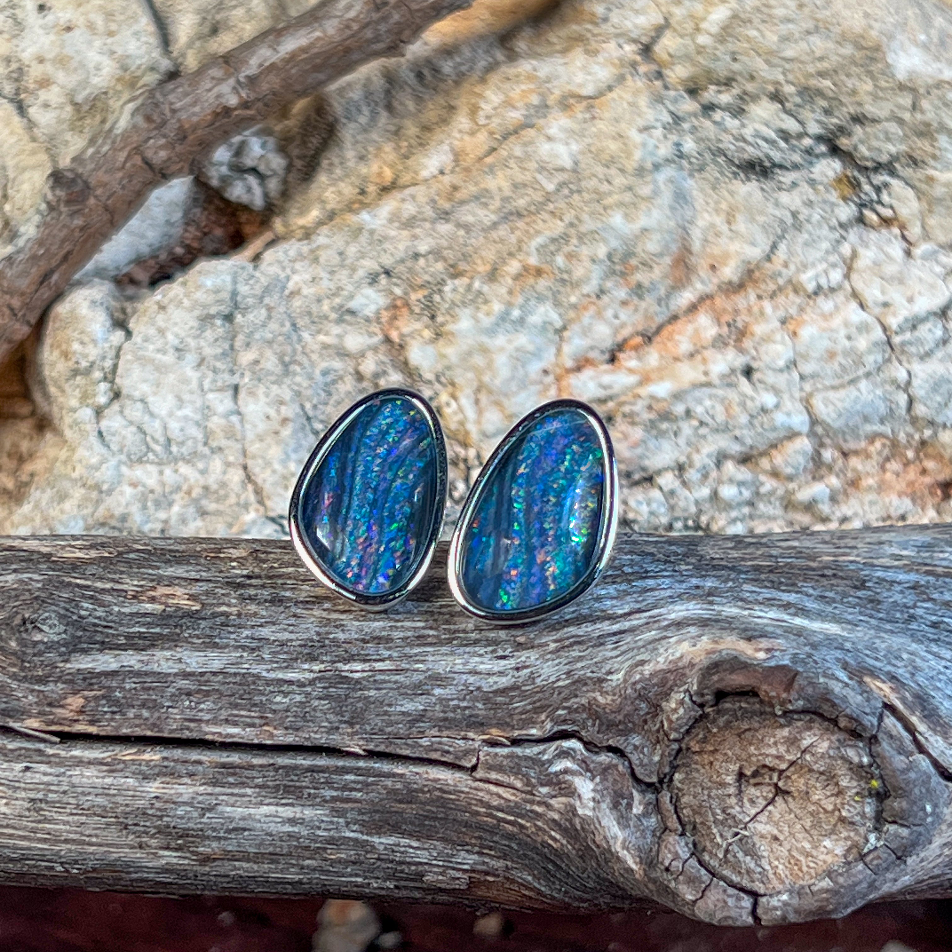 Sterling Silver freeform shape Red Blue Opal triplet studs