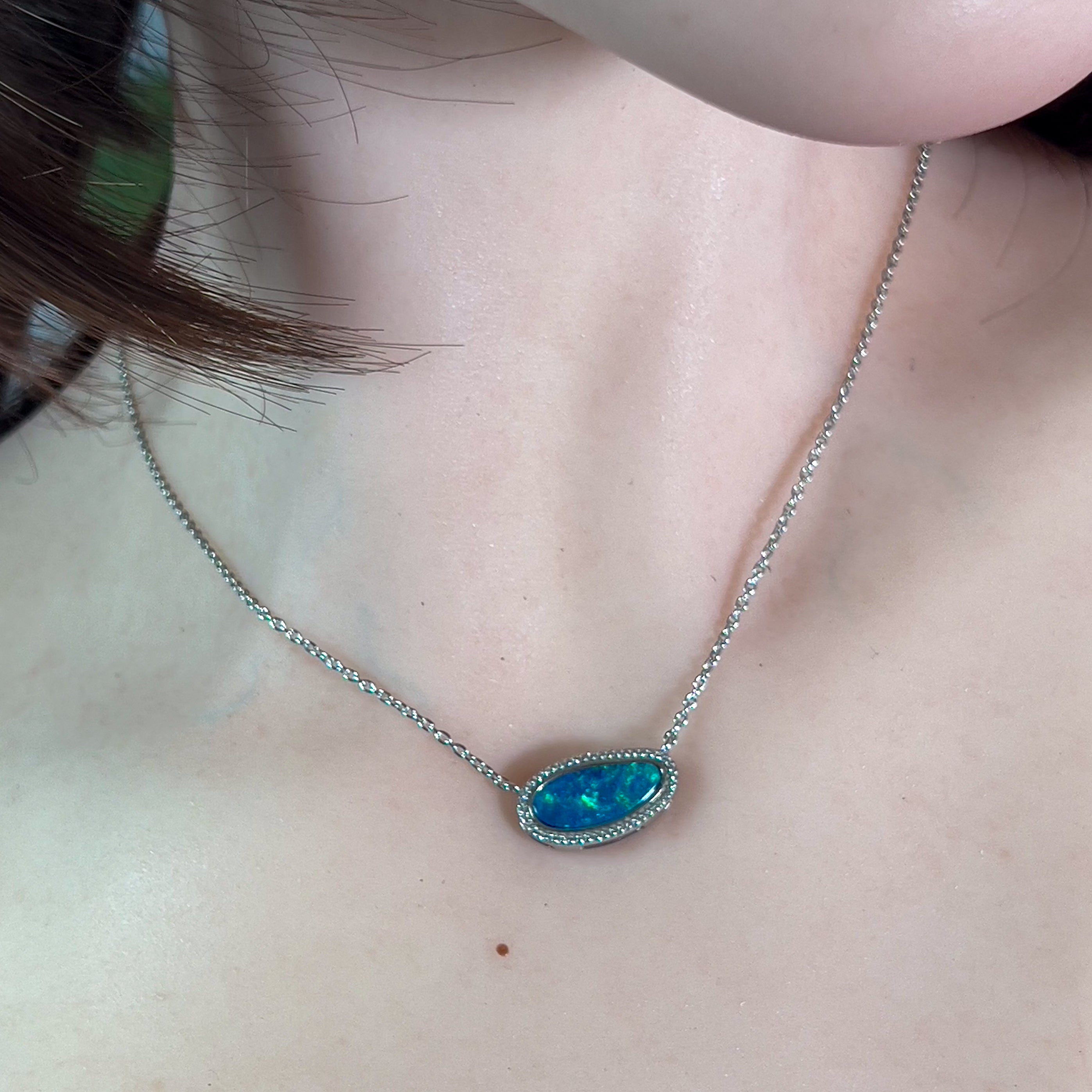 Add a pop of color with this Sterling Silver Halo style Opal doublet necklace! The unique halo design surrounds a stunning blue-green opal, making it a versatile piece for any occasion. Shine bright with this playful and elegant necklace.