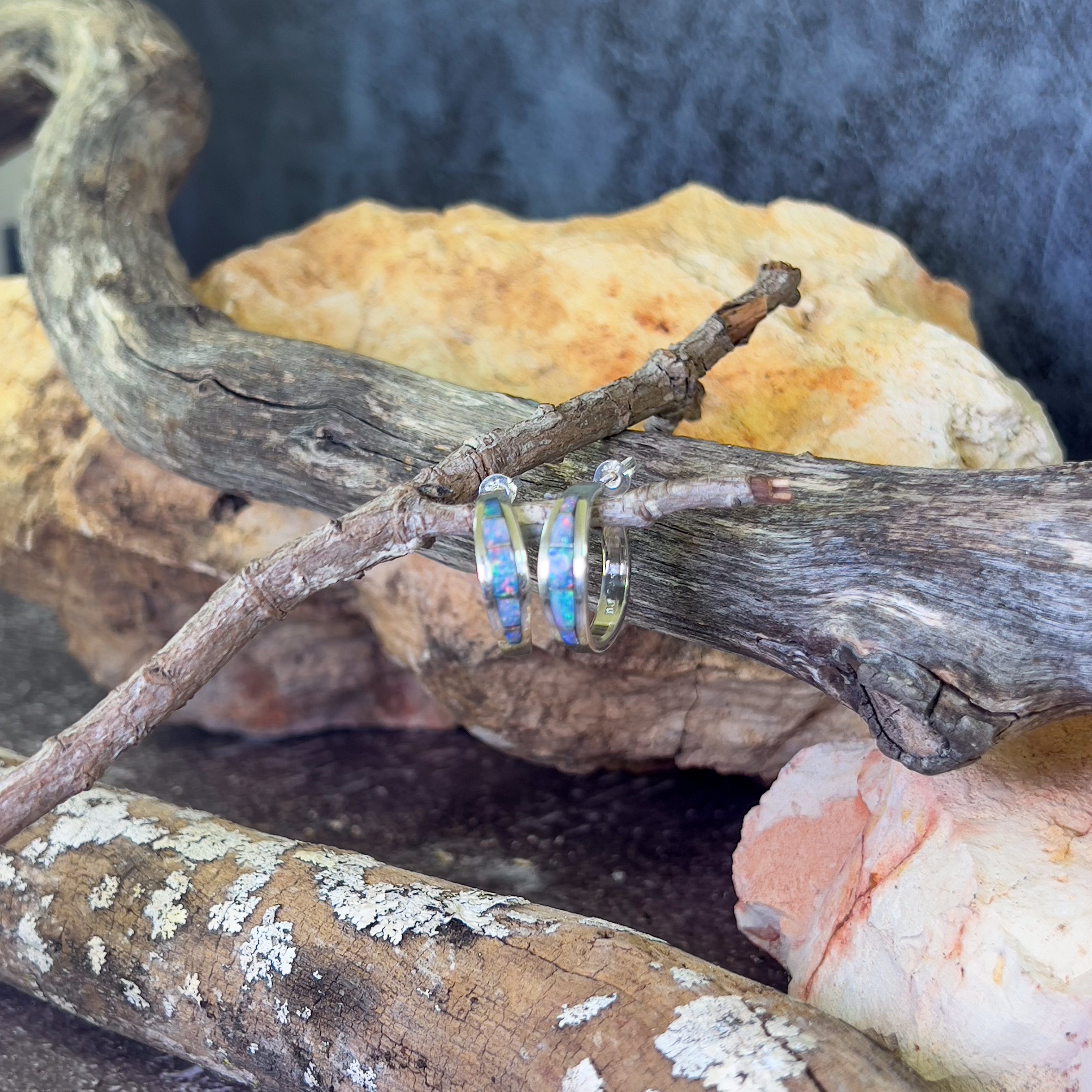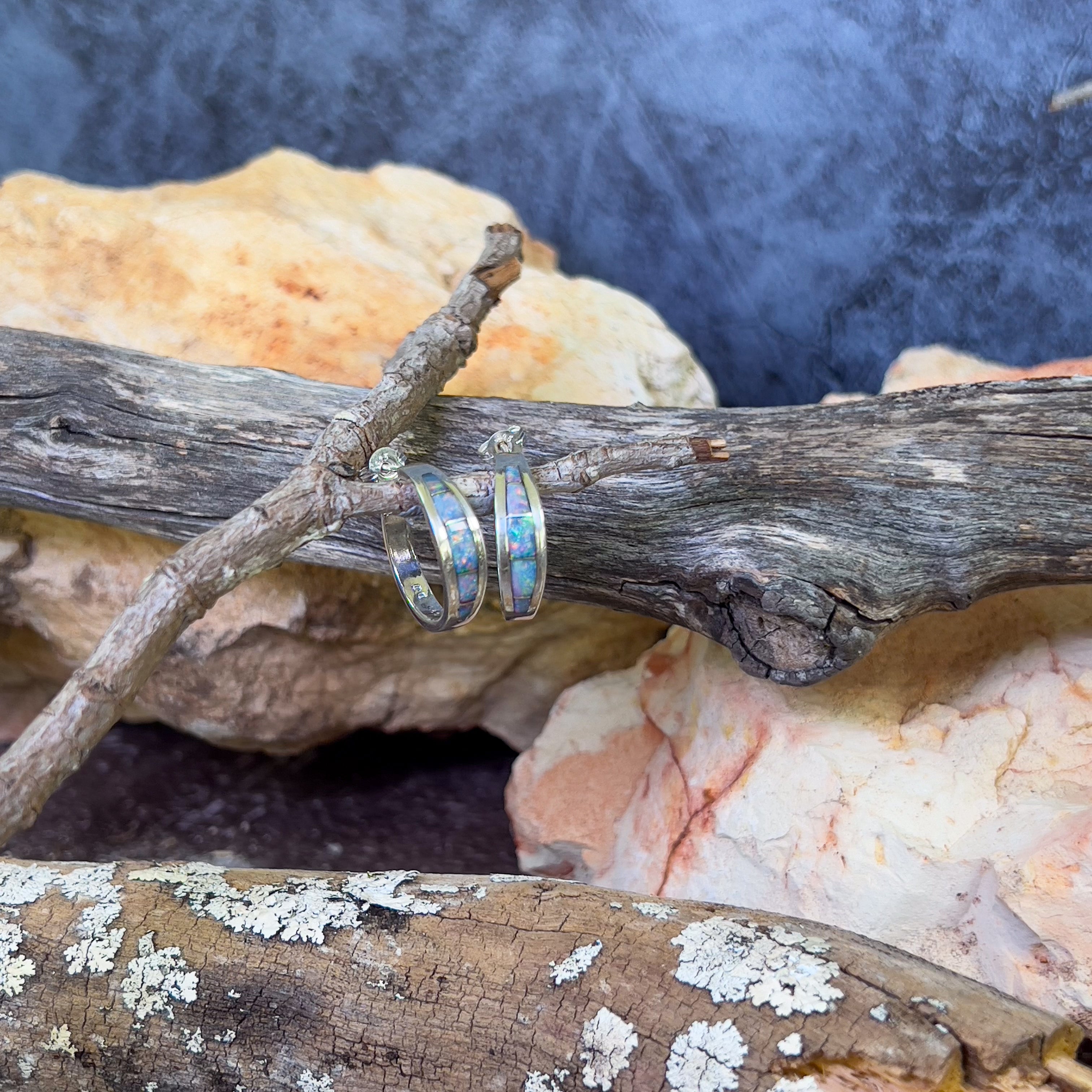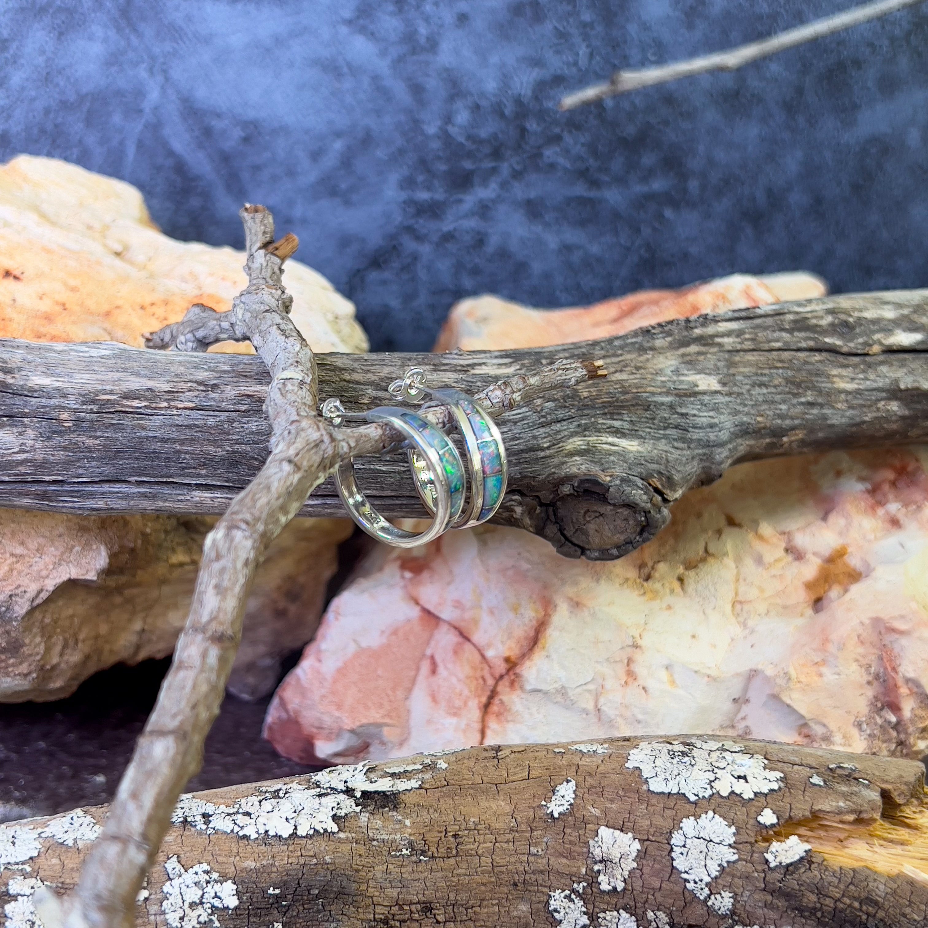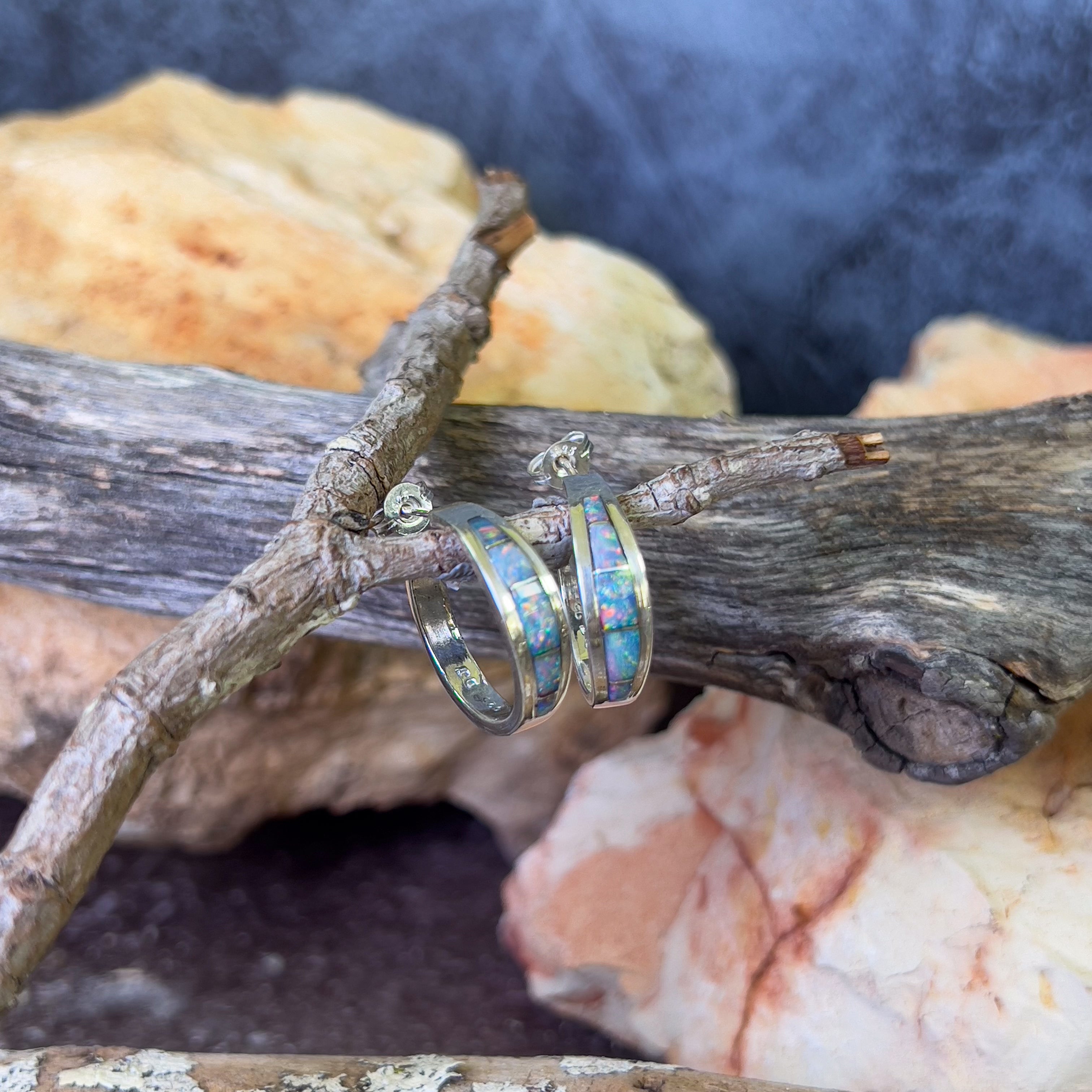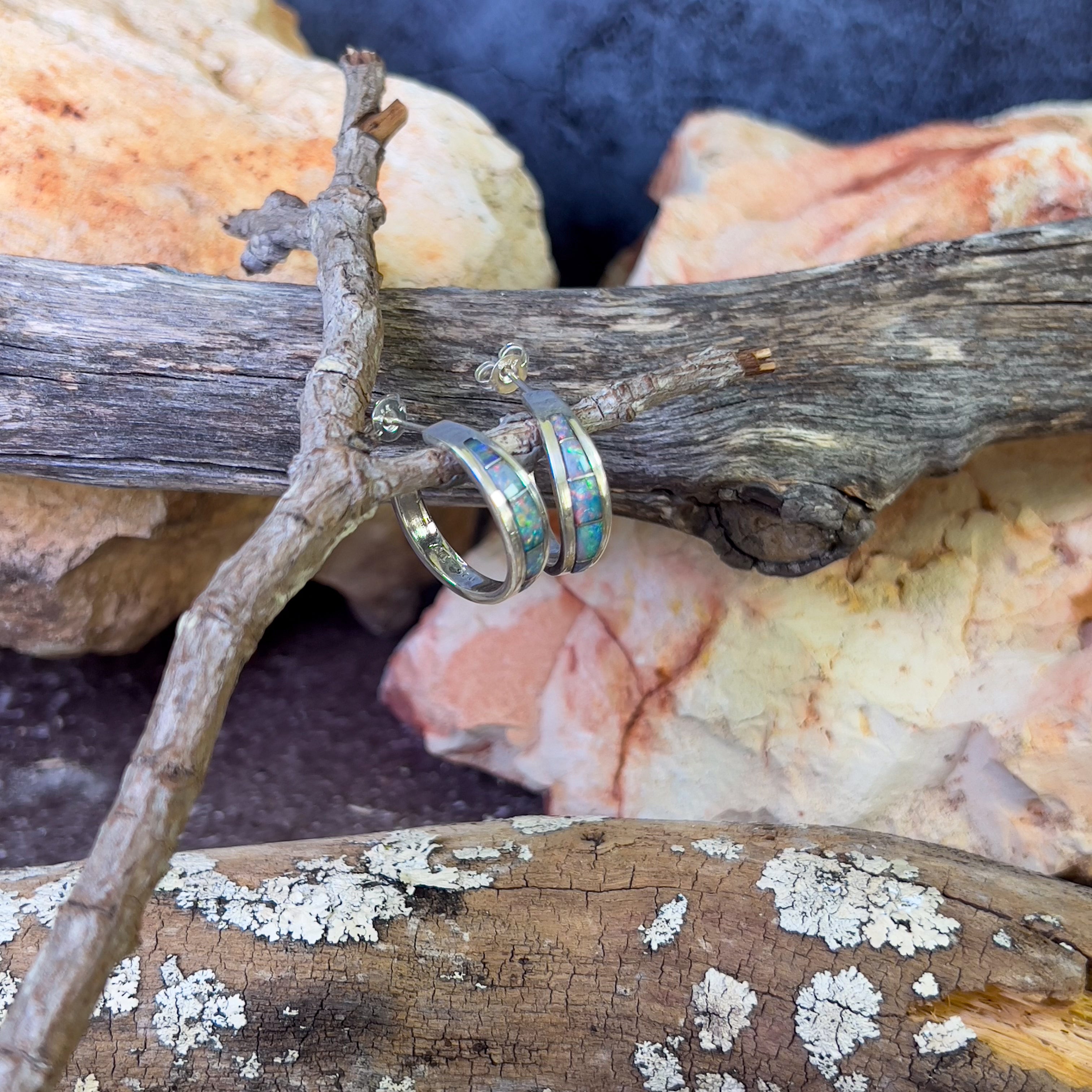Add some sparkle and elegance to your look with our Sterling Silver Hoop style Opal inlay earrings. These hoop style studs feature shimmering opal inlays, making them the perfect accessory for any occasion. Upgrade your style game with this must-have jewelry piece.