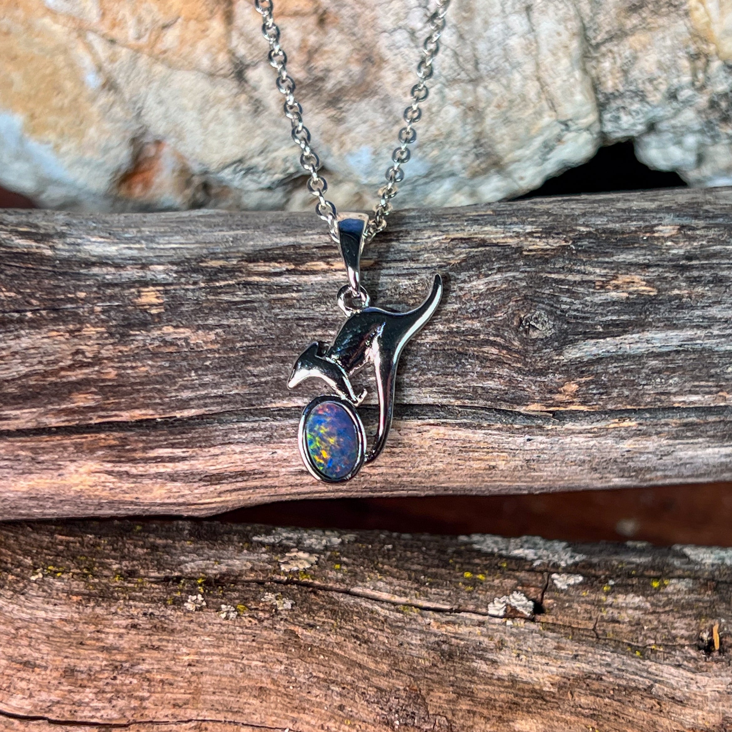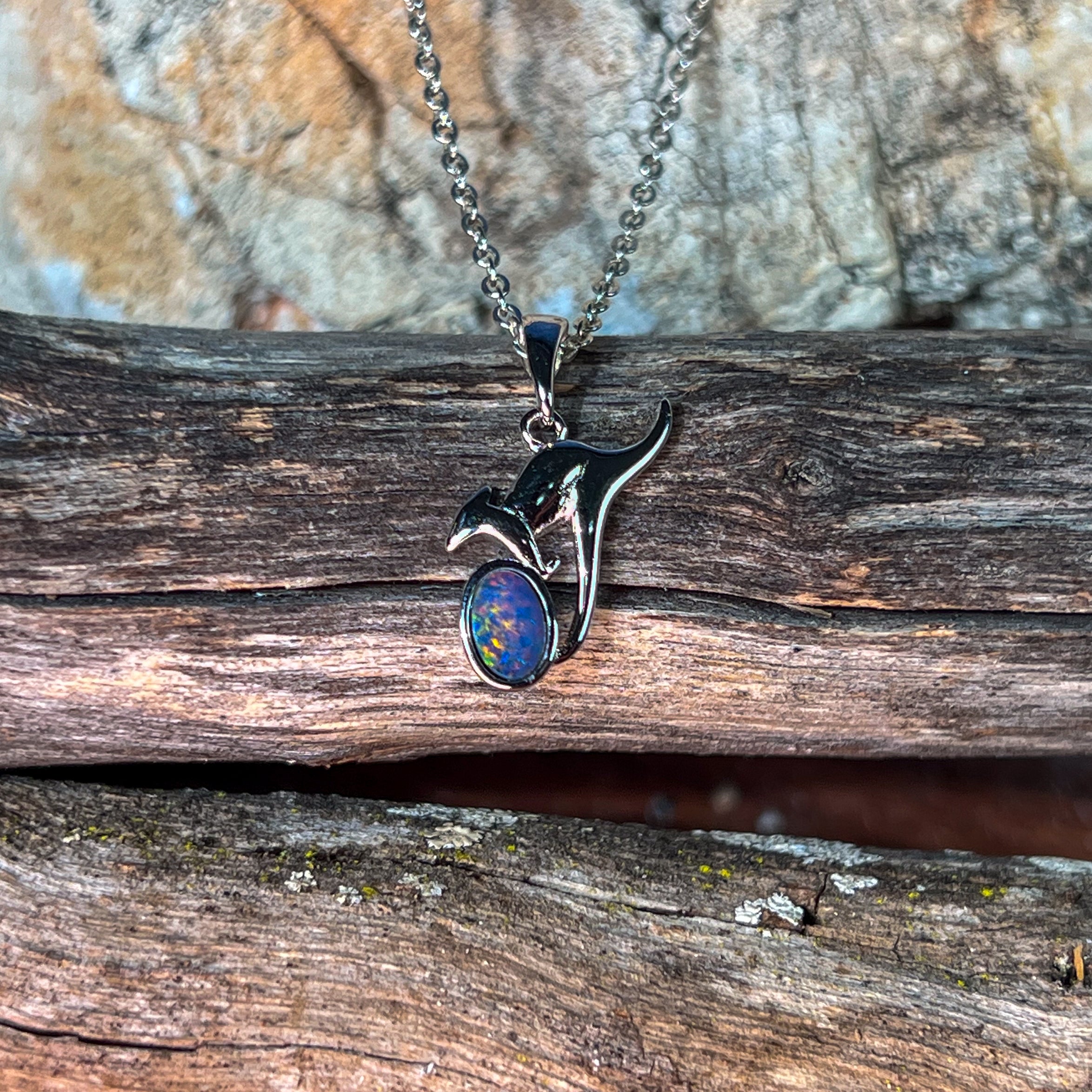 Sterling Silver Kangaroo Oval 6x4mm Opal doublet pendant