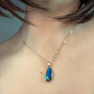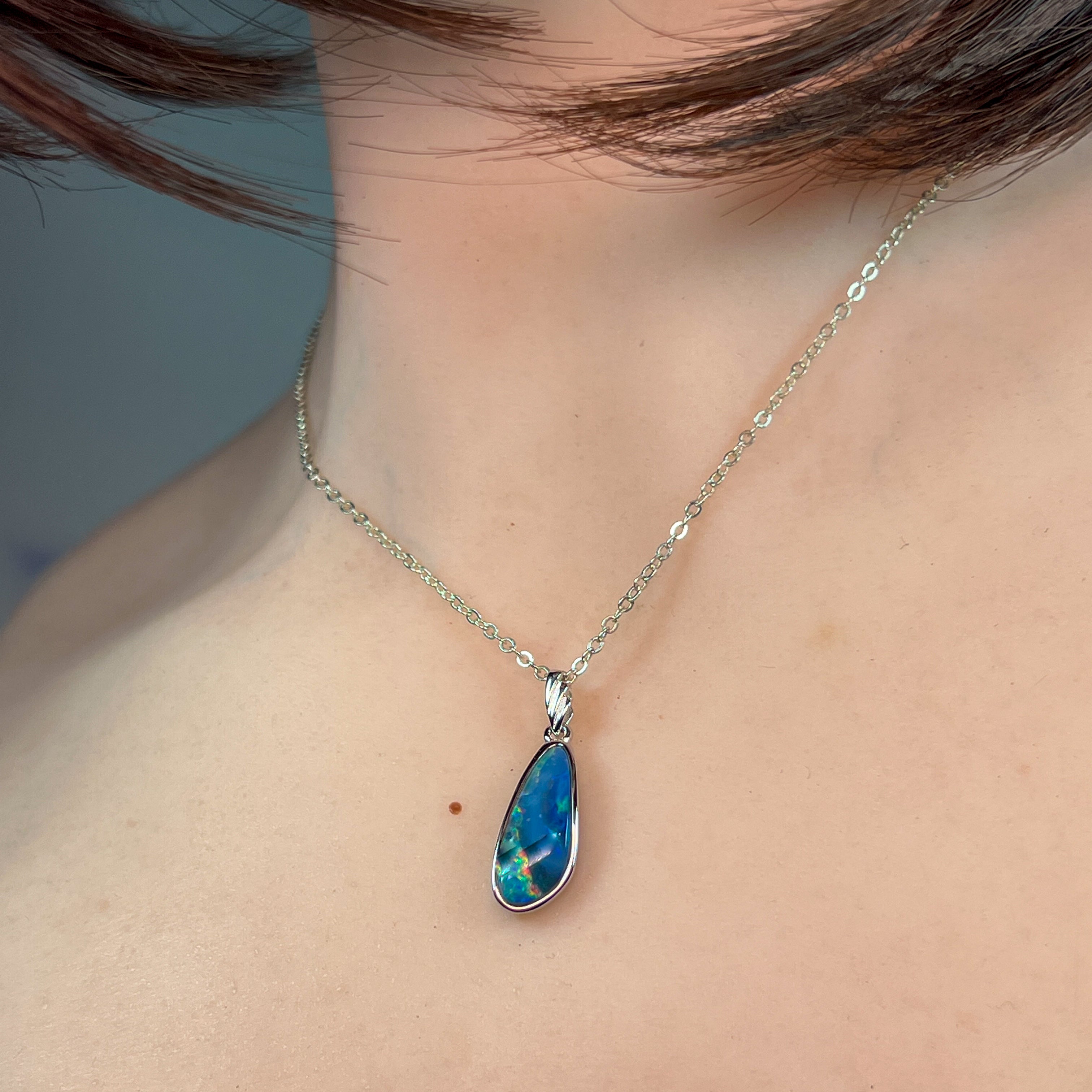 Elevate your jewellery collection with this stunning Sterling Silver Long Drop pendant, featuring a mesmerising triplet pattern opal doublet that dances with multi-coloured brilliance. Each piece showcases nature's most captivating play of colour—vibrant blues, greens, reds, and golds that shift and shimmer with every movement. Crafted from premium sterling silver, this elegant long drop design offers versatile styling for both everyday wear and special occasions. The doublet construction ensures durability while maximising the opal's natural radiance. A timeless investment piece that celebrates the raw beauty of Australian opals.