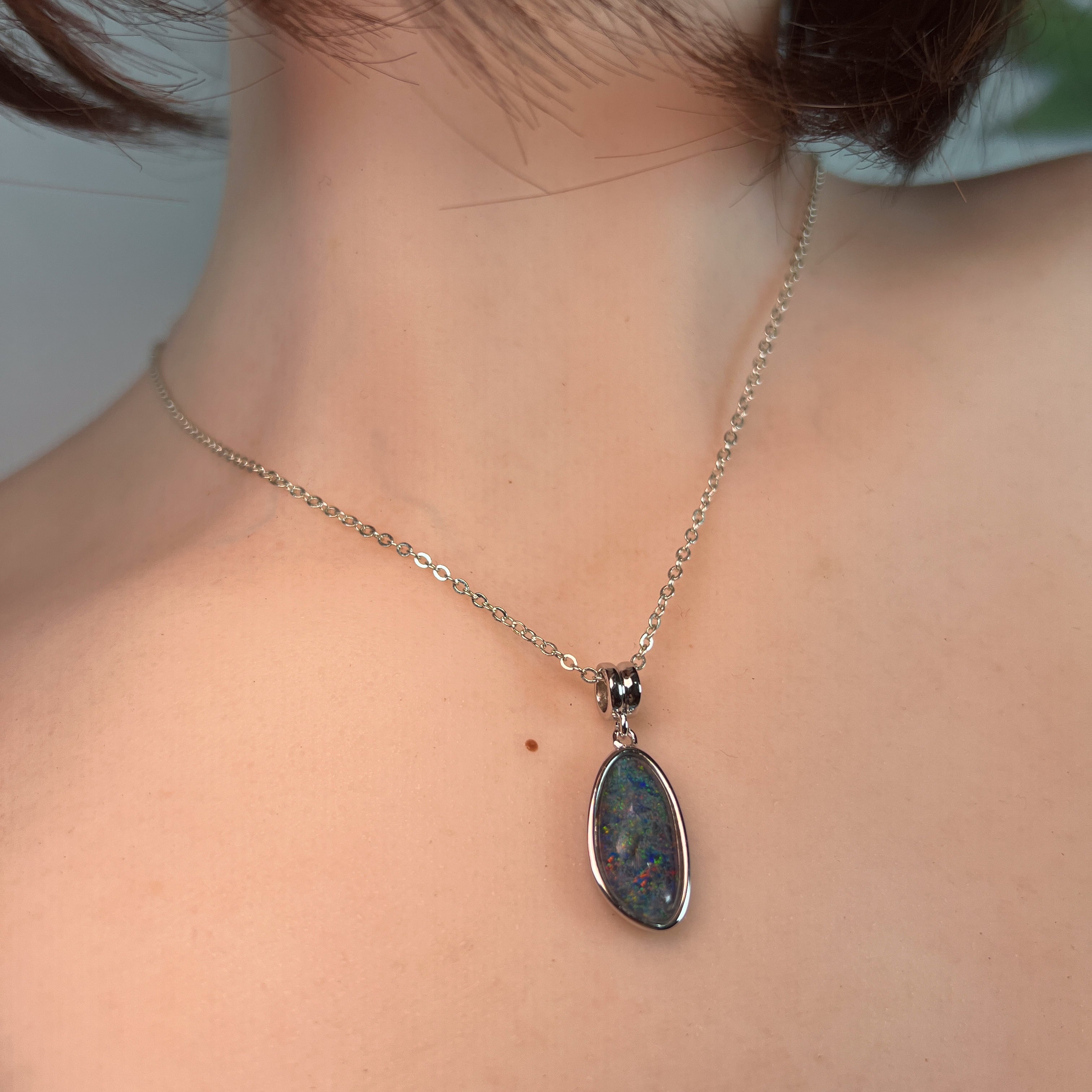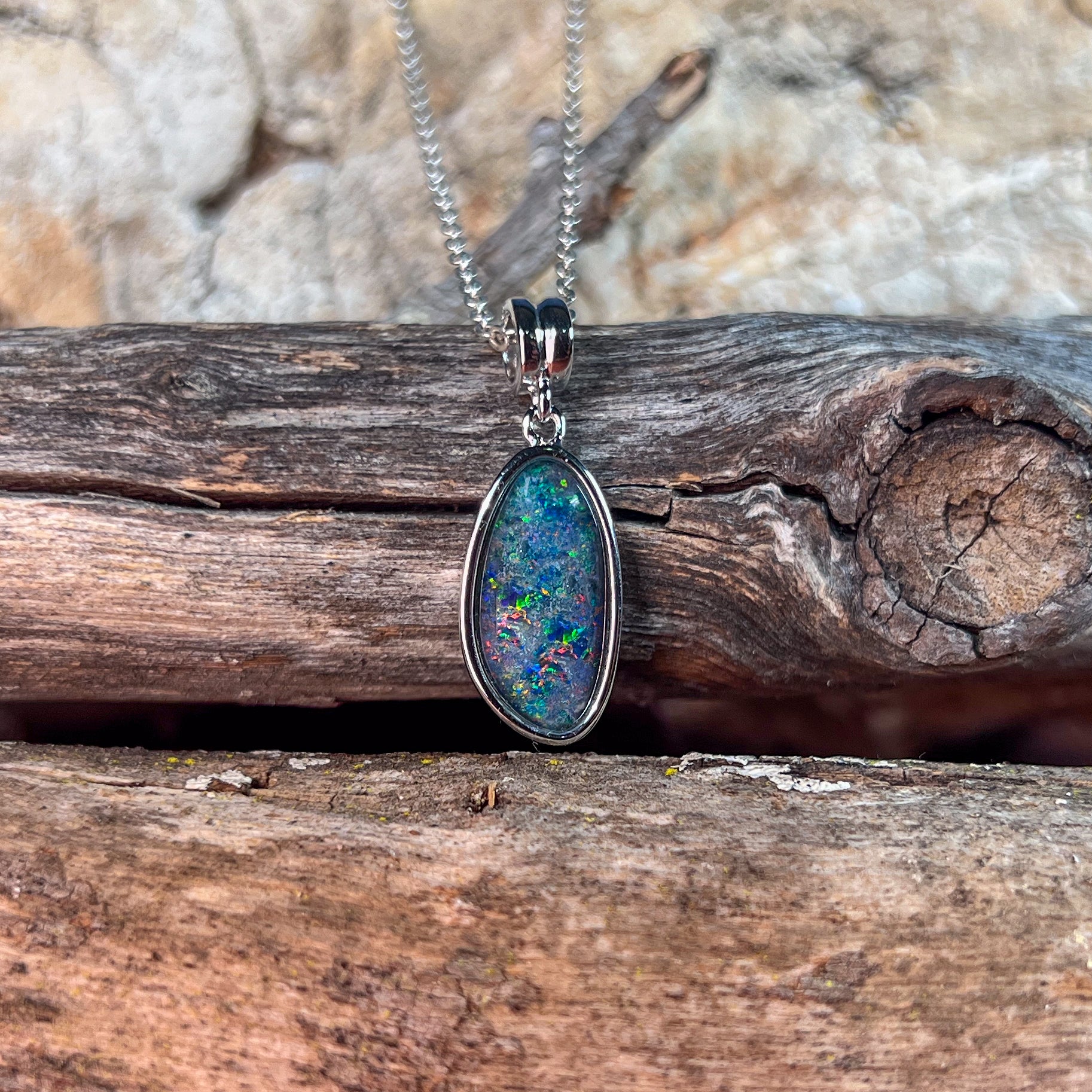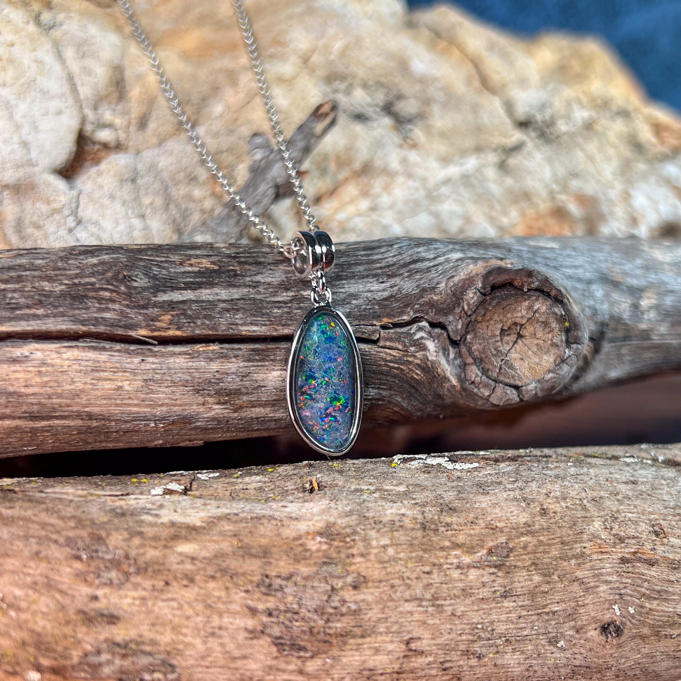 Sterling Silver long Opal triplet 17x9mm pendant