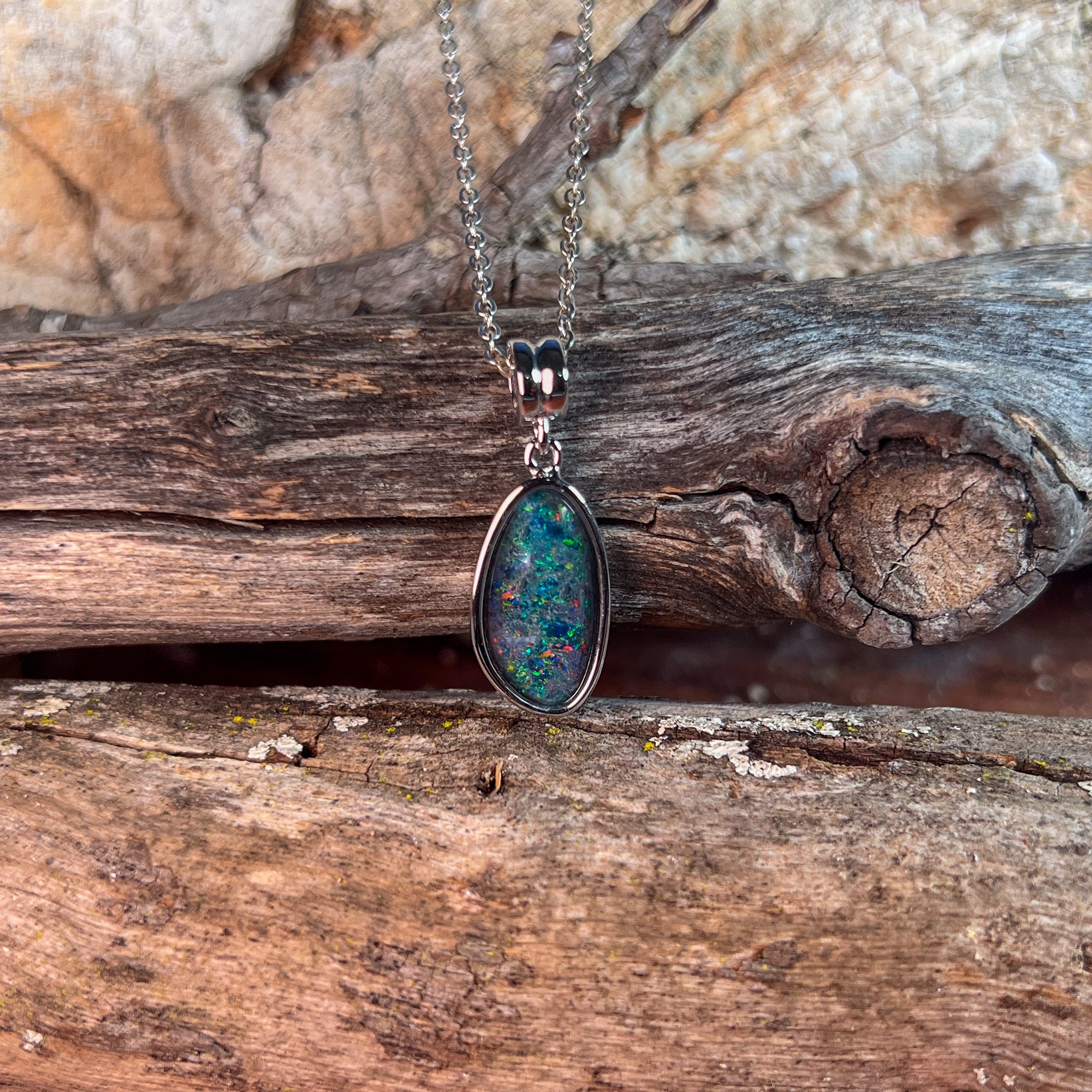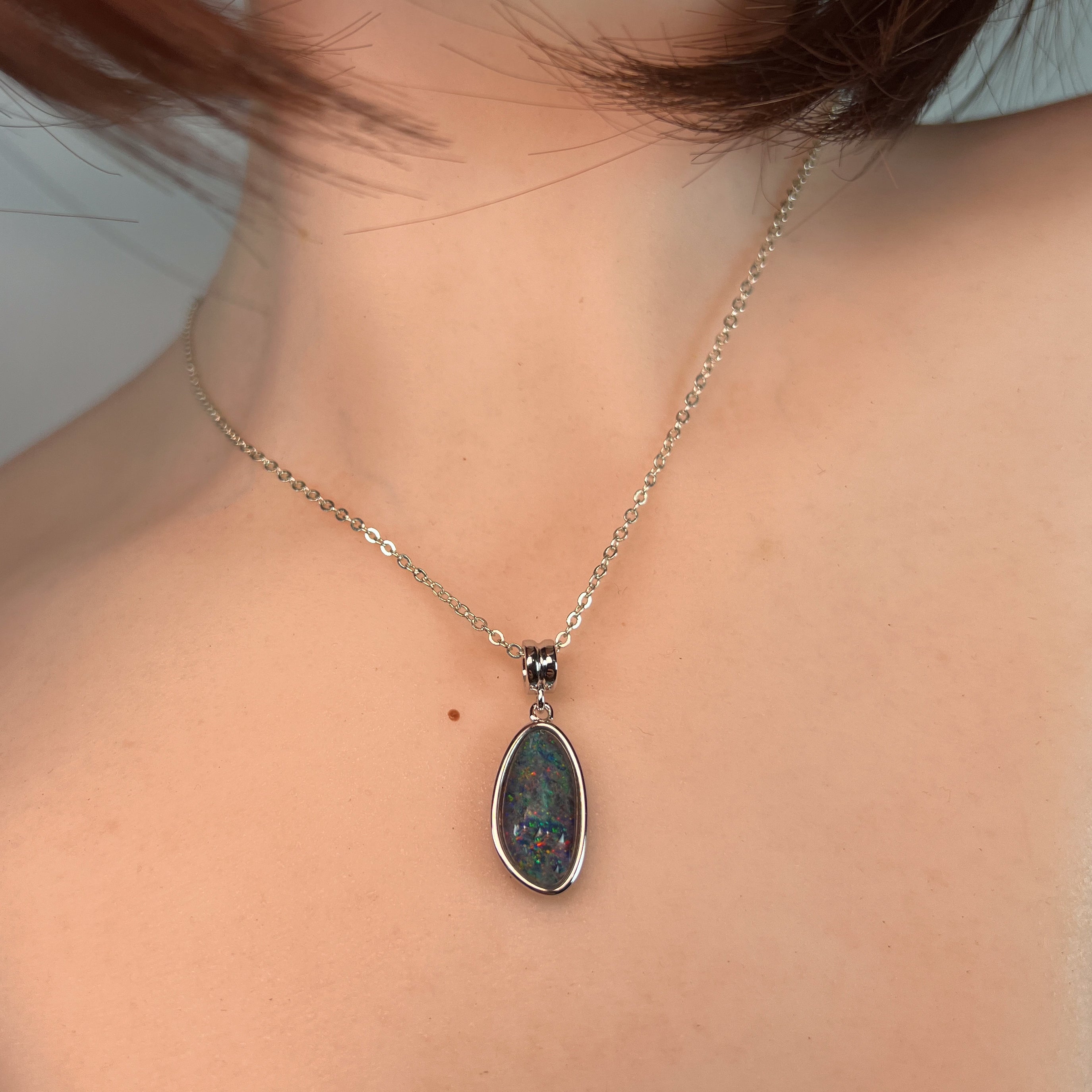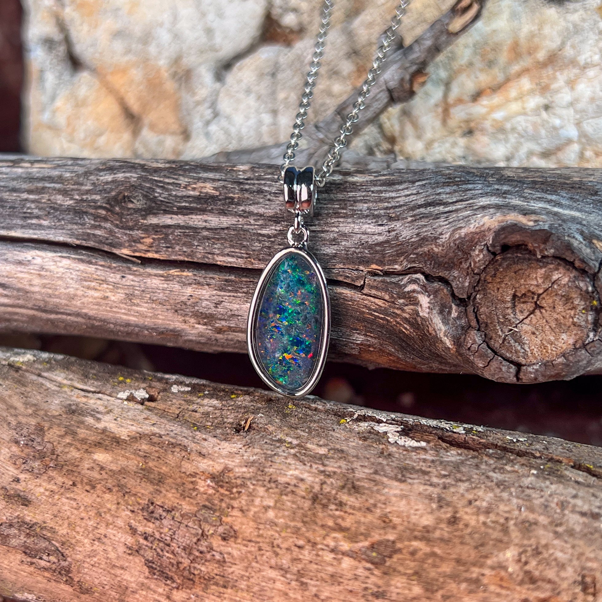 Sterling Silver long Opal triplet 17x9mm pendant