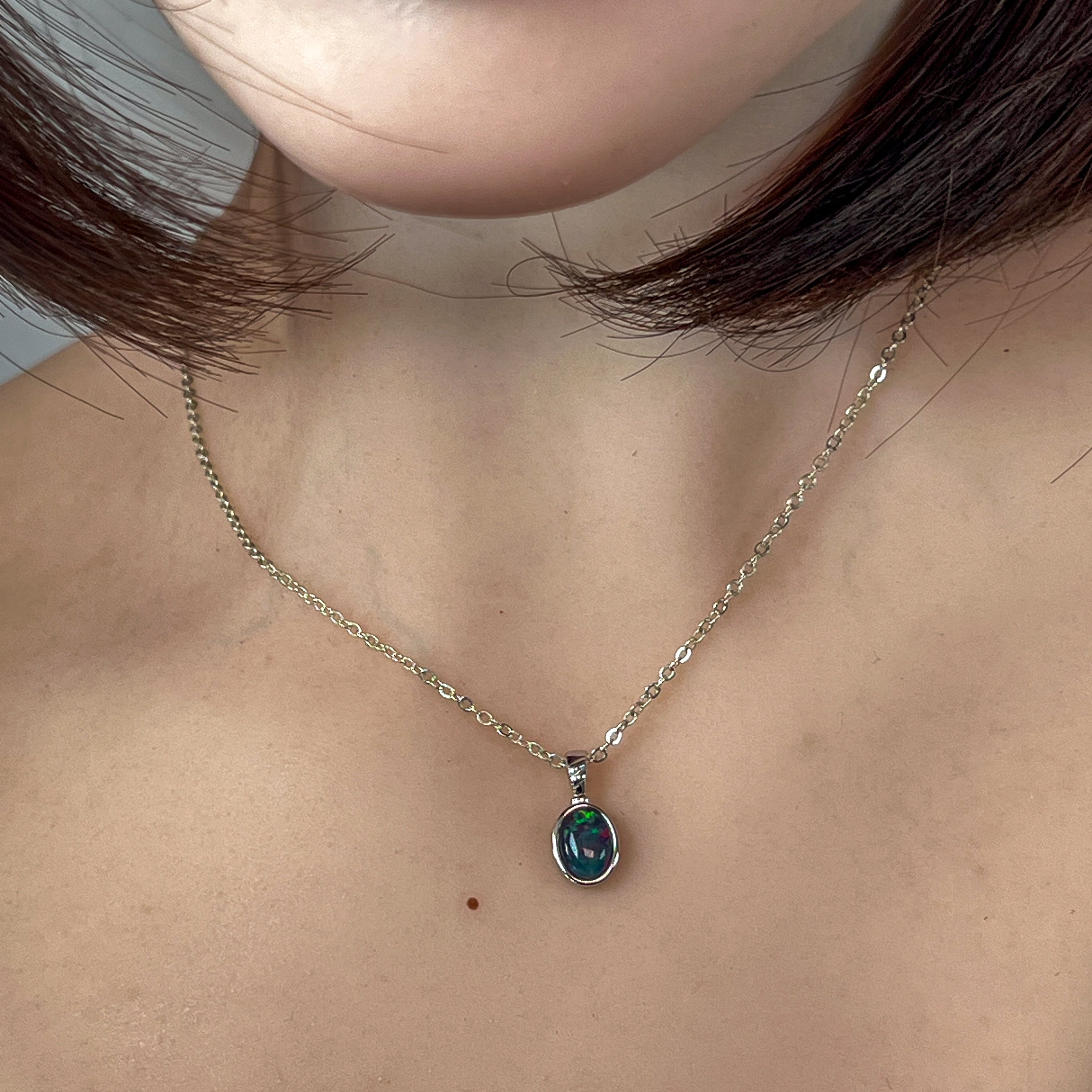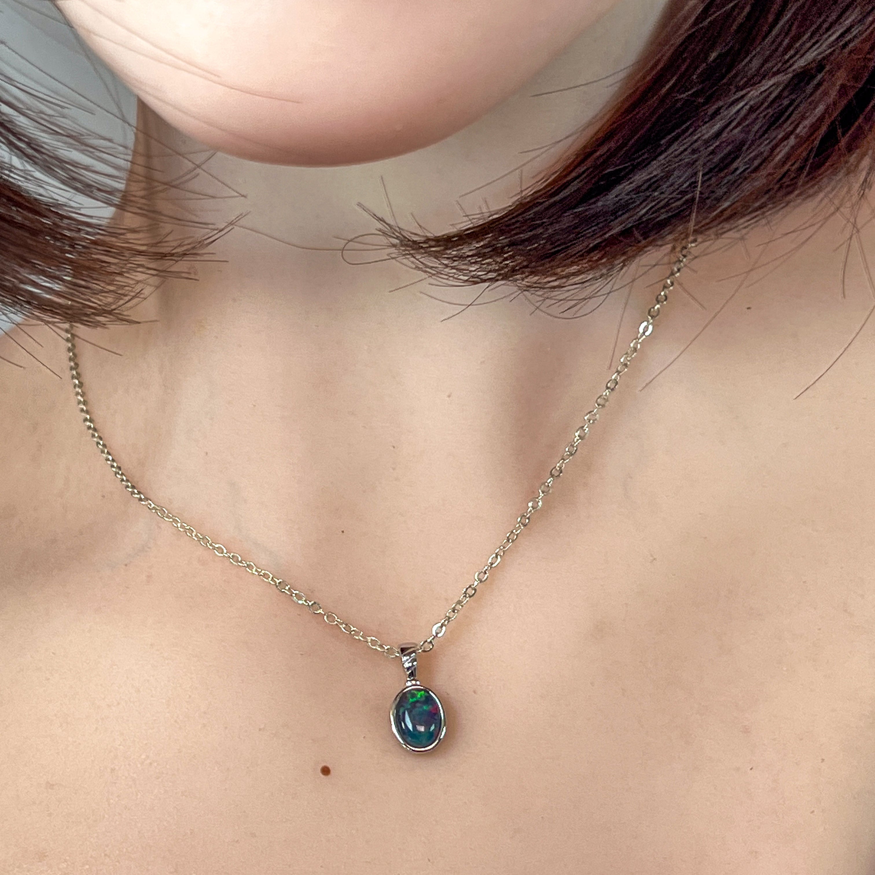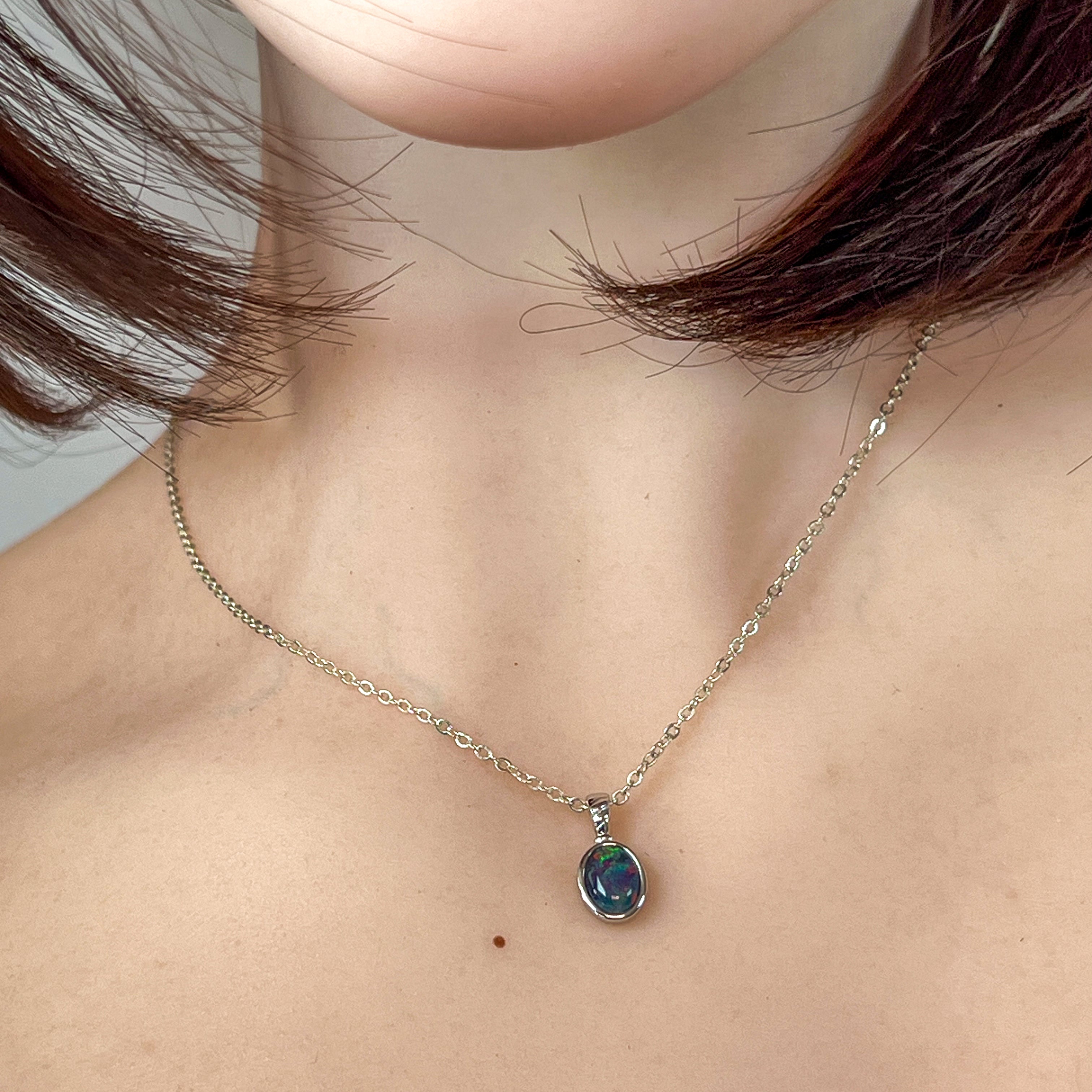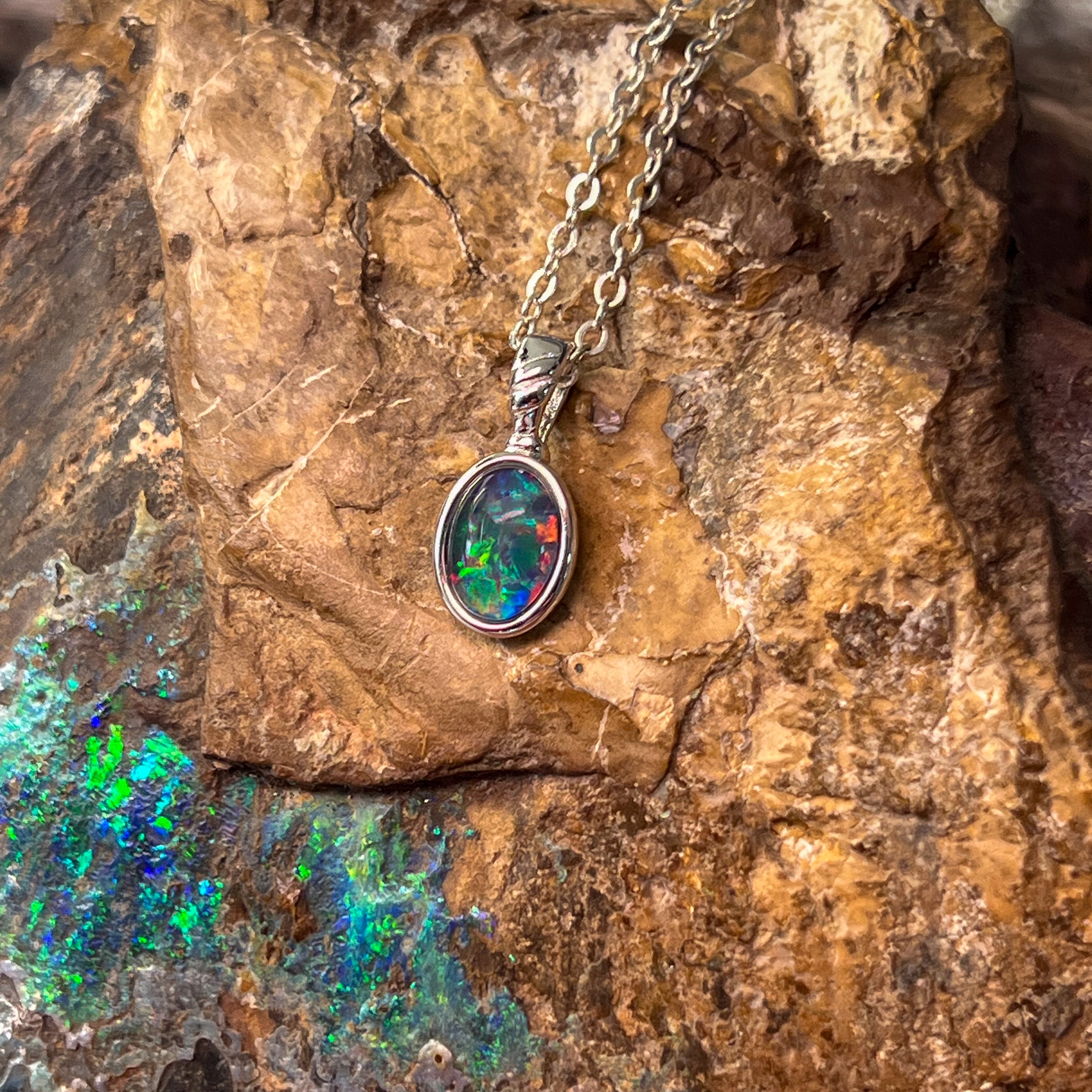 Sterling Silver Opal 8x6mm Opal triplet in bezel set pendant design