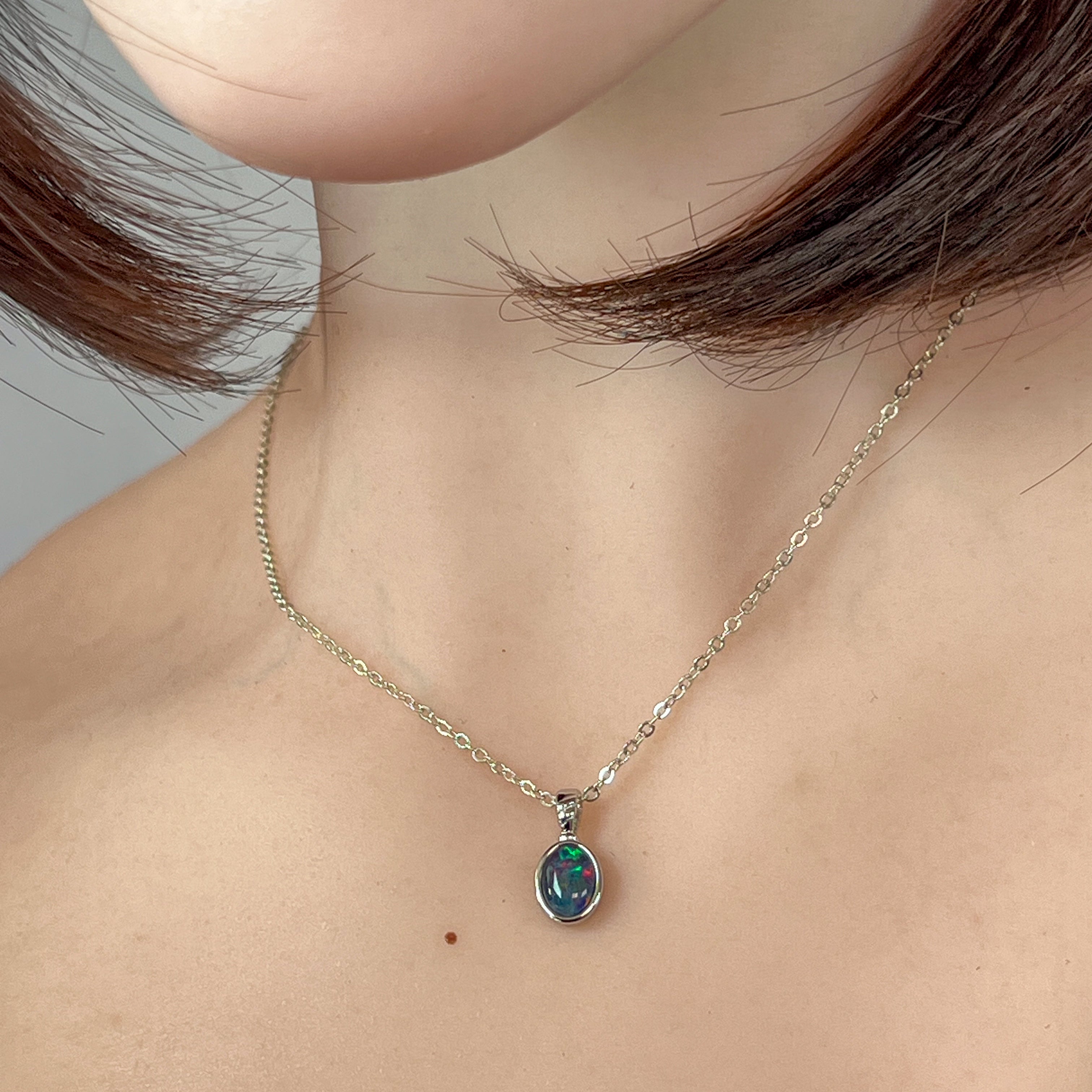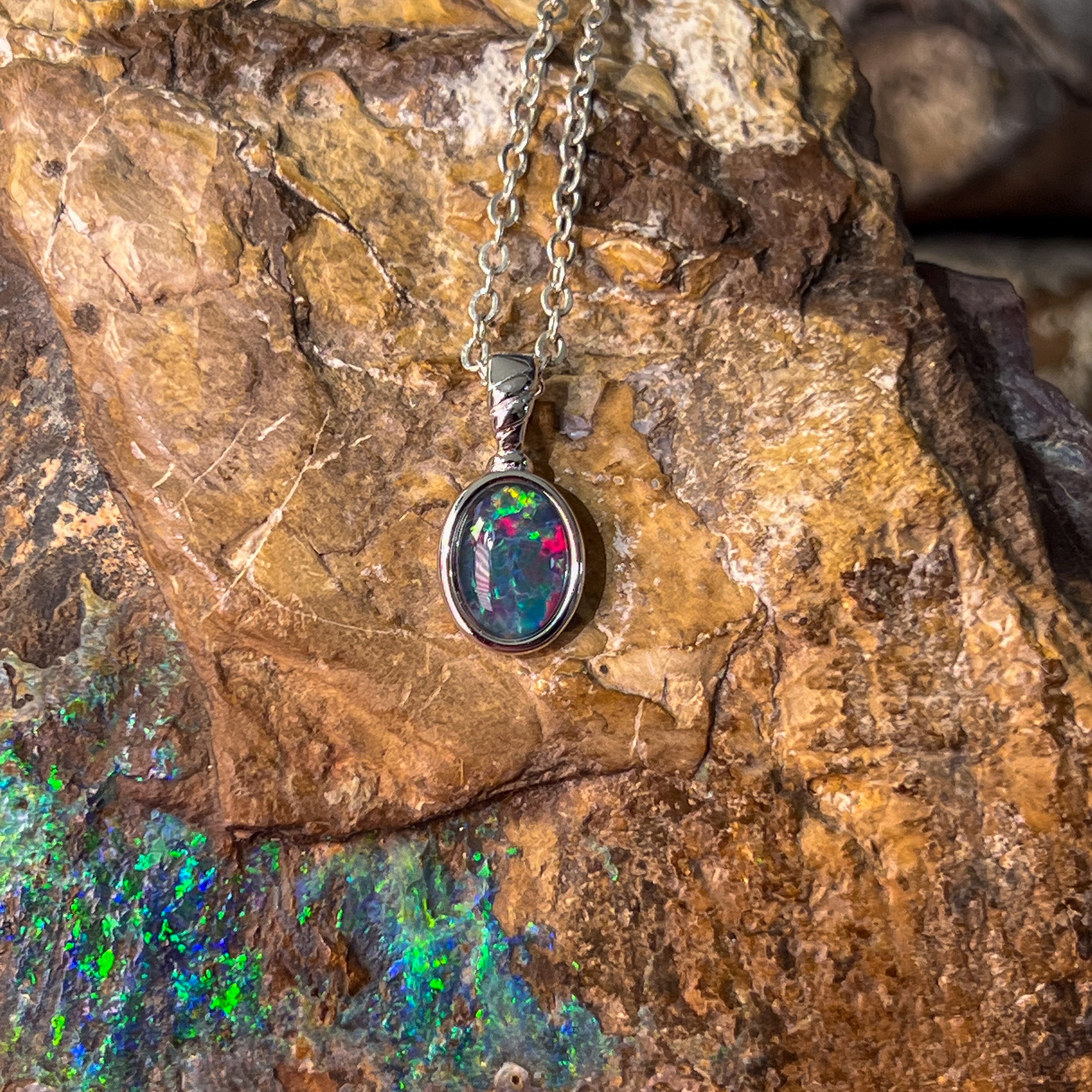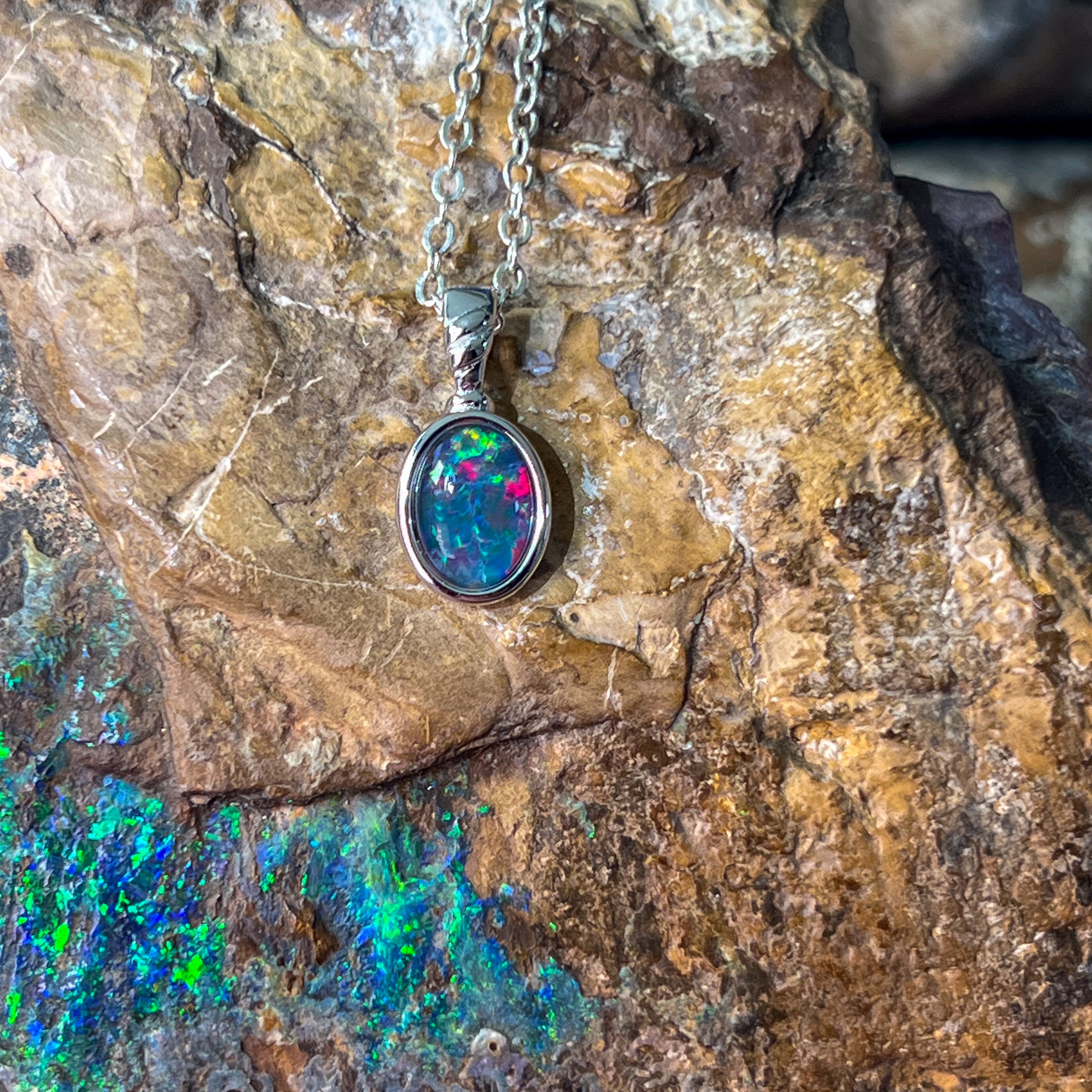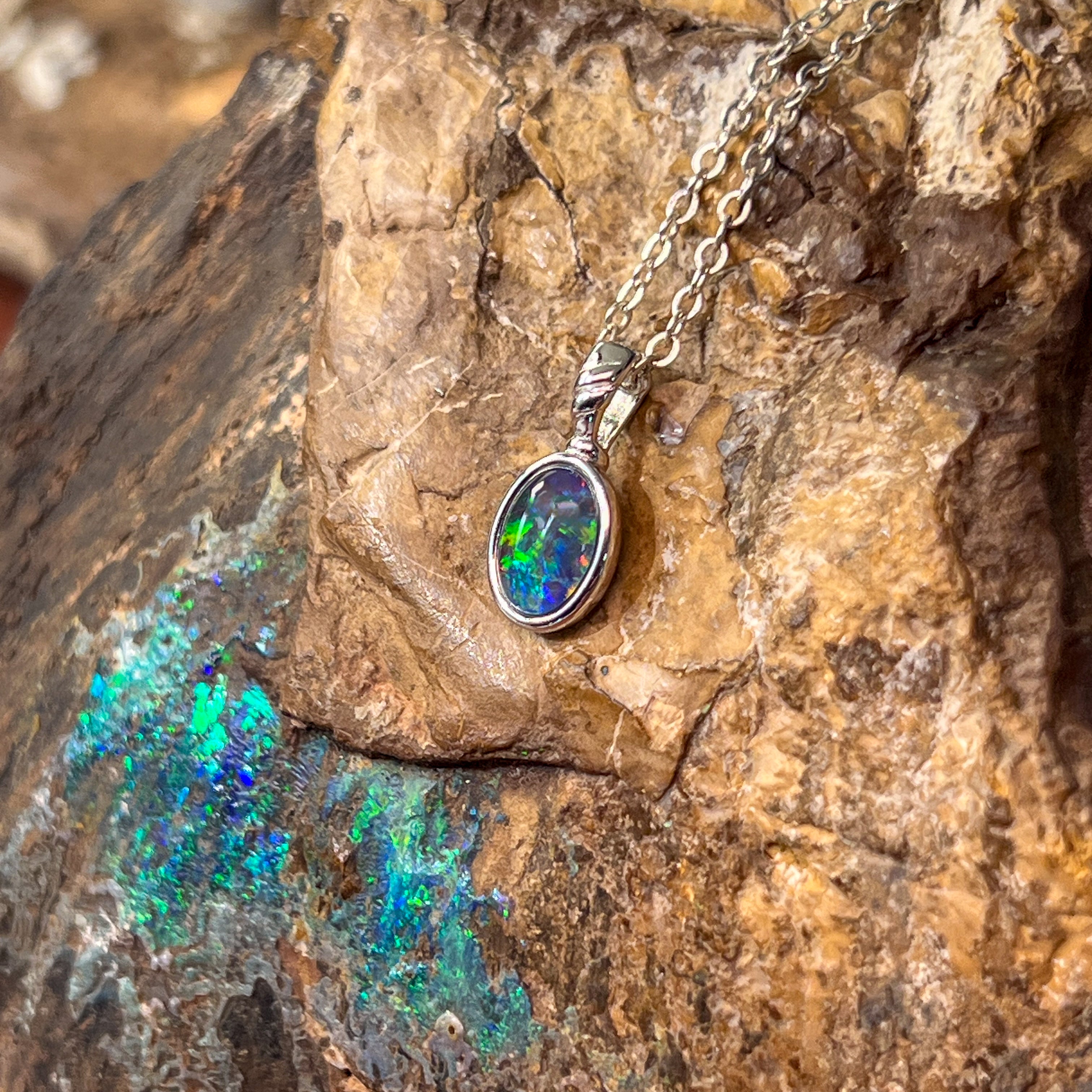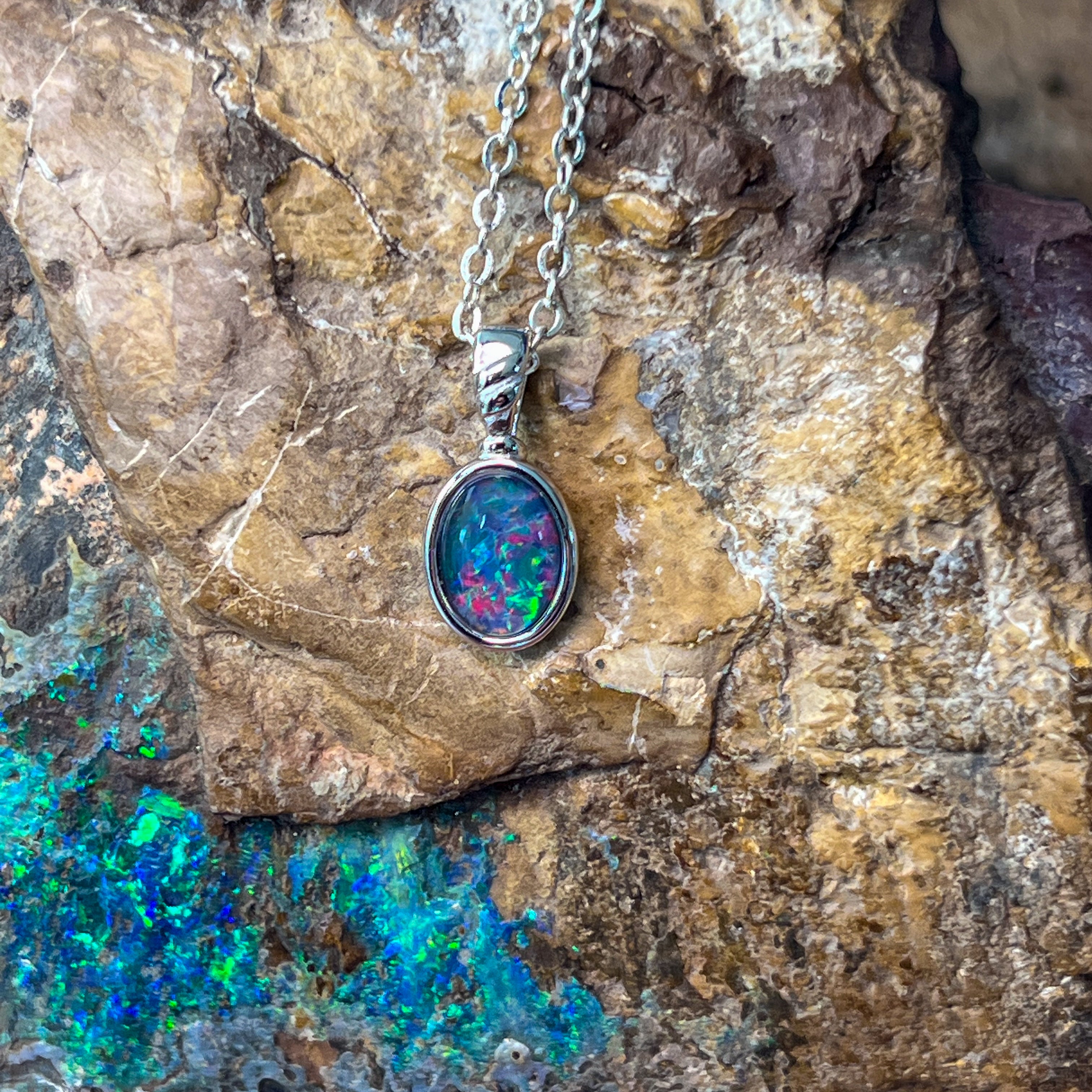 Sterling Silver Opal 8x6mm Opal triplet in bezel set pendant design