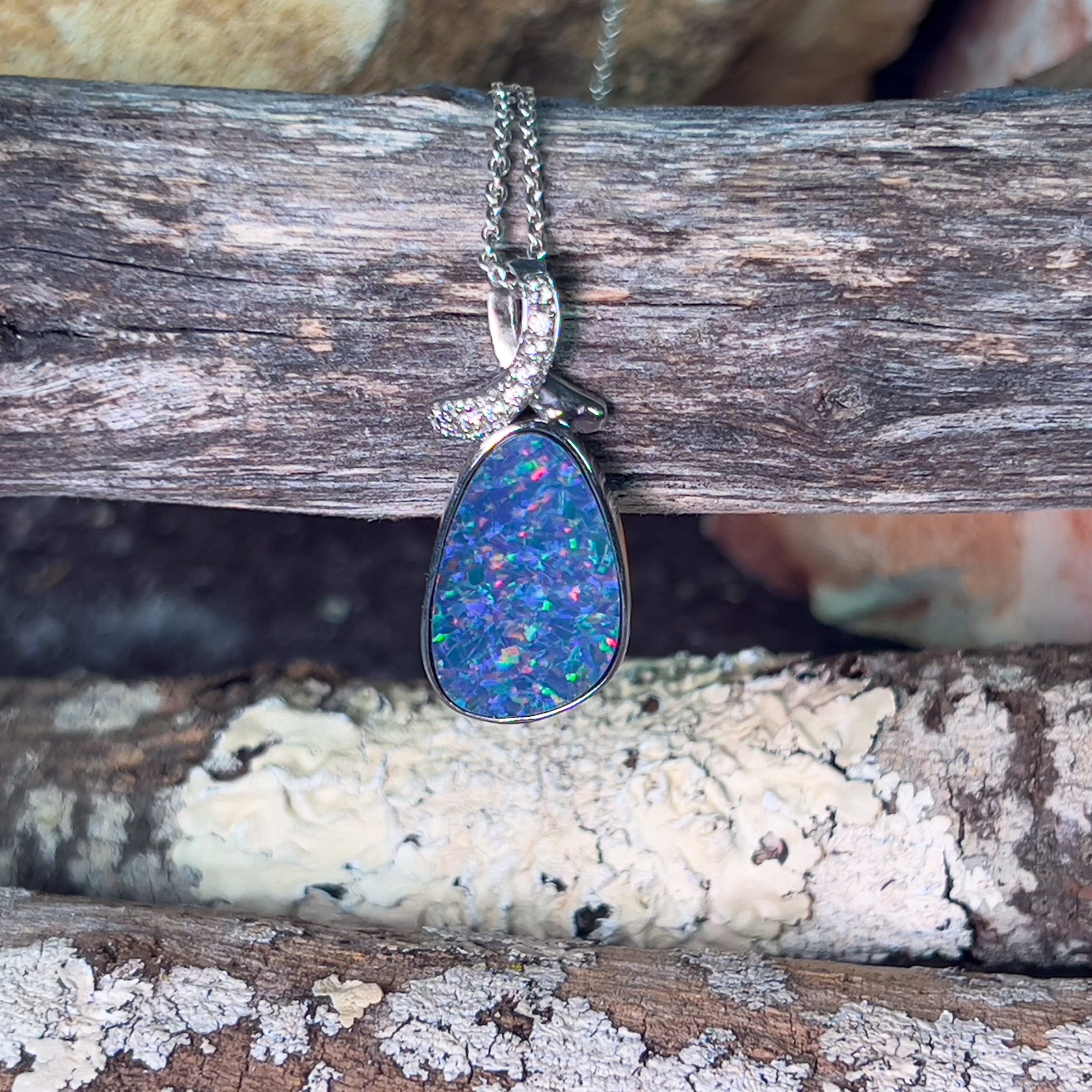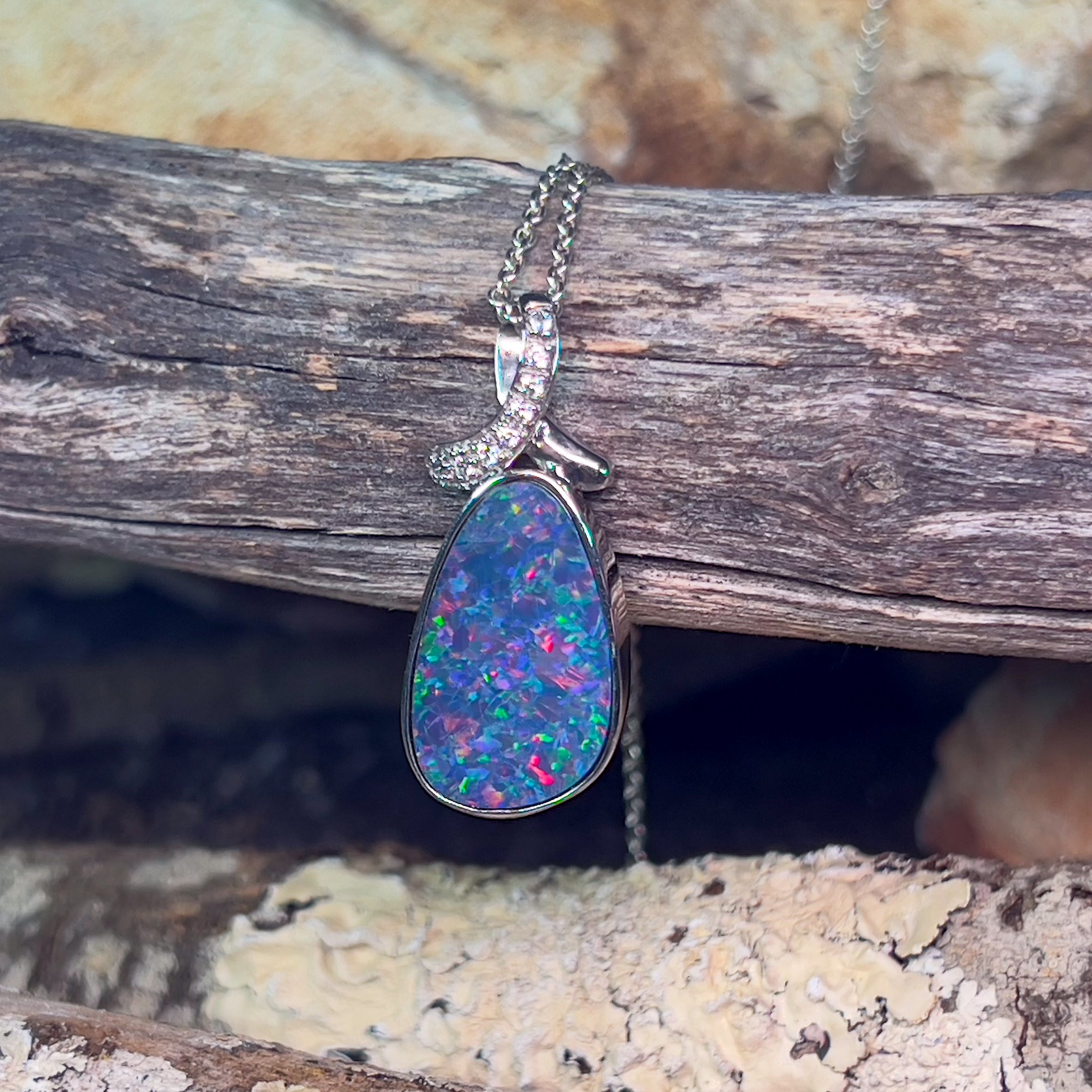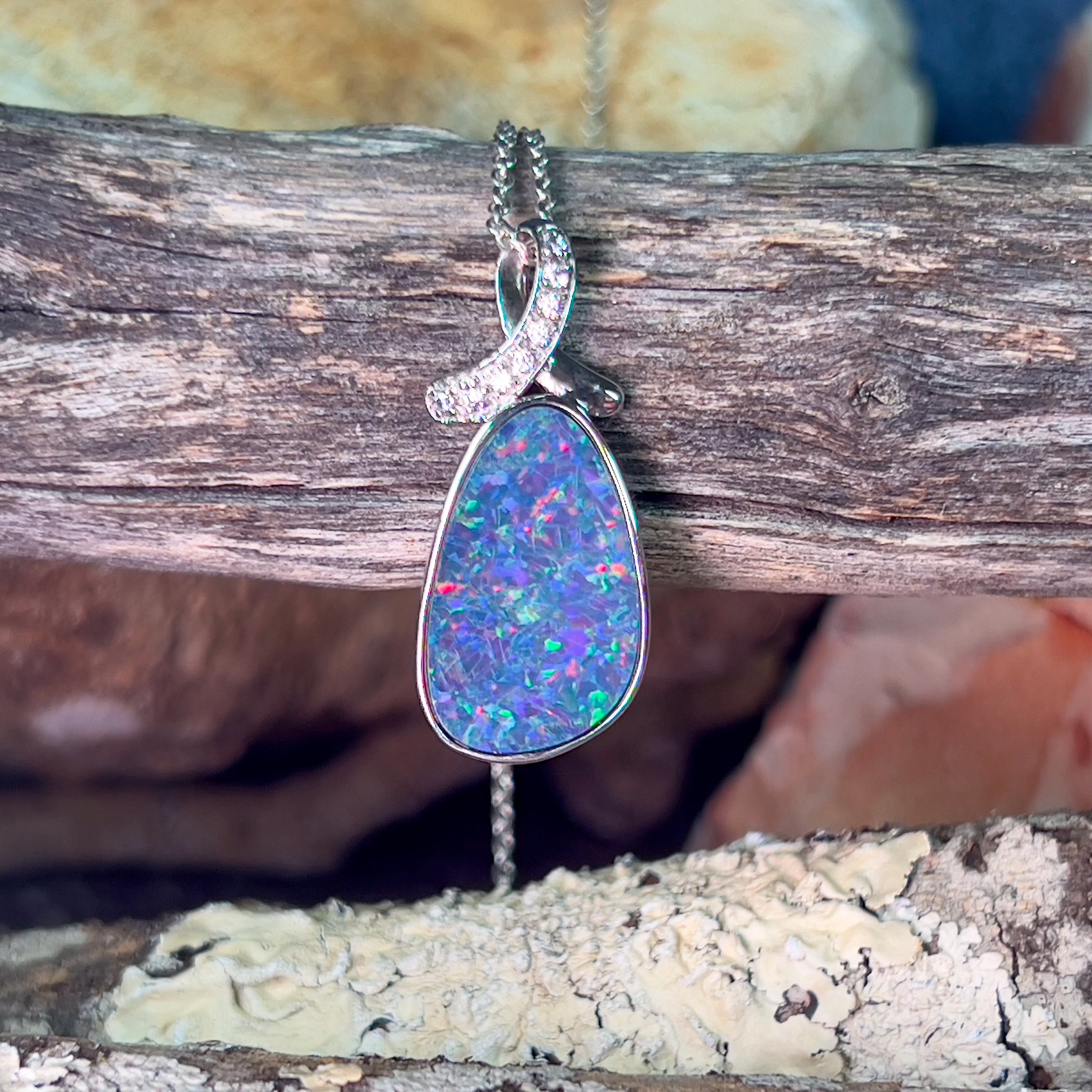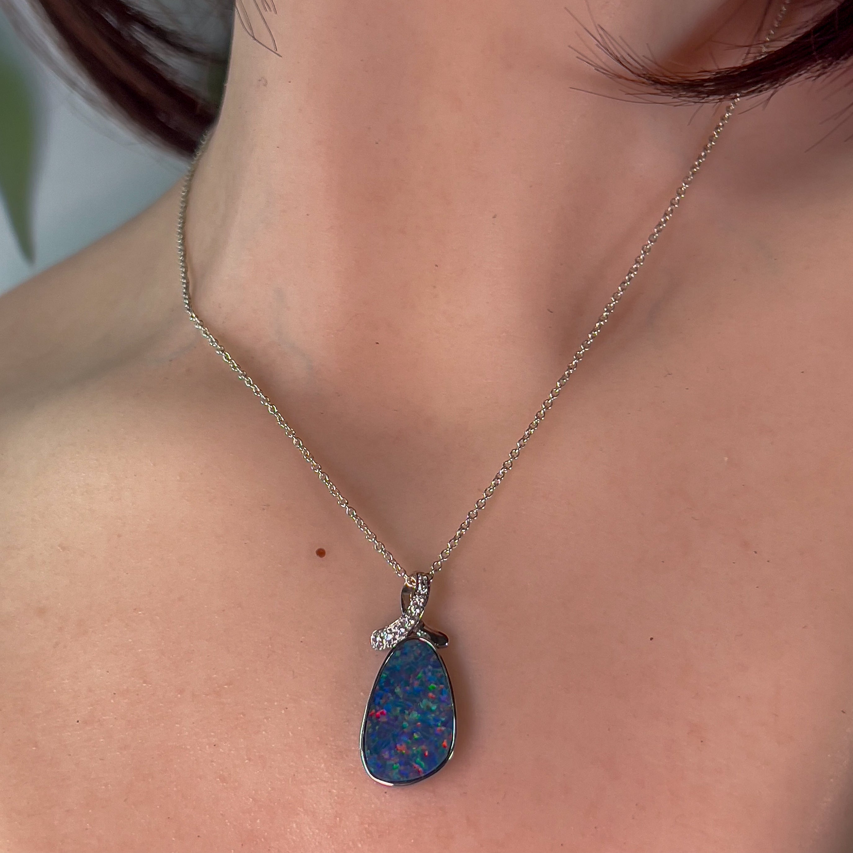 Experience true elegance with our Sterling Silver Opal doublet 4.28ct large drop style pendant! This stunning piece sparkles with a mesmerizing iridescence, adding a touch of luxury and sophistication to any outfit. Elevate your style with this must-have accessory.