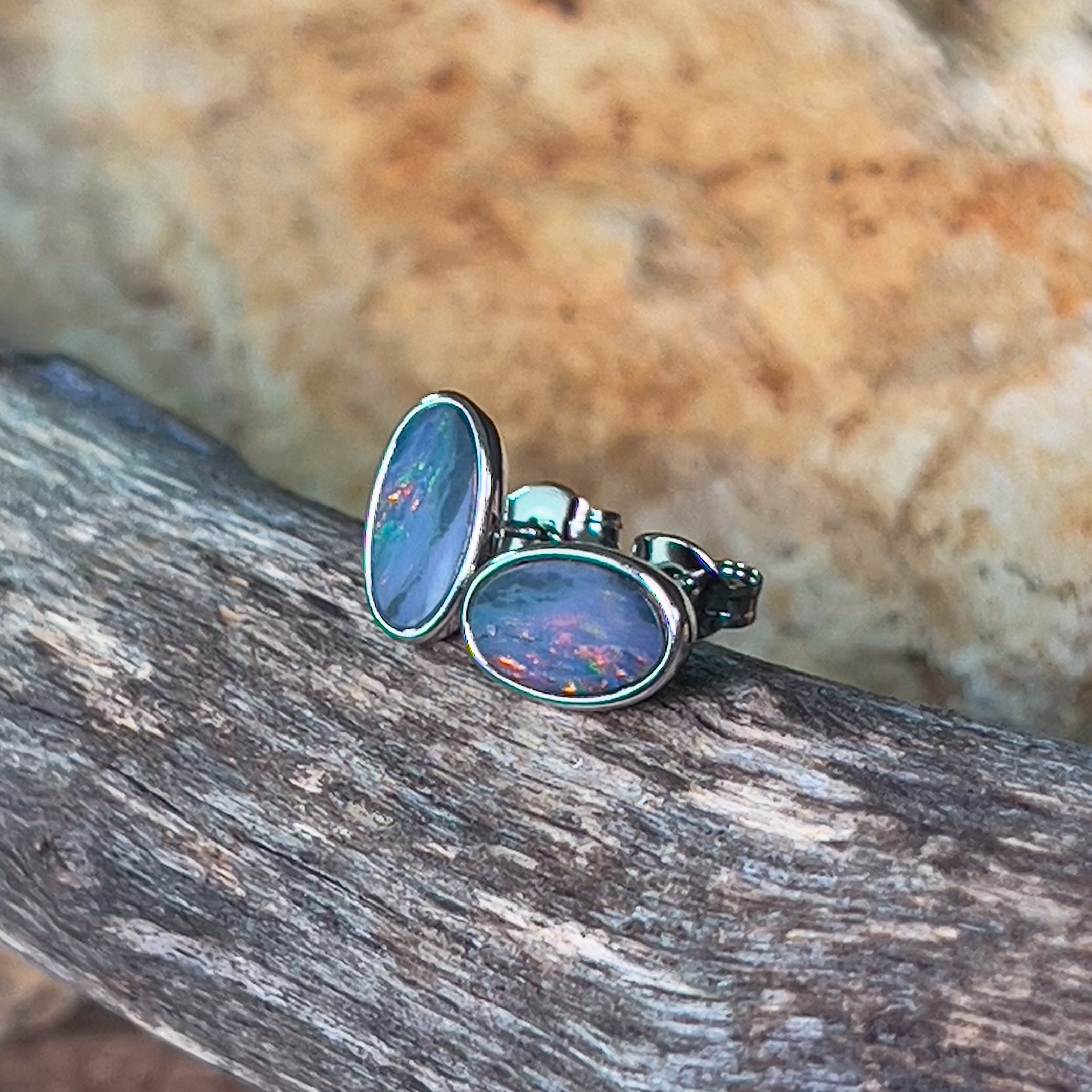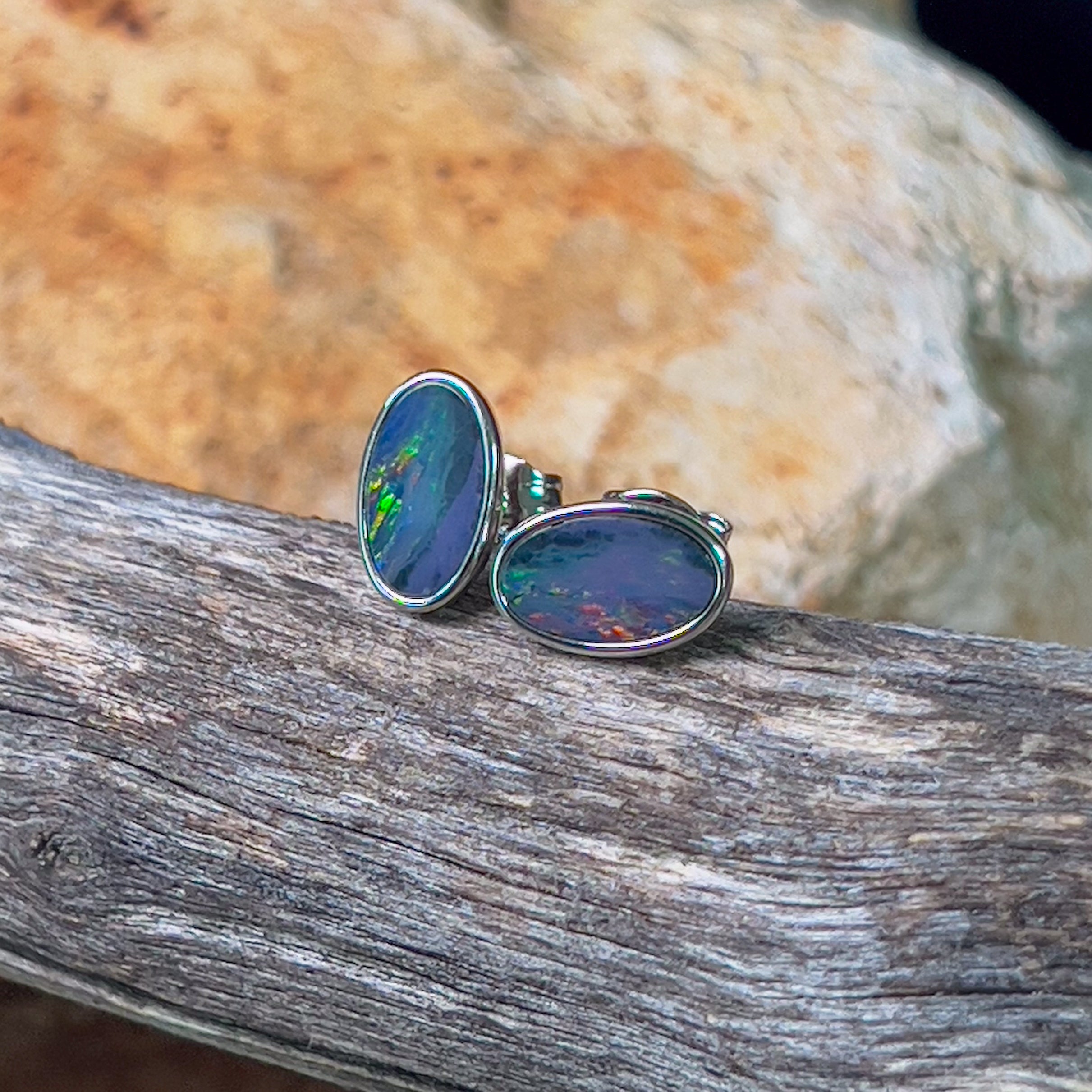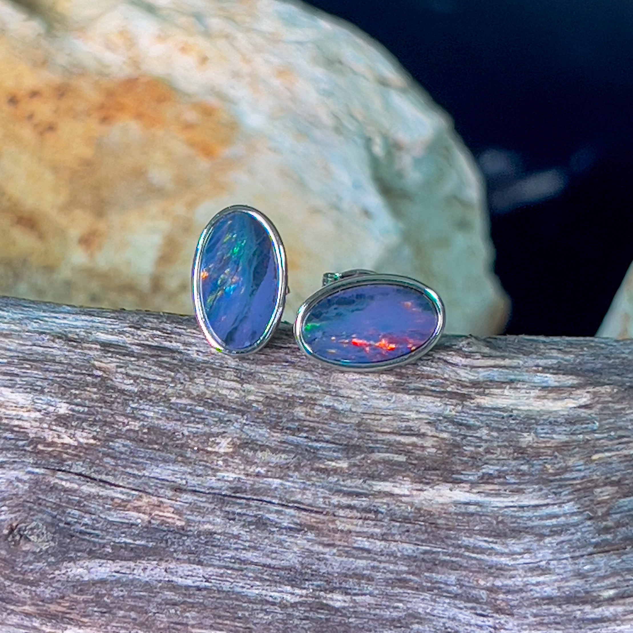 Sterling Silver Opal doublet 9.5x5.5mm oval studs