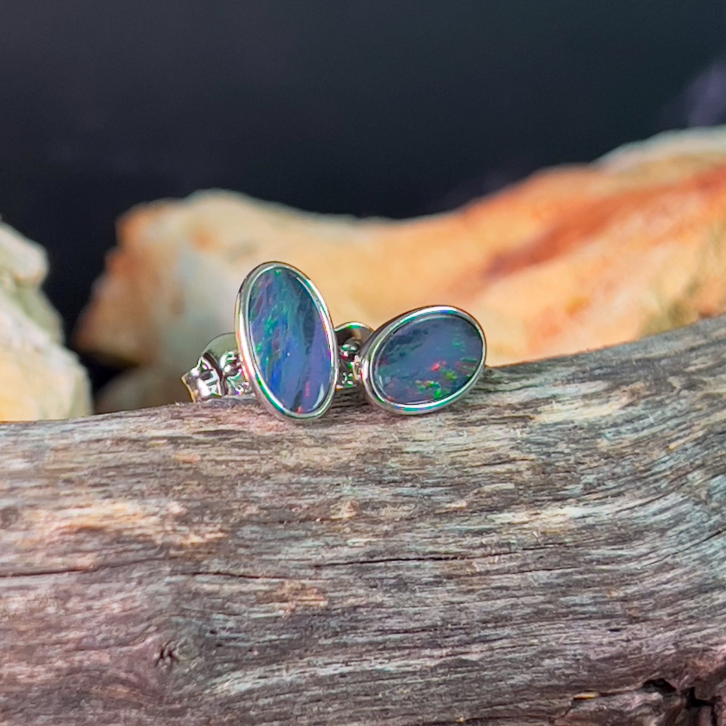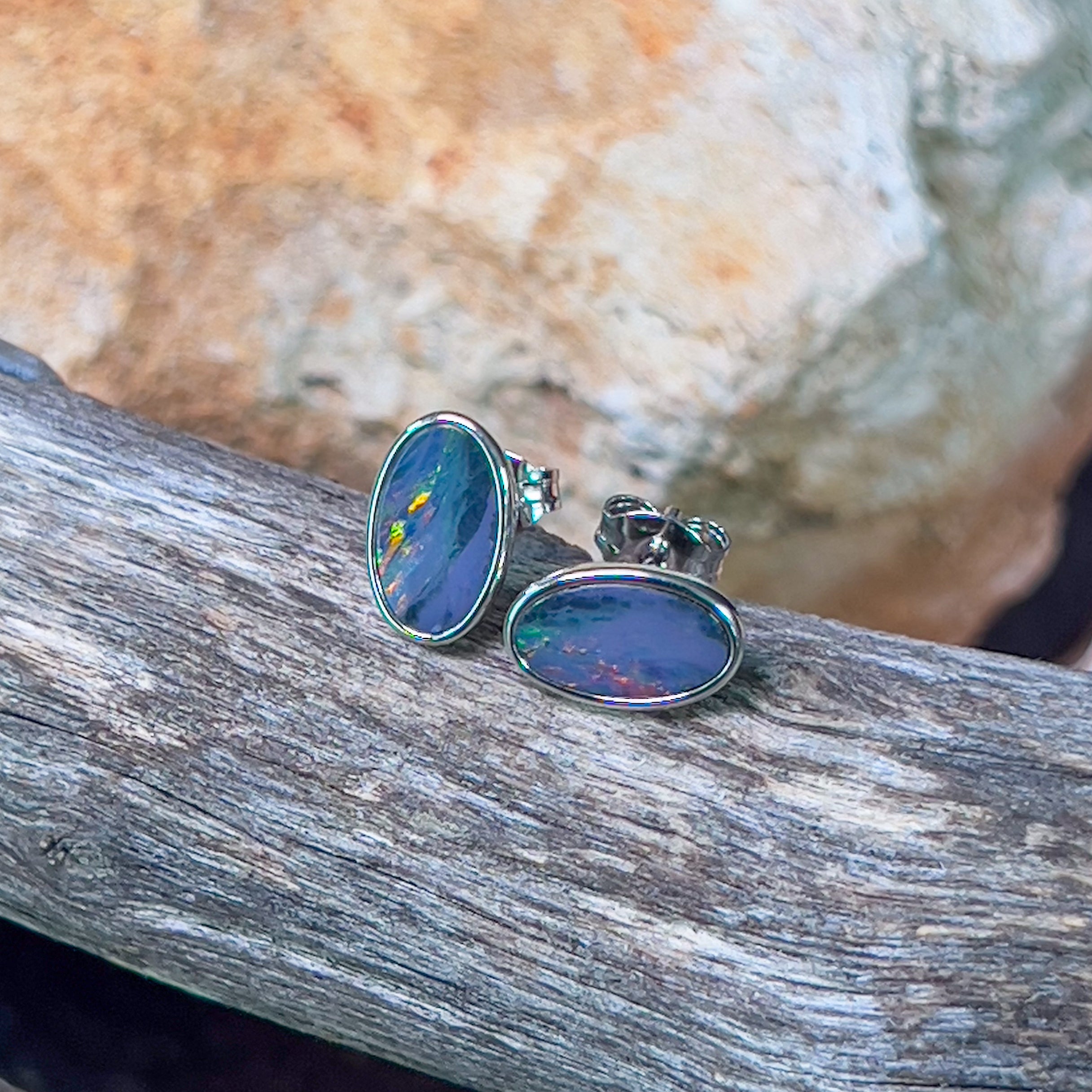 Add a touch of classic sparkle with these sterling silver opal doublet 9.5x5.5mm oval studs. Elevate your style with these timeless and elegant studs that are perfect for any occasion. The opal doublet adds a unique touch of luminosity and charm. Time to shine!