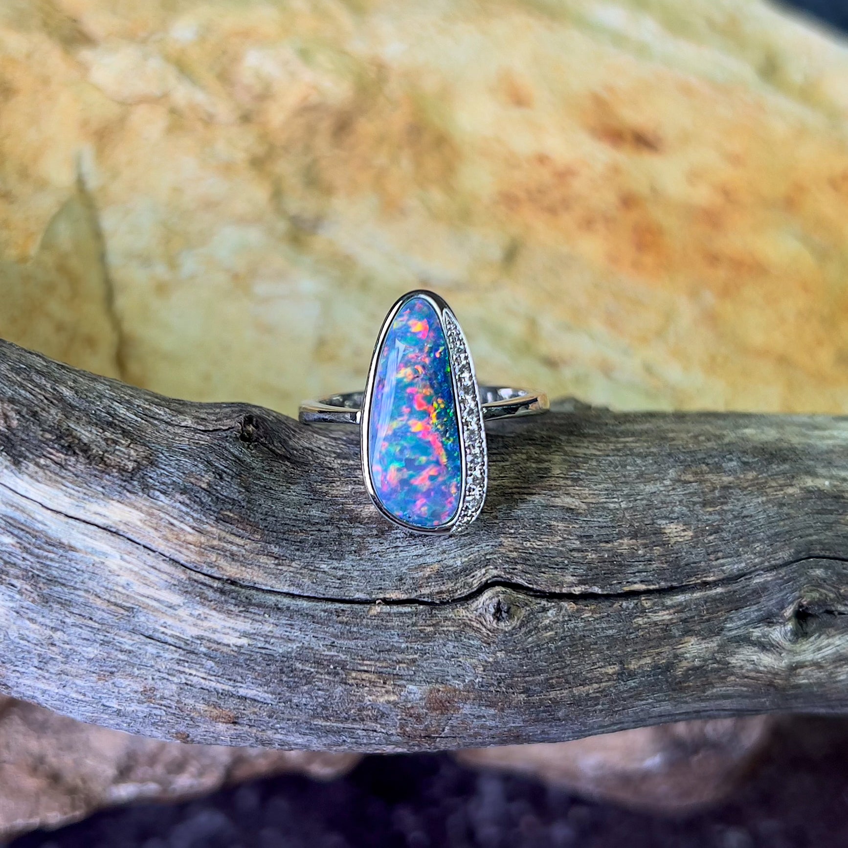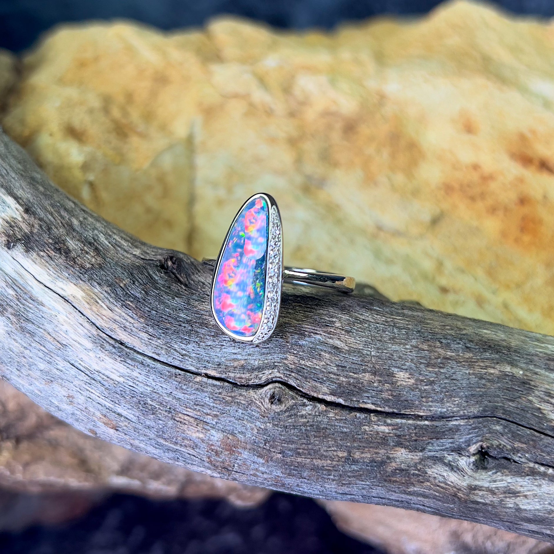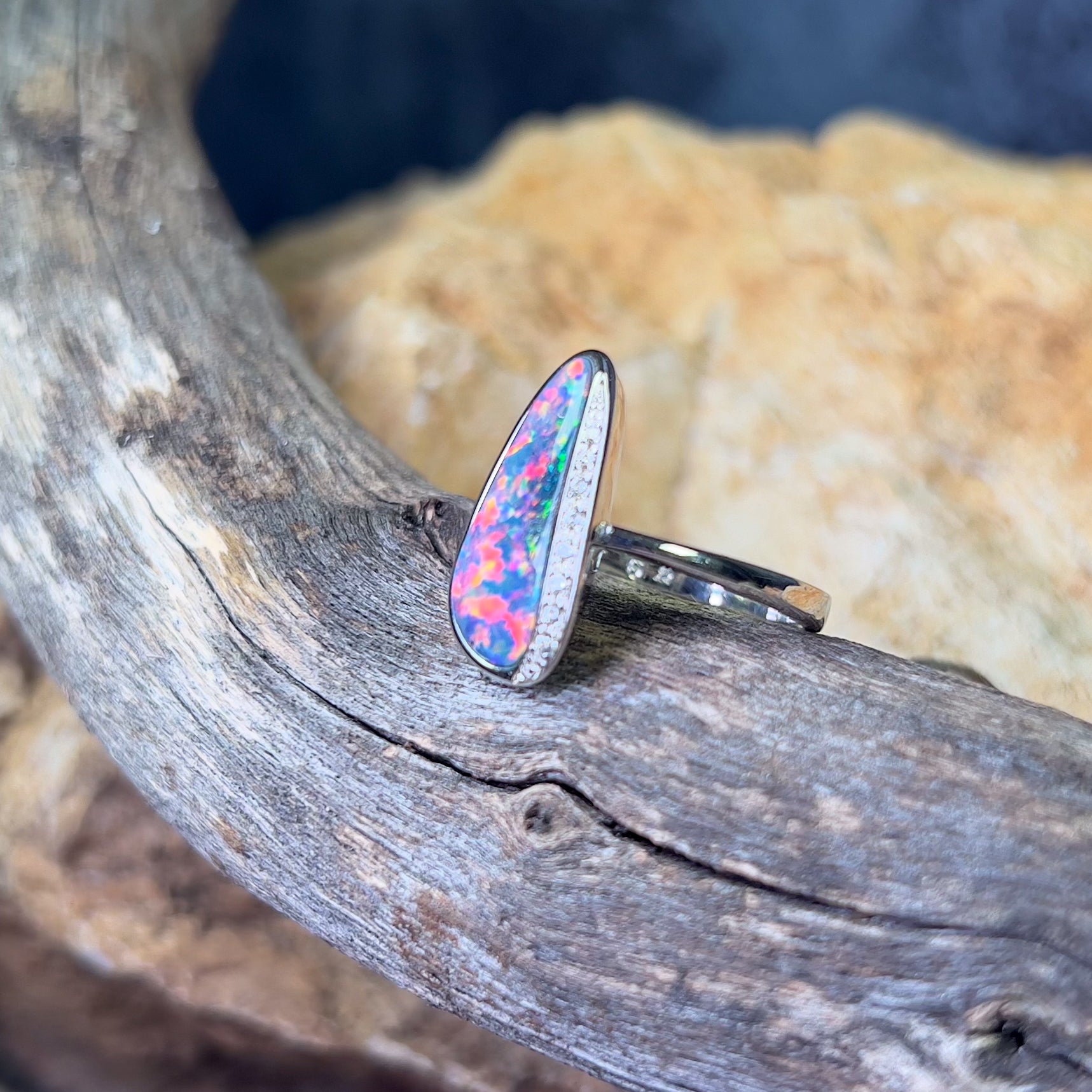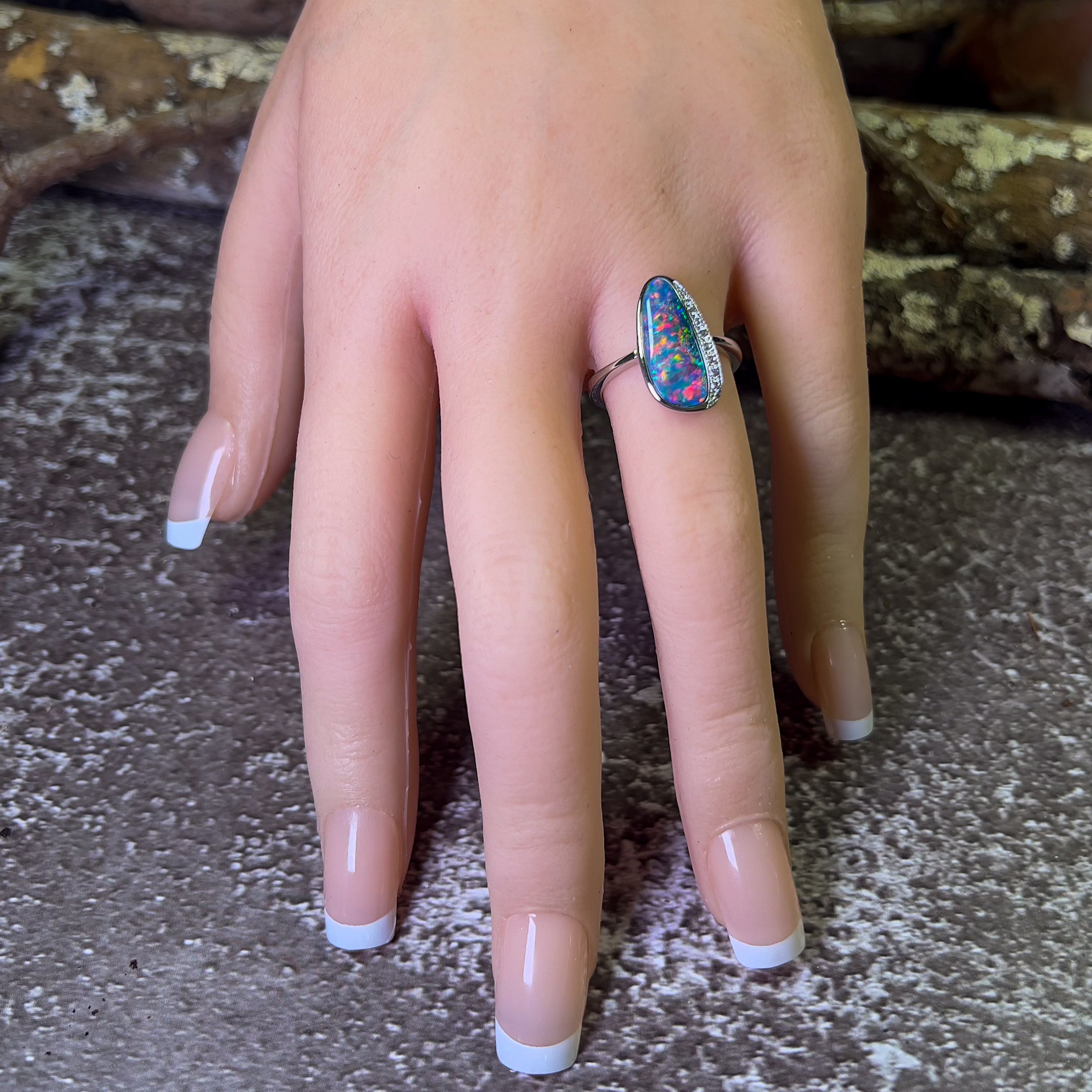Sterling Silver Opal Fire Doublet and cubic zirconia ring