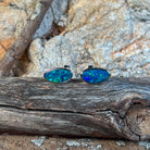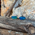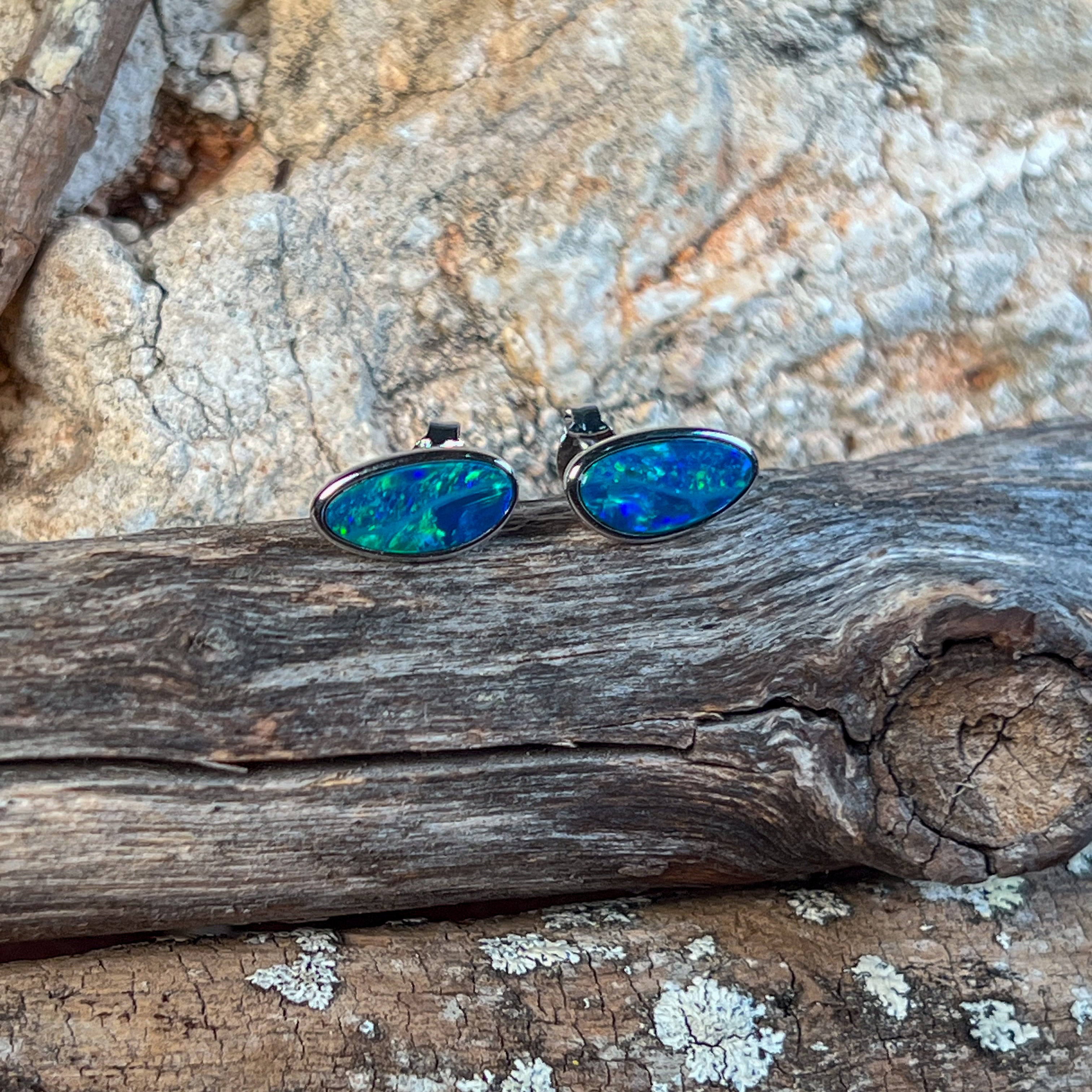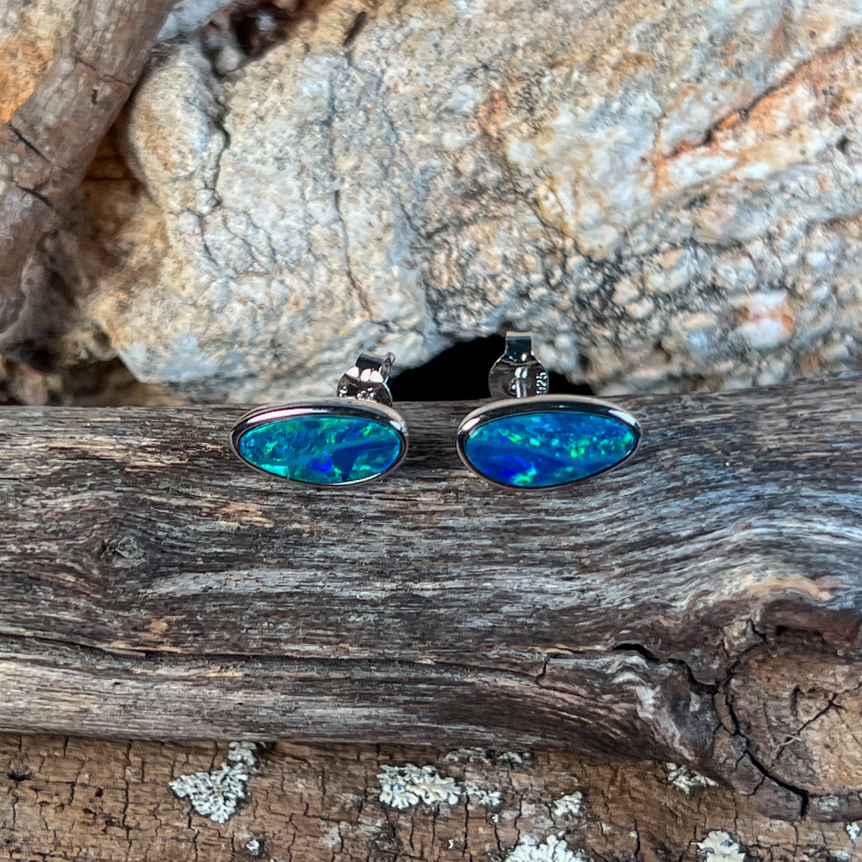 Sterling Silver Opal freeform line Blue Green Yellow doublet studs