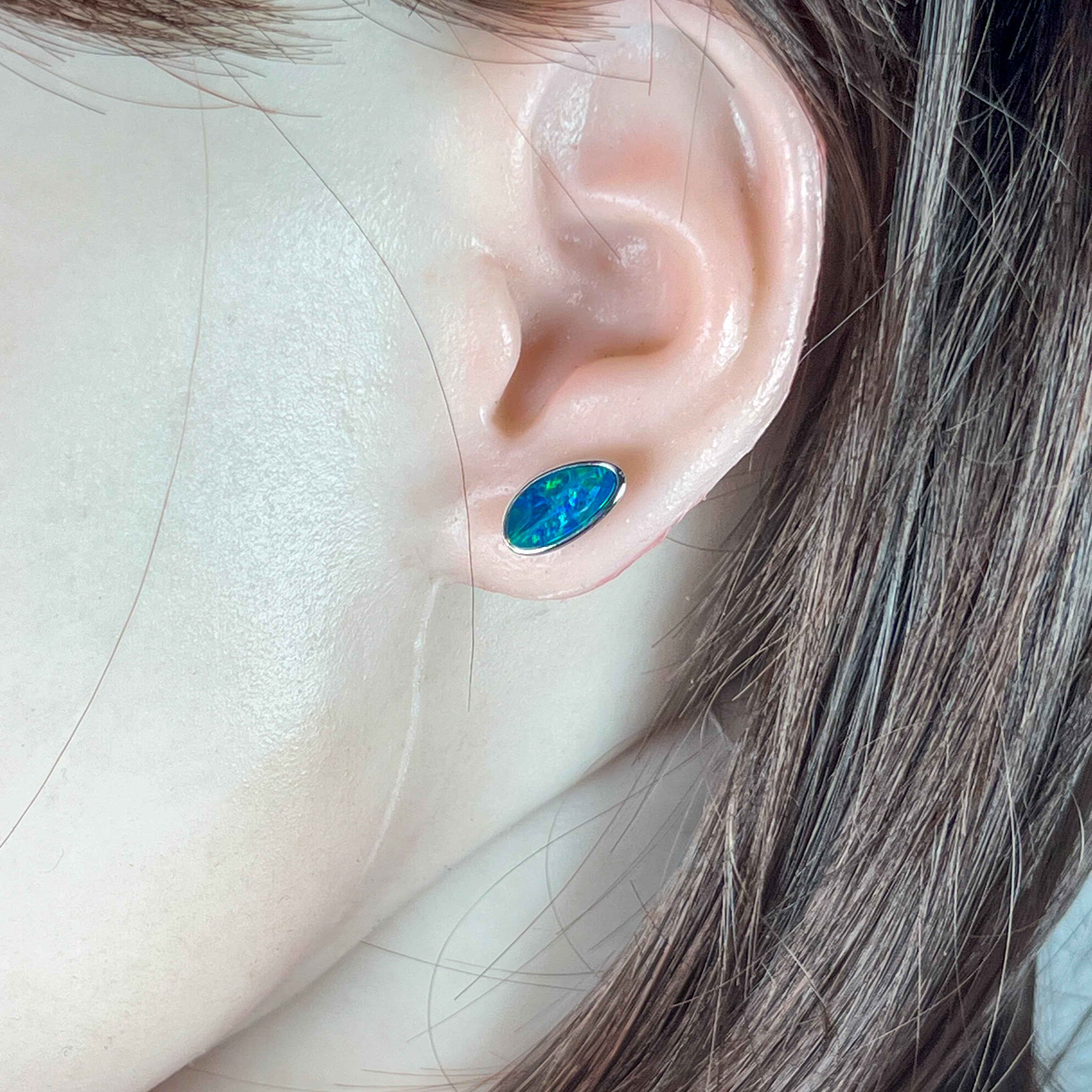 These striking sterling silver studs showcase vibrant opal doublets in mesmerising shades of blue, green, and yellow. Each freeform piece captures the natural play of light that makes opals so captivating, while the sleek line design keeps them modern and wearable. Perfect for adding a pop of colour to any look, these studs offer genuine gemstone beauty without the premium price tag of solid opals. Versatile enough for everyday wear yet distinctive enough to turn heads.