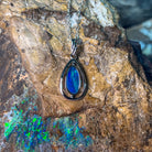Sterling Silver Opal teardrop shape cut out design pendant doublet