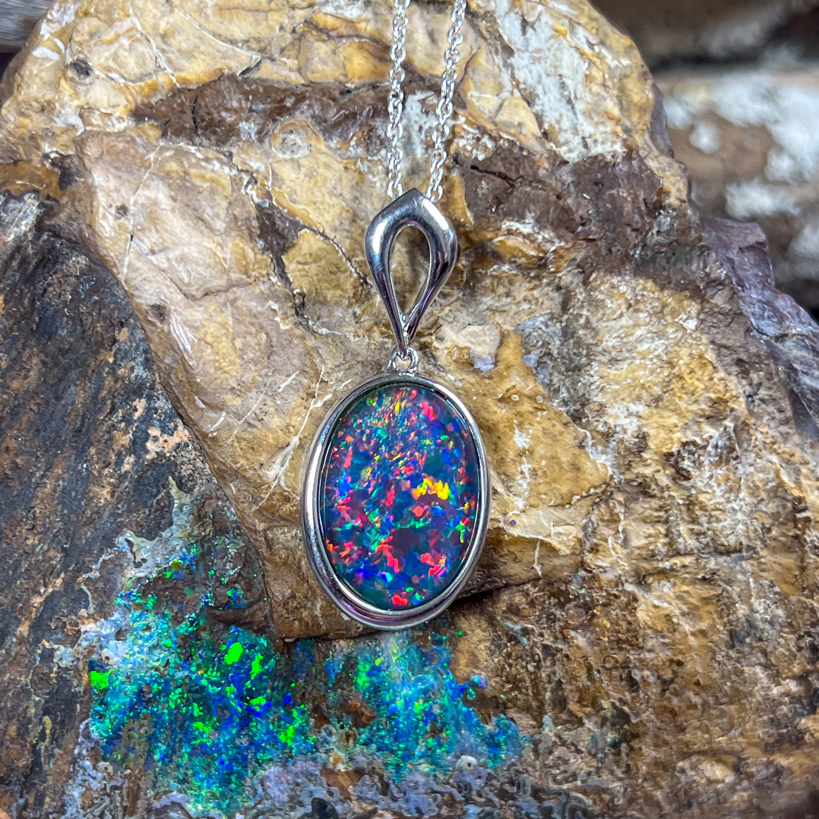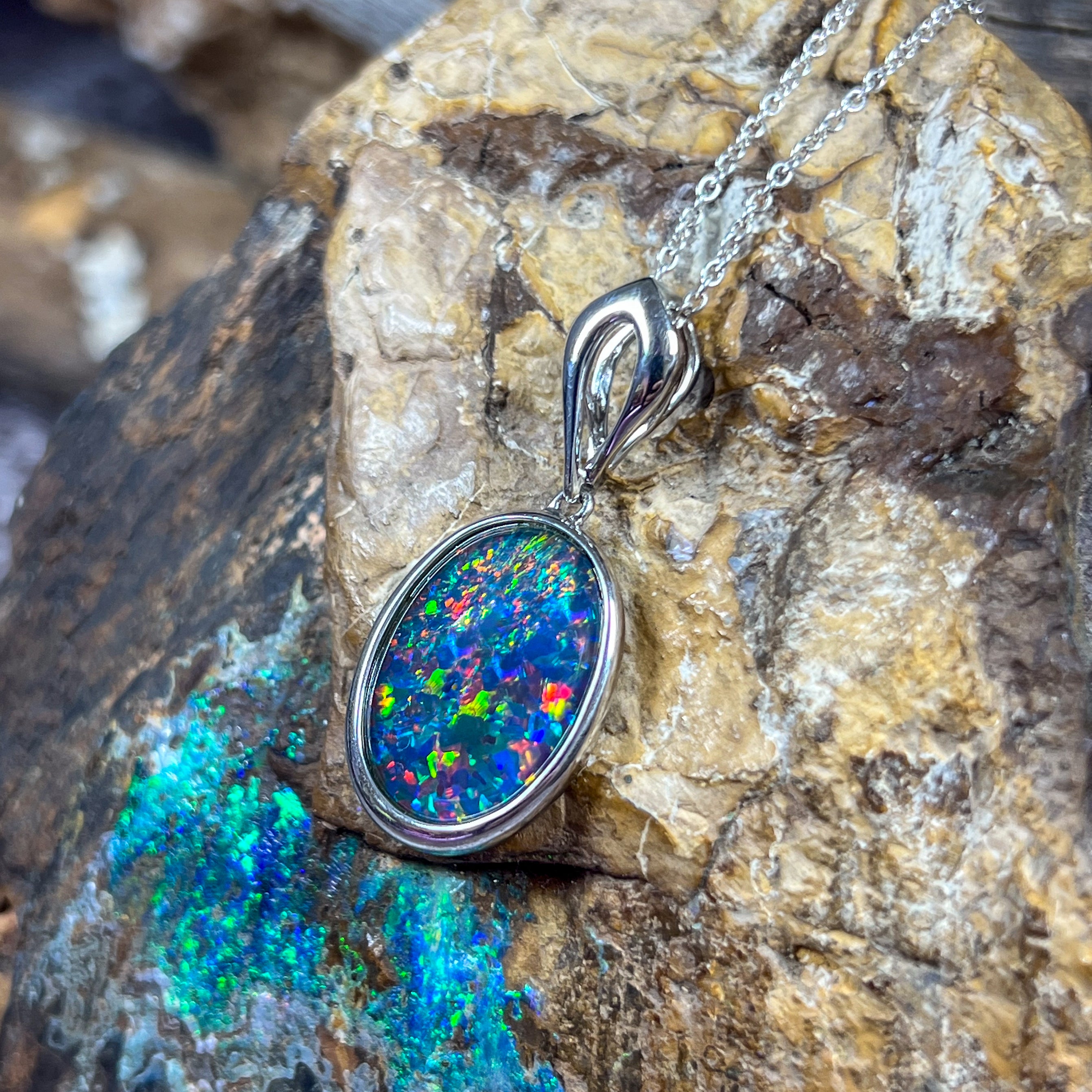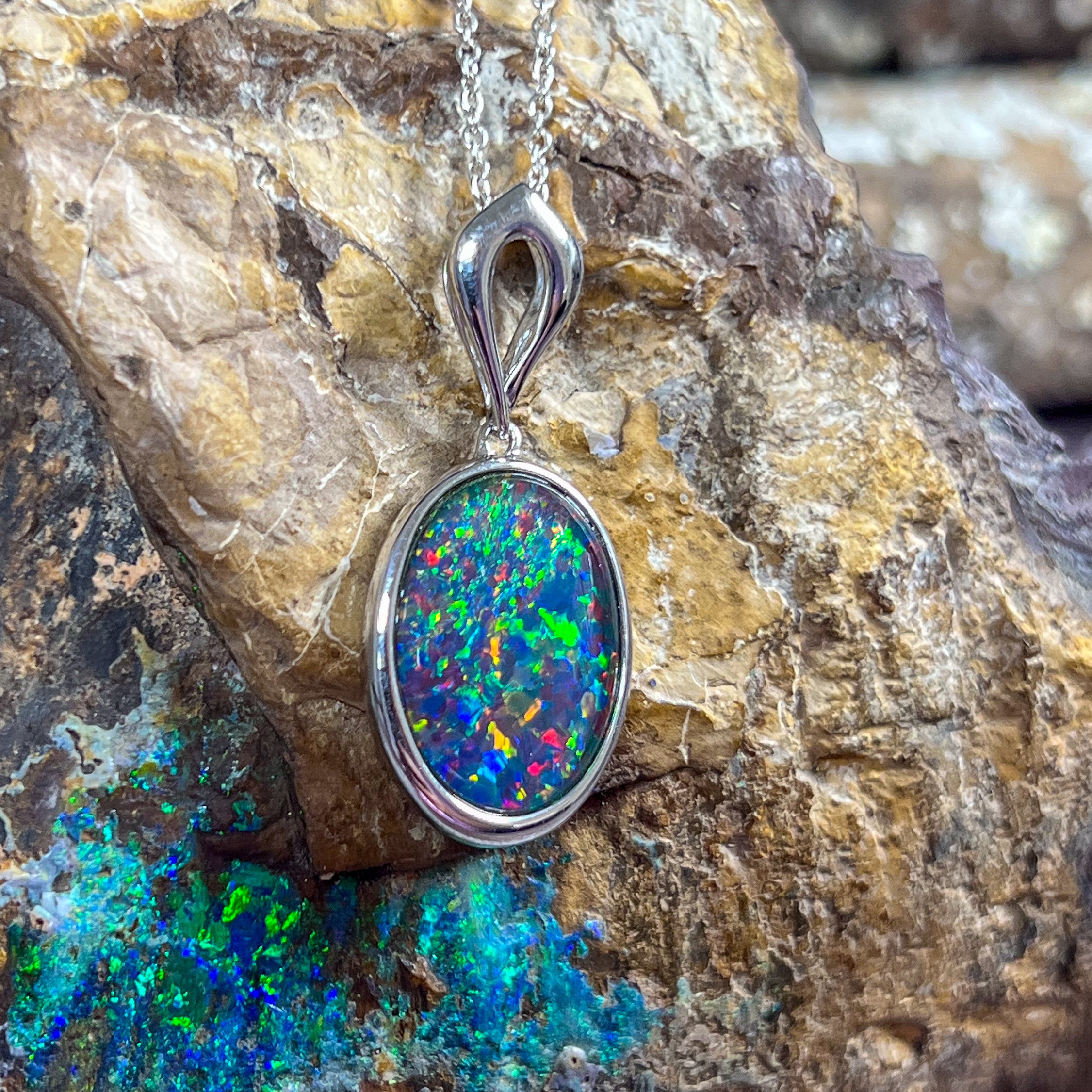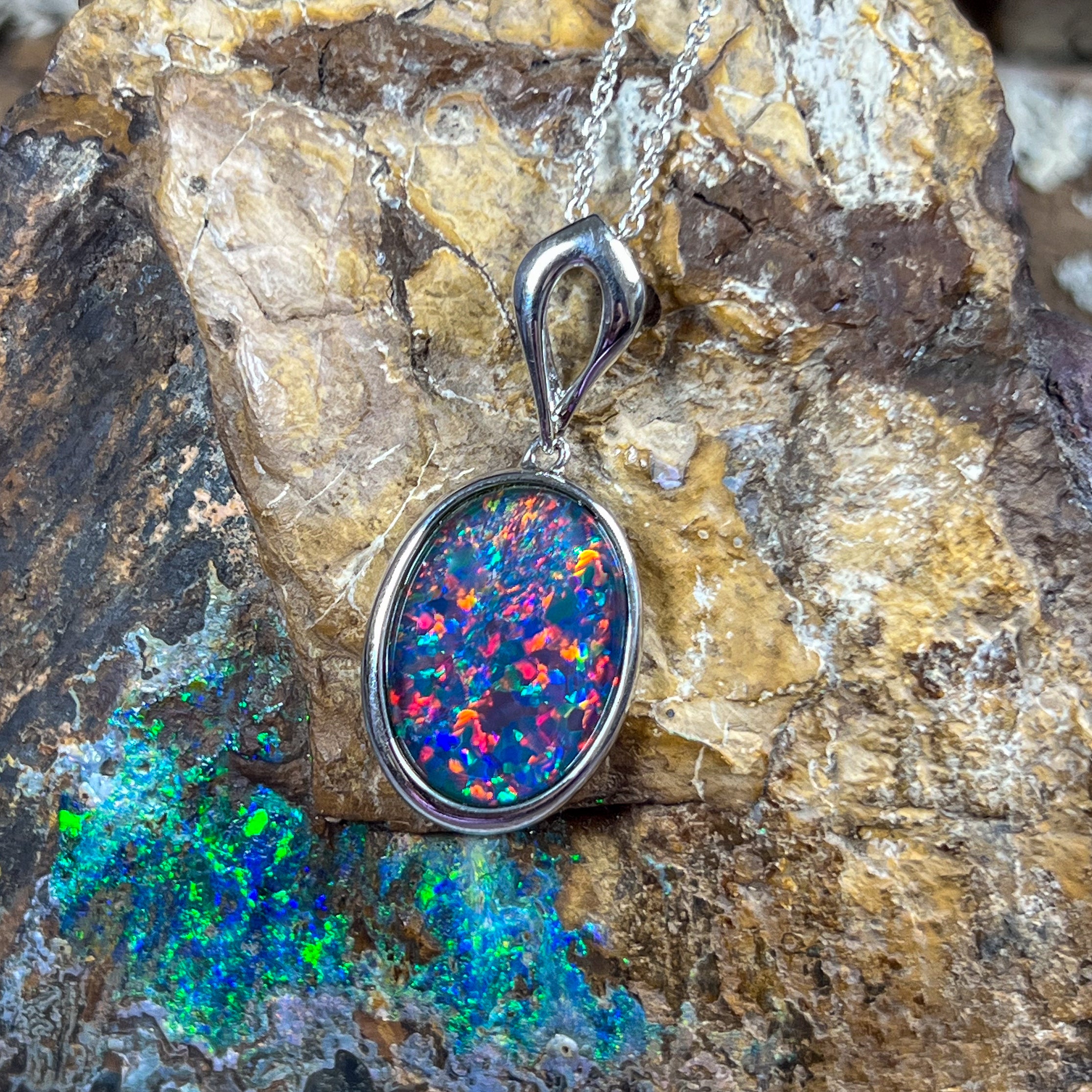 Sterling Silver Opal Triplet 18x13mm bezel set pendant