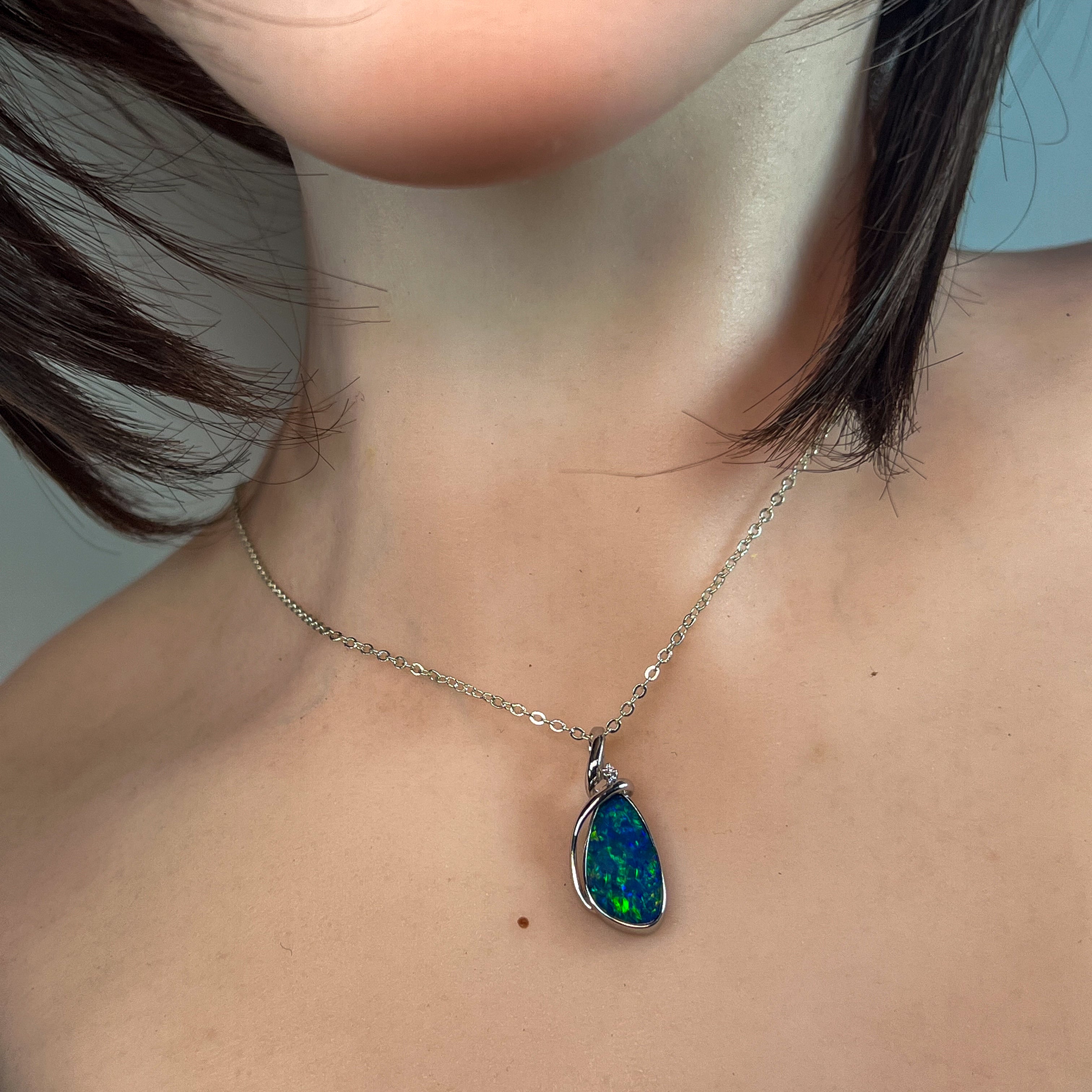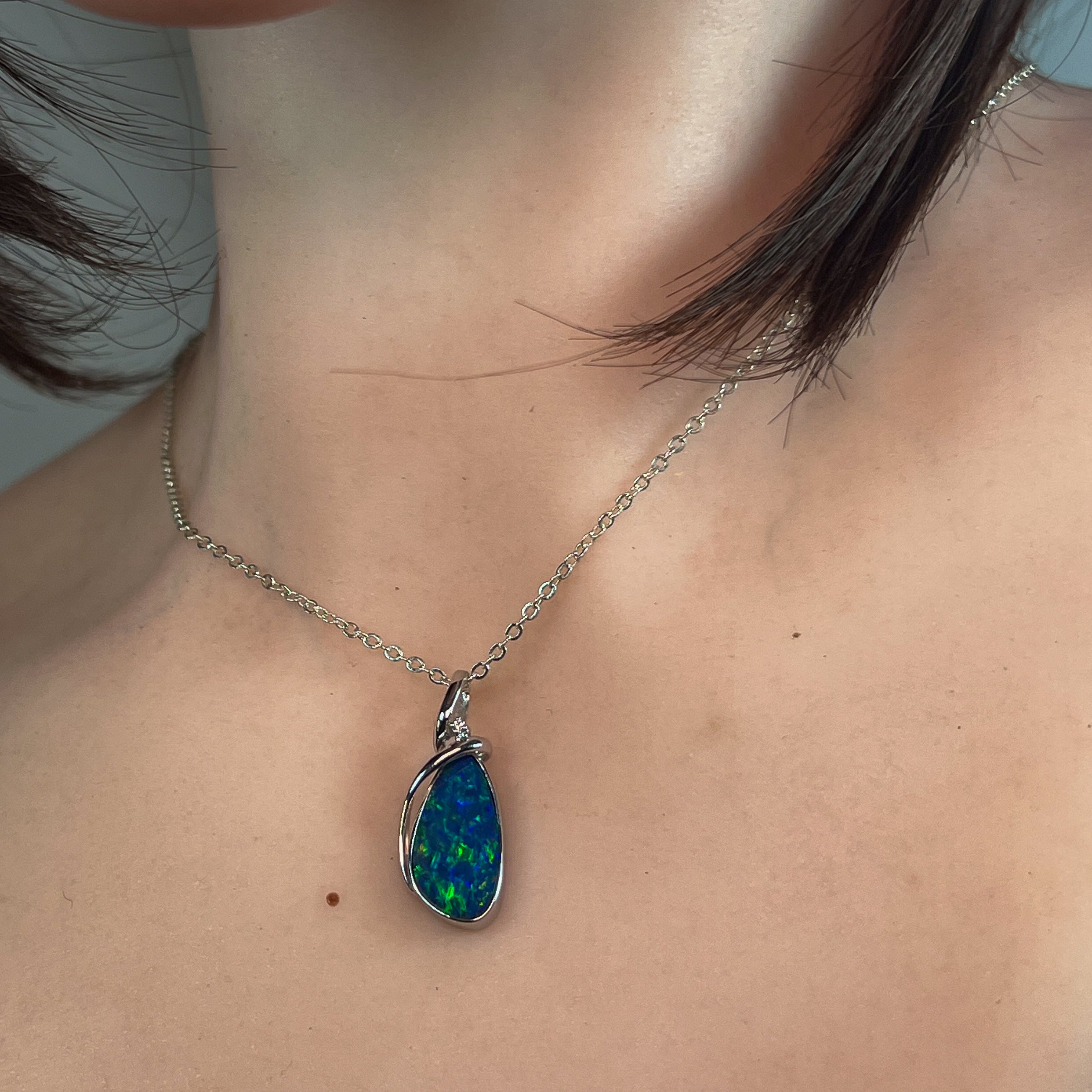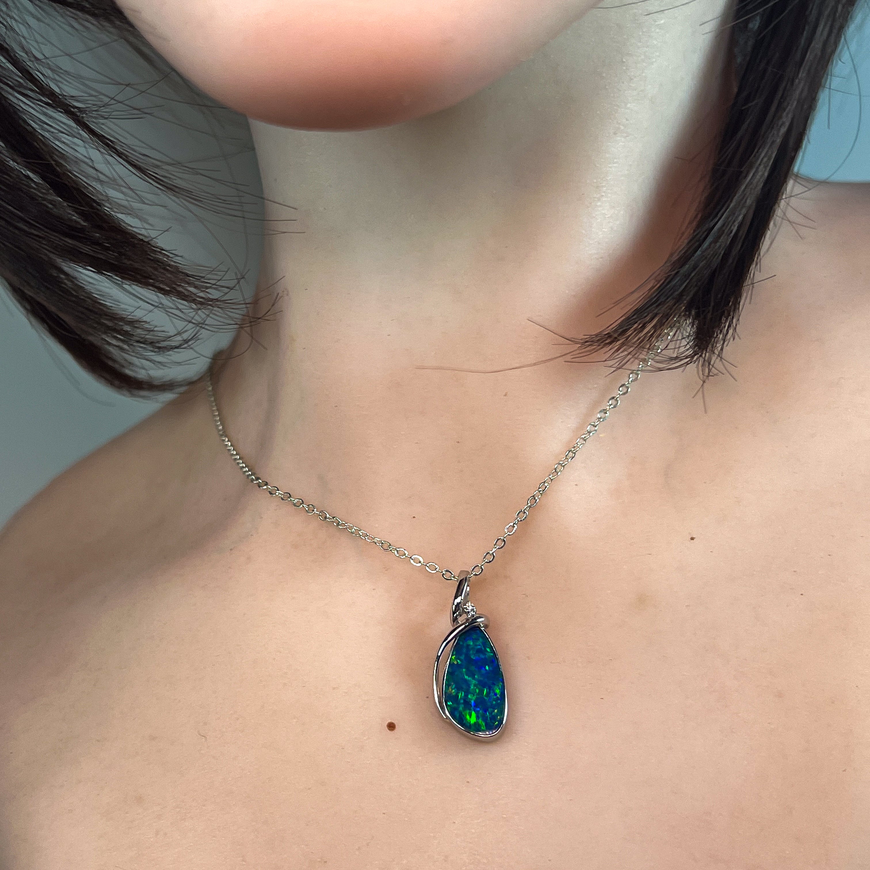 Elevate your style with this sterling silver pendant featuring a large pear-shaped opal doublet. Its modern swirl design adds a sophisticated twist, making it a standout accessory for any occasion. Perfect for those who appreciate contemporary elegance combined with vibrant opal beauty.