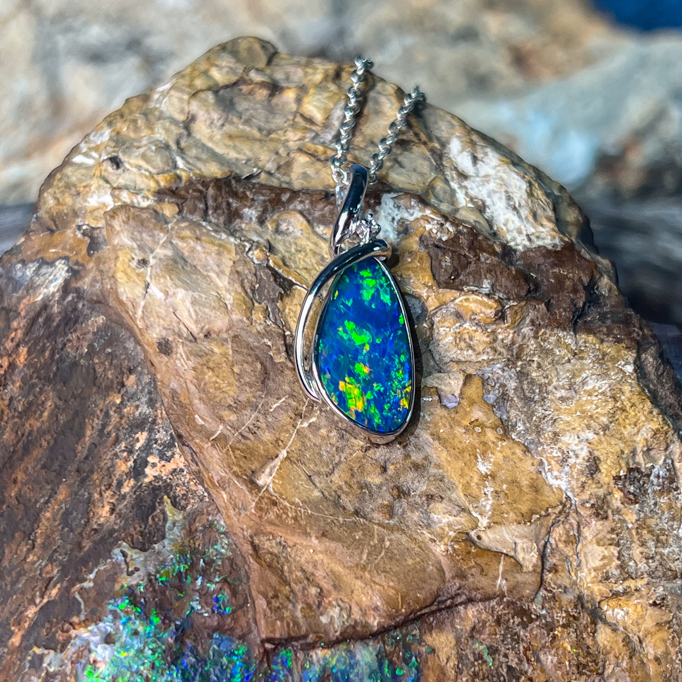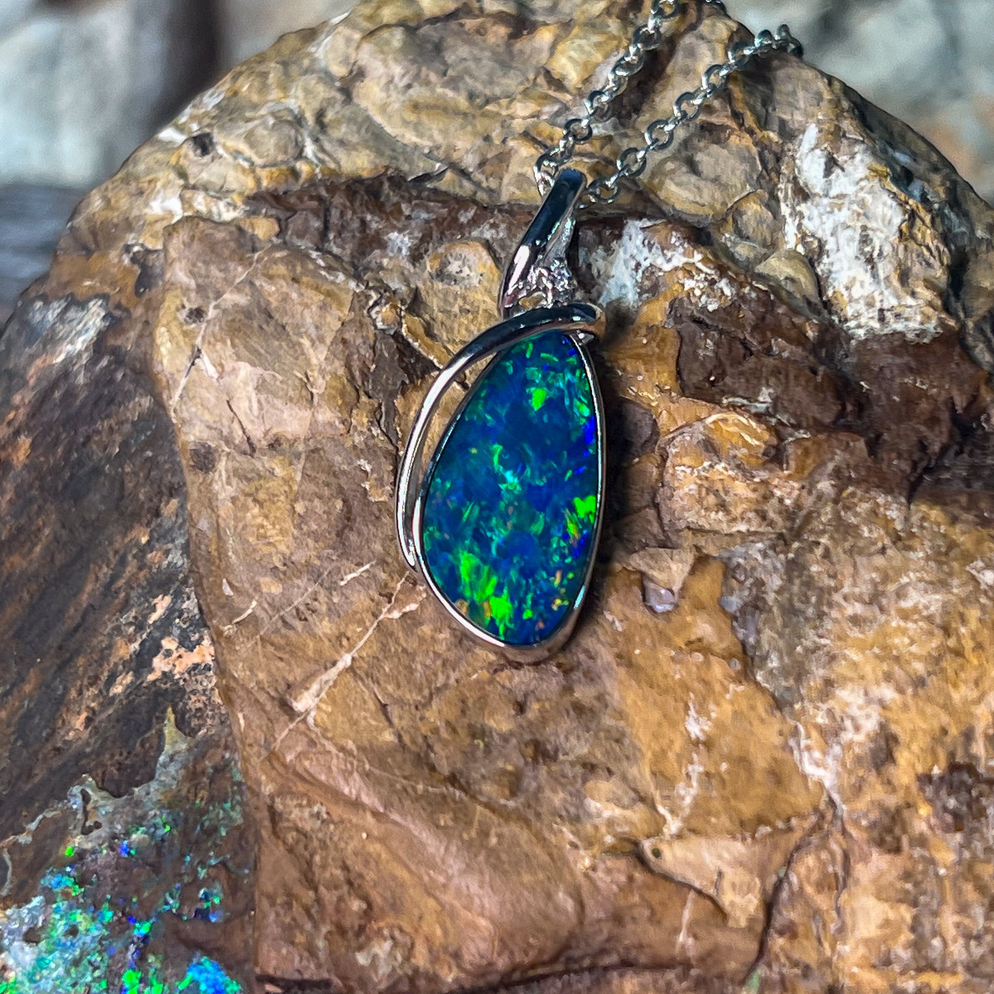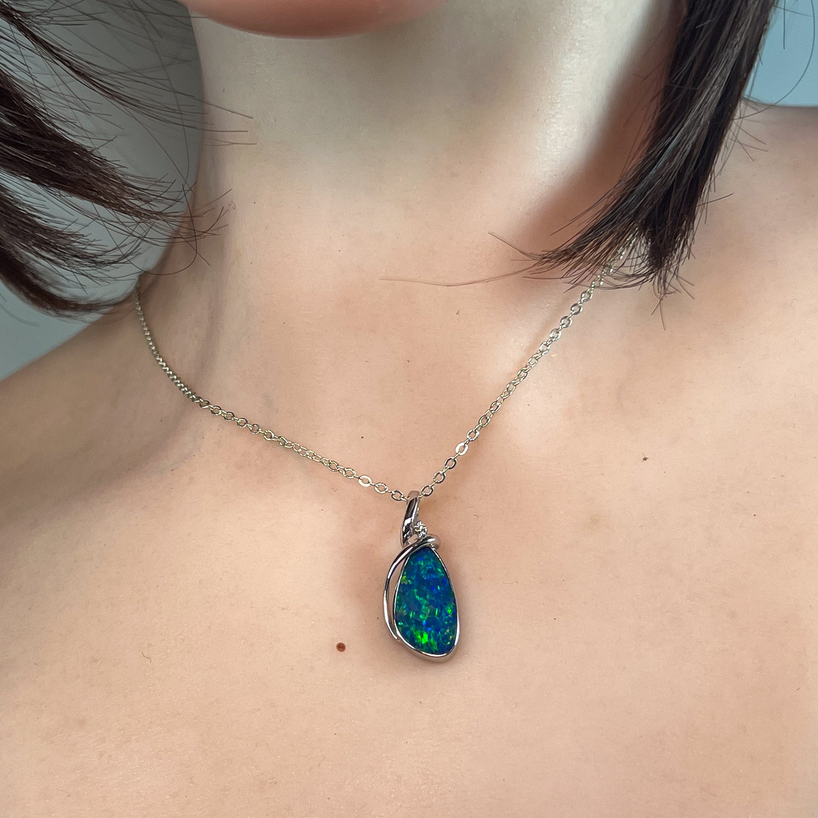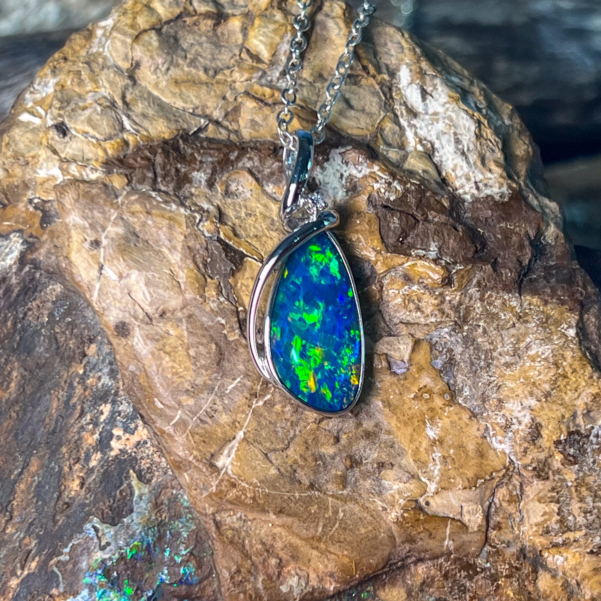 Elevate your style with this sterling silver pendant featuring a large pear-shaped opal doublet. Its modern swirl design adds a sophisticated twist, making it a standout accessory for any occasion. Perfect for those who appreciate contemporary elegance combined with vibrant opal beauty.